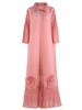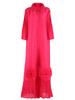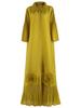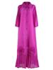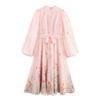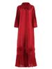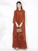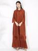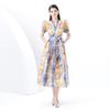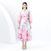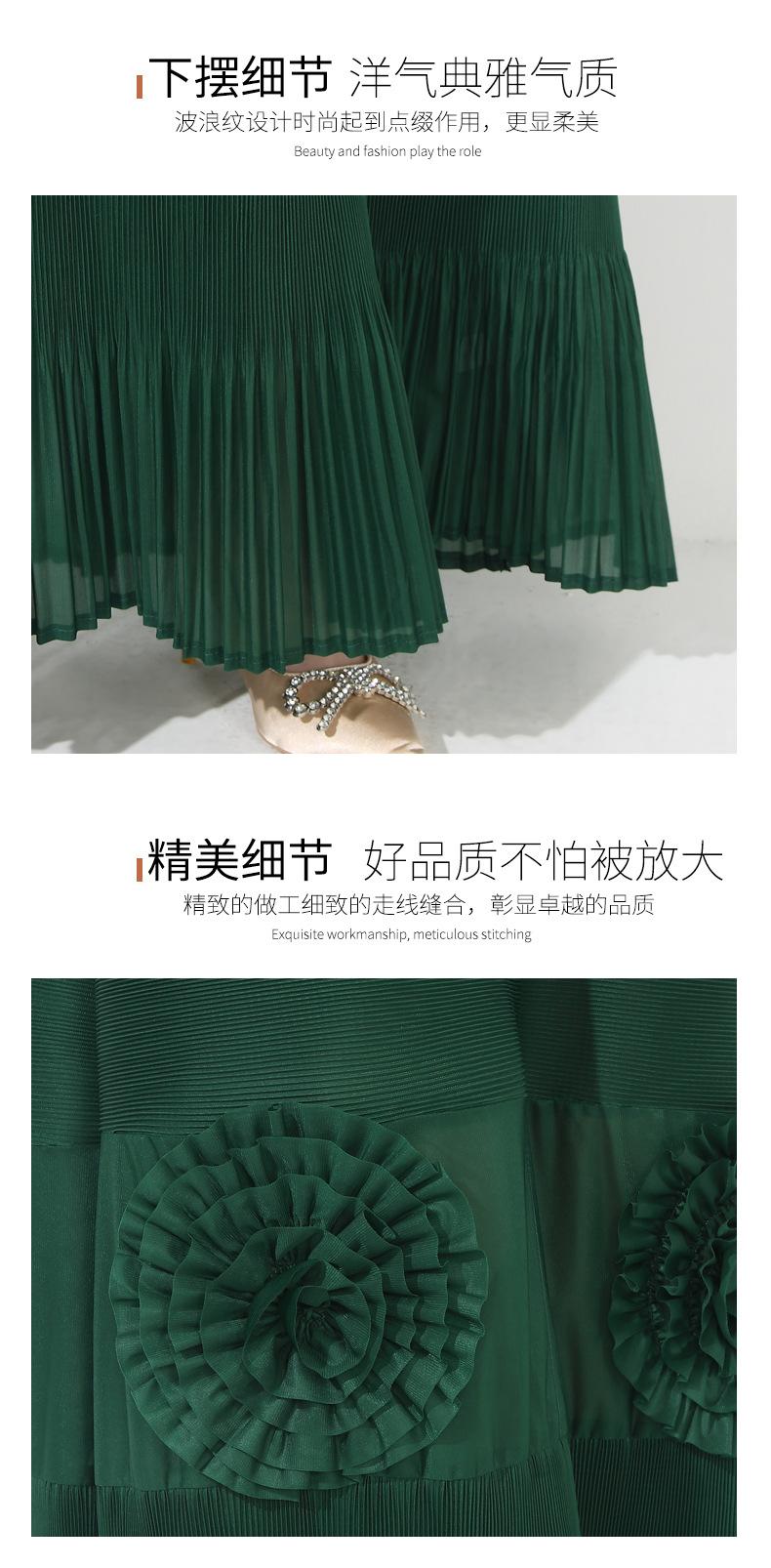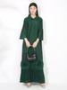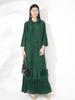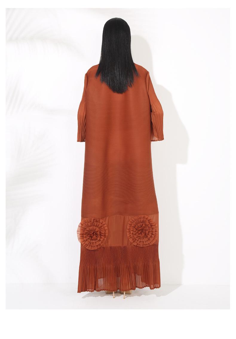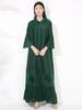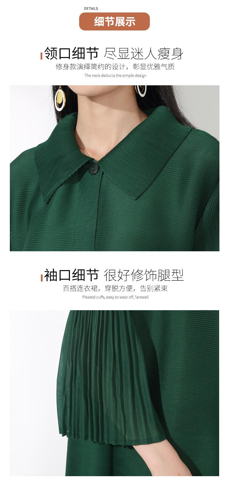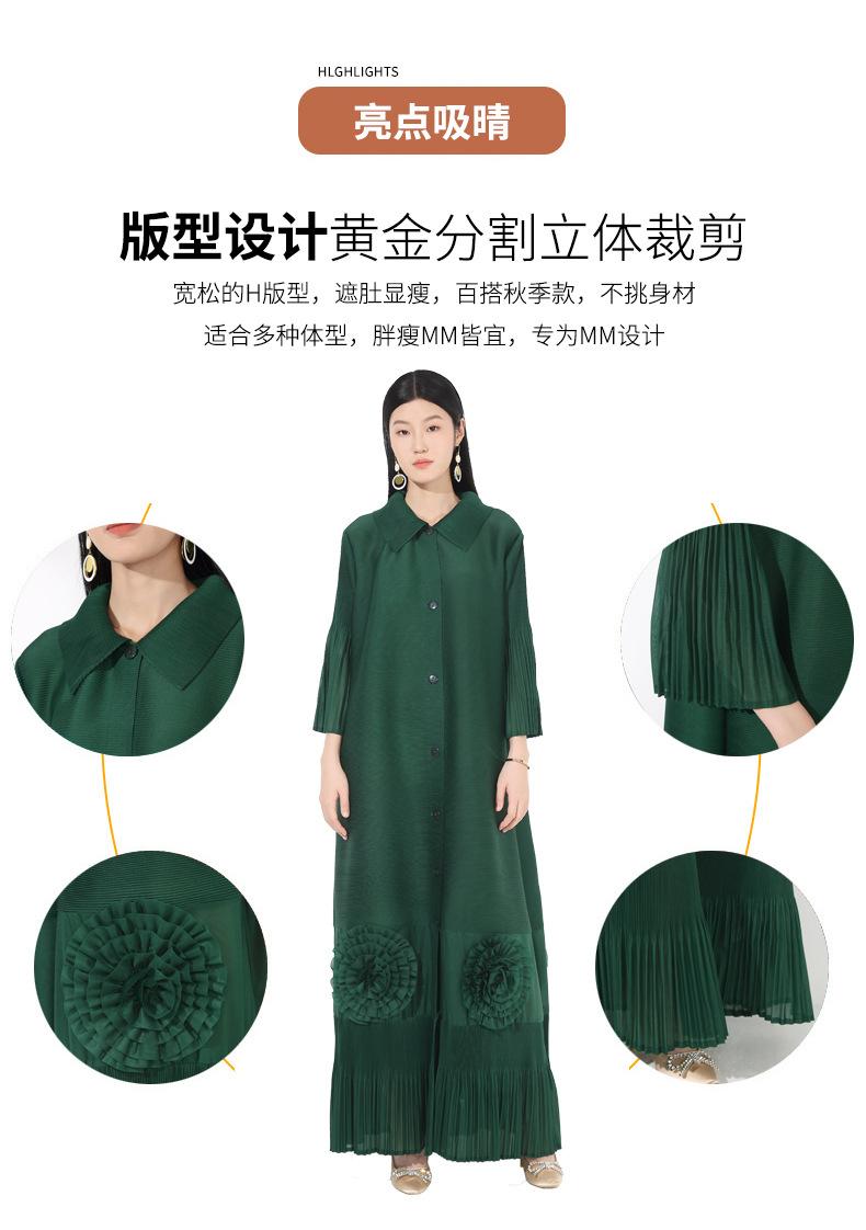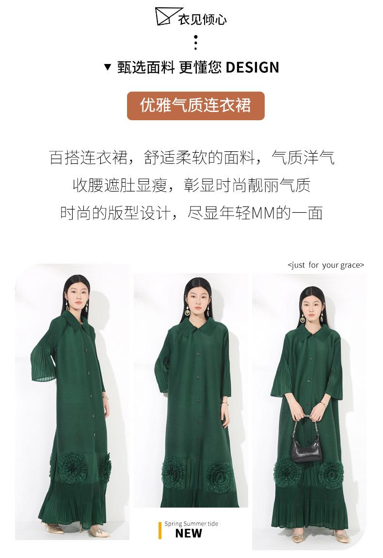 Vestido Nuevo Elegante Suelto Plisado para Mujer de Moda de Alta Gama Solapa Manga Trompeta Flor Largo Abotonado