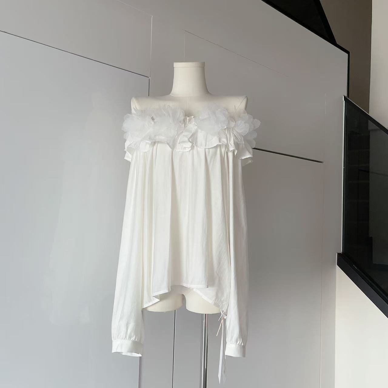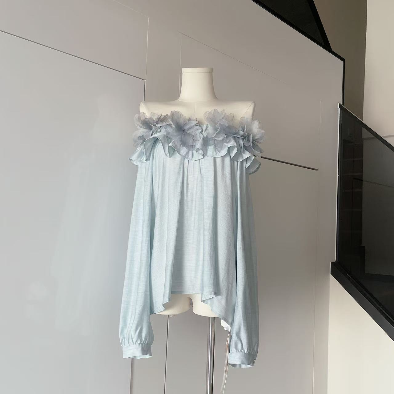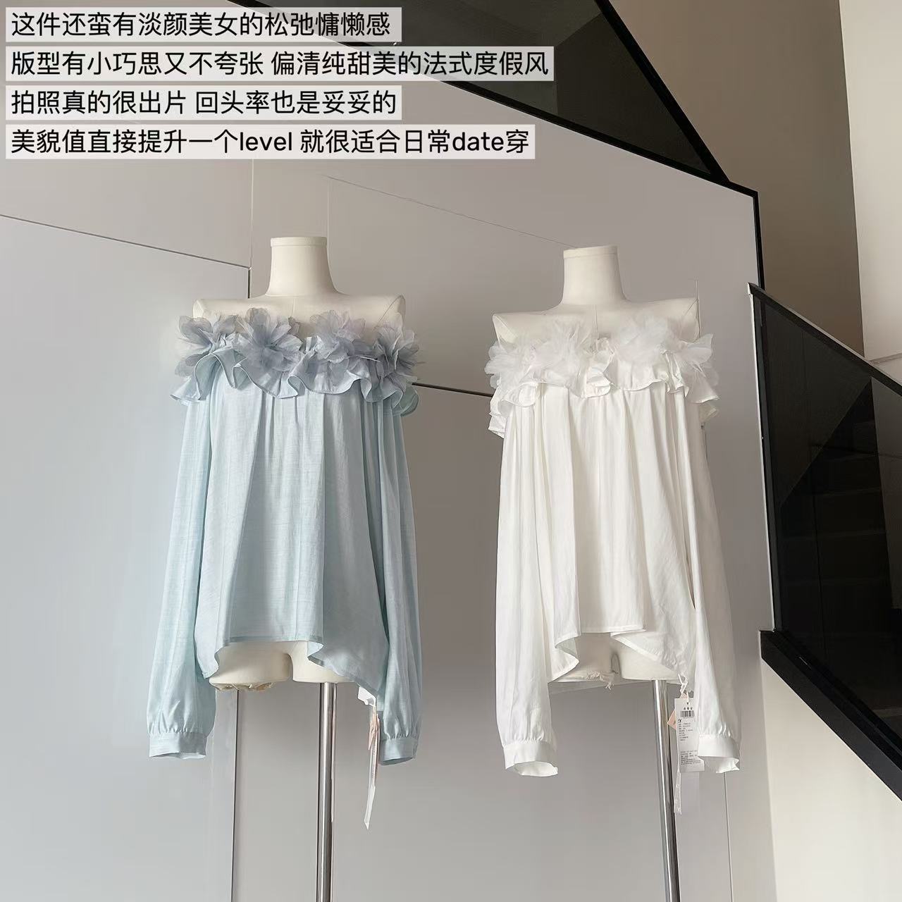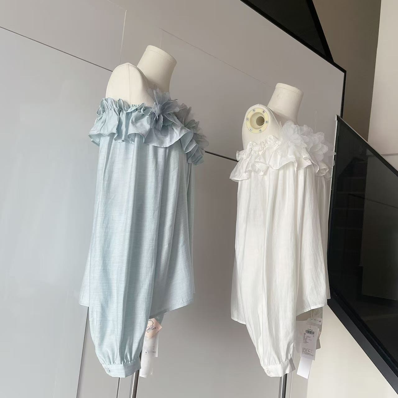 Compra Primavera y Verano Nuevo Camisa de Flores Pura para Hombro para Mujer Holgada Transpirable Lana Hombro Top al por mayor en Joom.pro