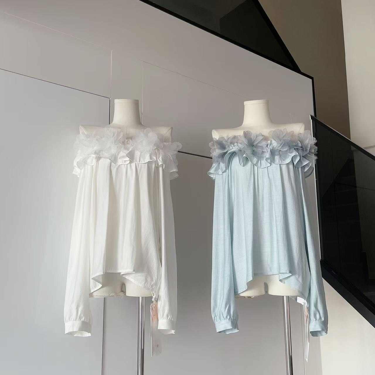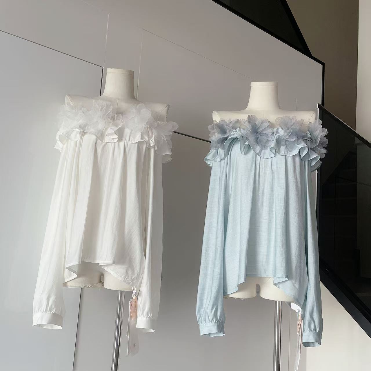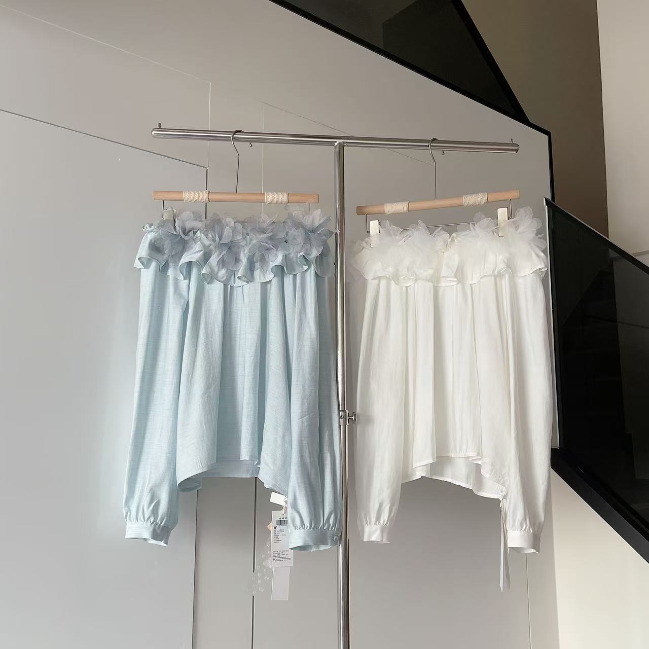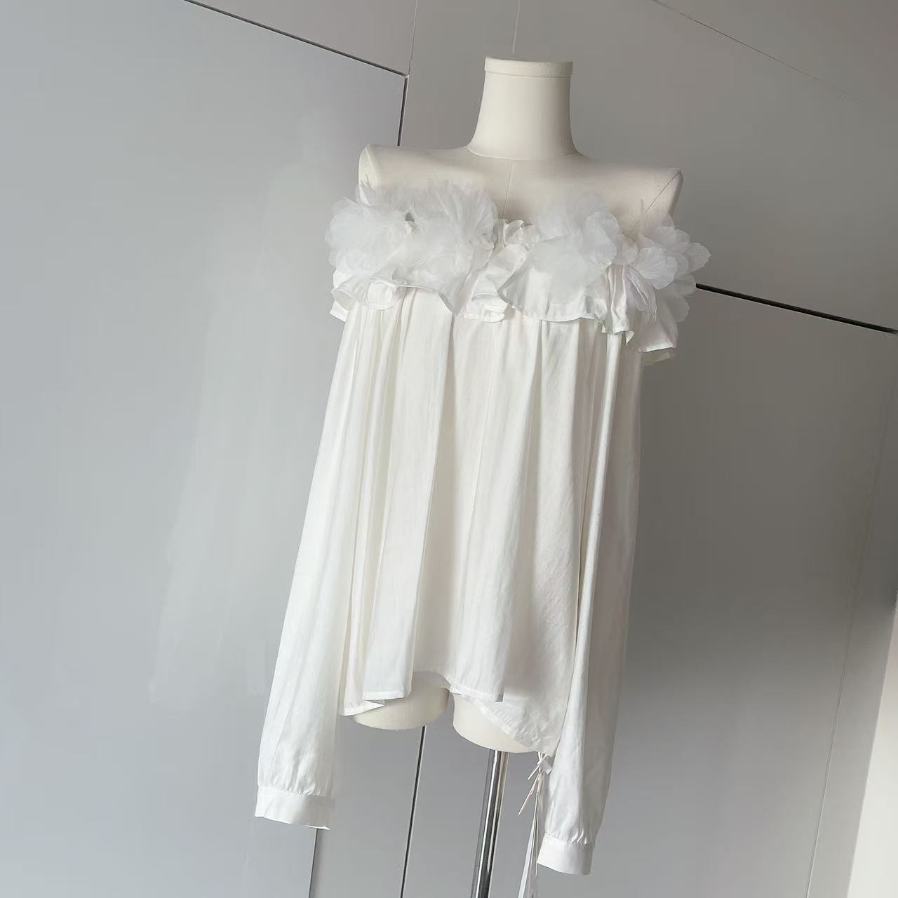 Compra Primavera y Verano Nuevo Camisa de Flores Pura para Hombro para Mujer Holgada Transpirable Lana Hombro Top al por mayor en Joom.pro
