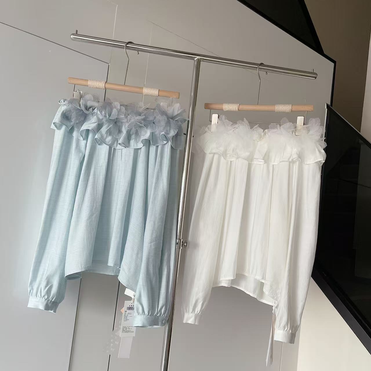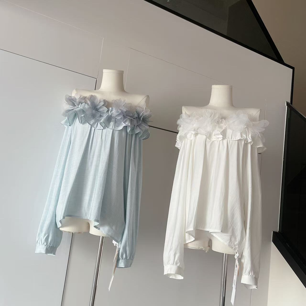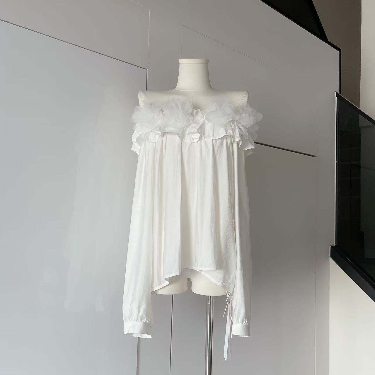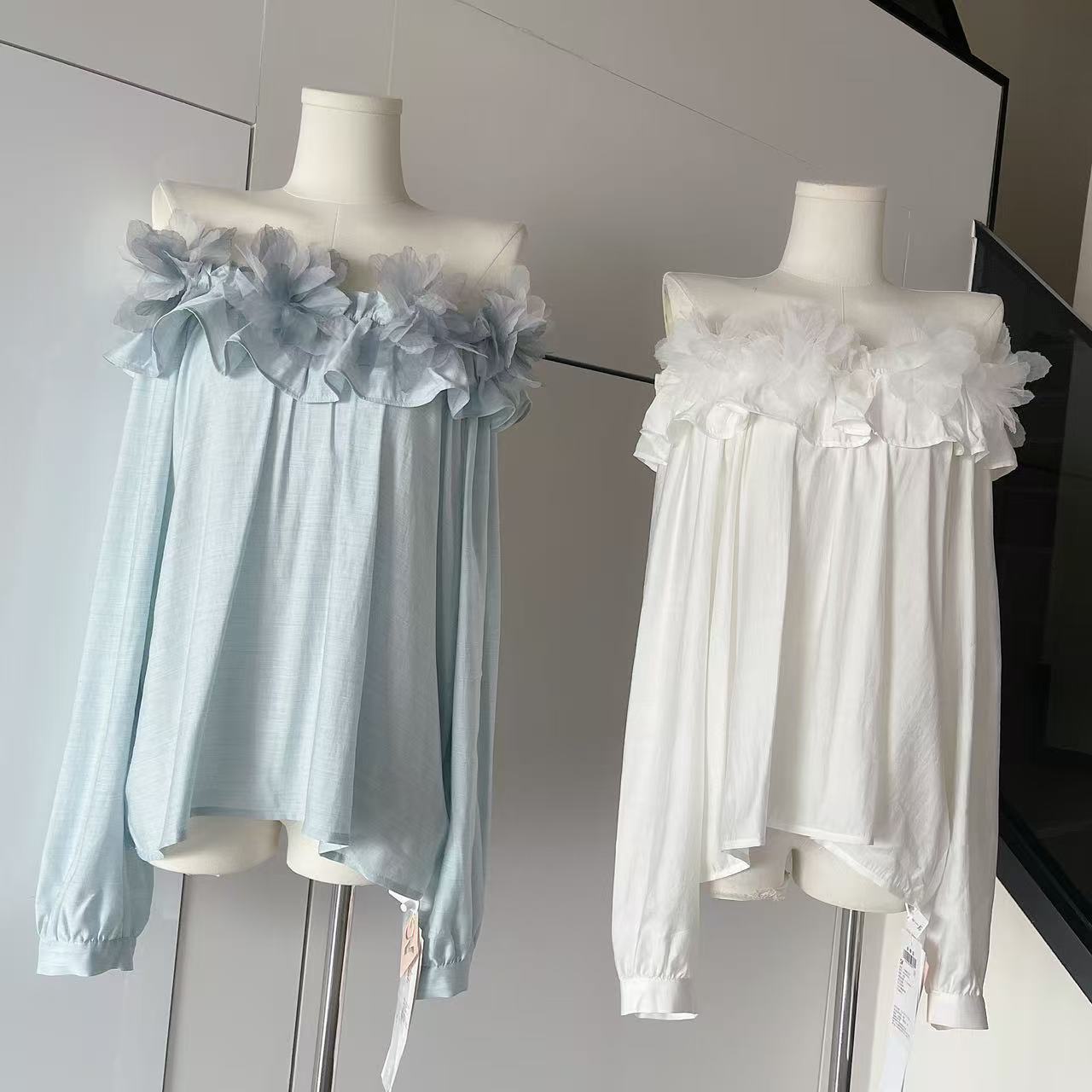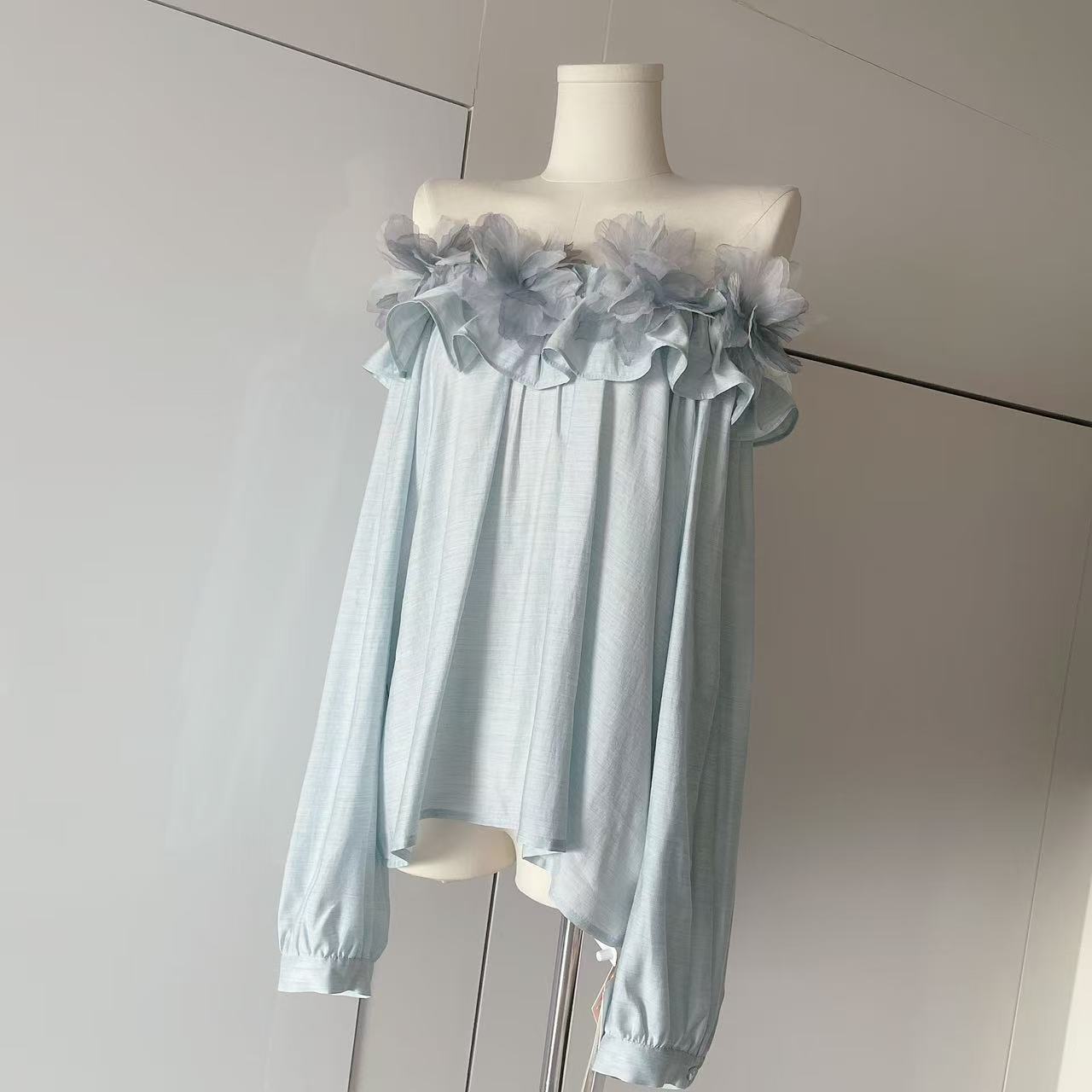 Compra Primavera y Verano Nuevo Camisa de Flores Pura para Hombro para Mujer Holgada Transpirable Lana Hombro Top al por mayor en Joom.pro