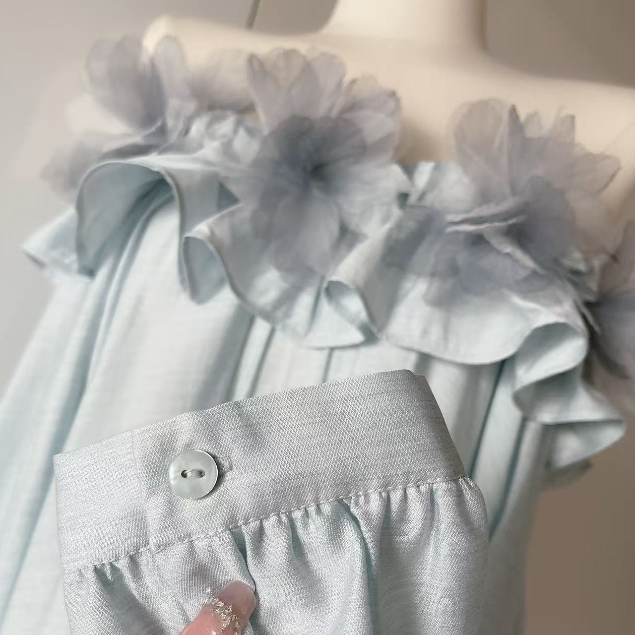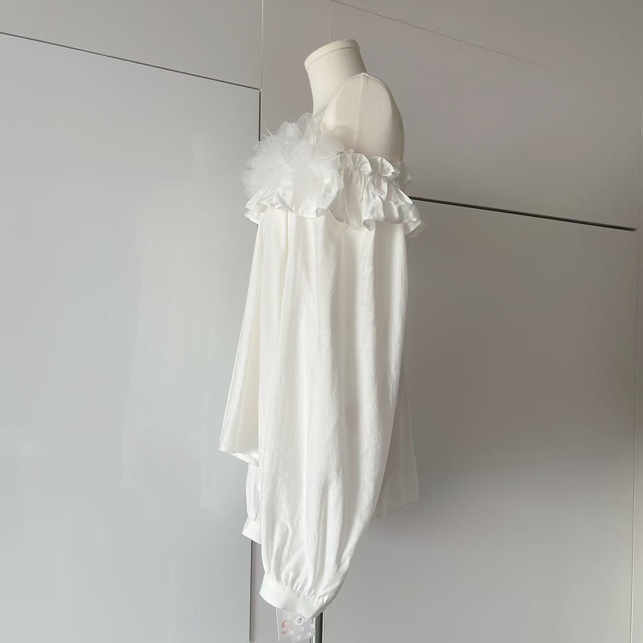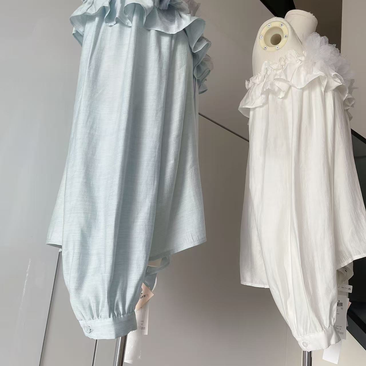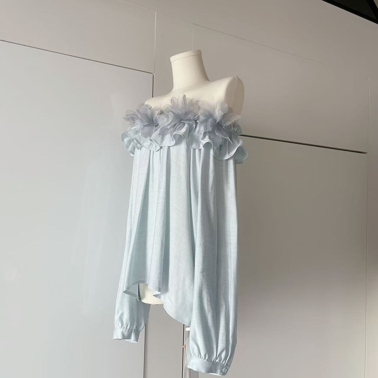Compra Primavera y Verano Nuevo Camisa de Flores Pura para Hombro para Mujer Holgada Transpirable Lana Hombro Top al por mayor en Joom.pro