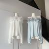 Primavera y Verano Nuevo Camisa de Flores Pura para Hombro para Mujer Holgada Transpirable Lana Hombro Top