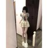 Conjunto de Falda Corta Dulce Tejida Nicho Dopamina Top Corto Adelgazante Cintura Alta Línea A Encaje Pastel Falda Corta