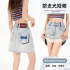 Minifalda de mezclilla plisada para mujer Verano 2025 Nueva Falda pantalón línea A adelgazante Antiexposición Cubrecaderas Media falda
