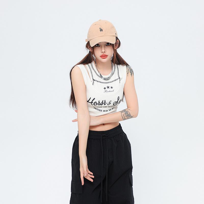 2025 Nuevo Camisola de Mujer Nuevo Verano Interior Sin Mangas Único Chic Amarillo Americano Dulce y Picante Top