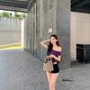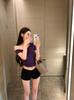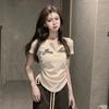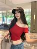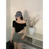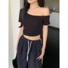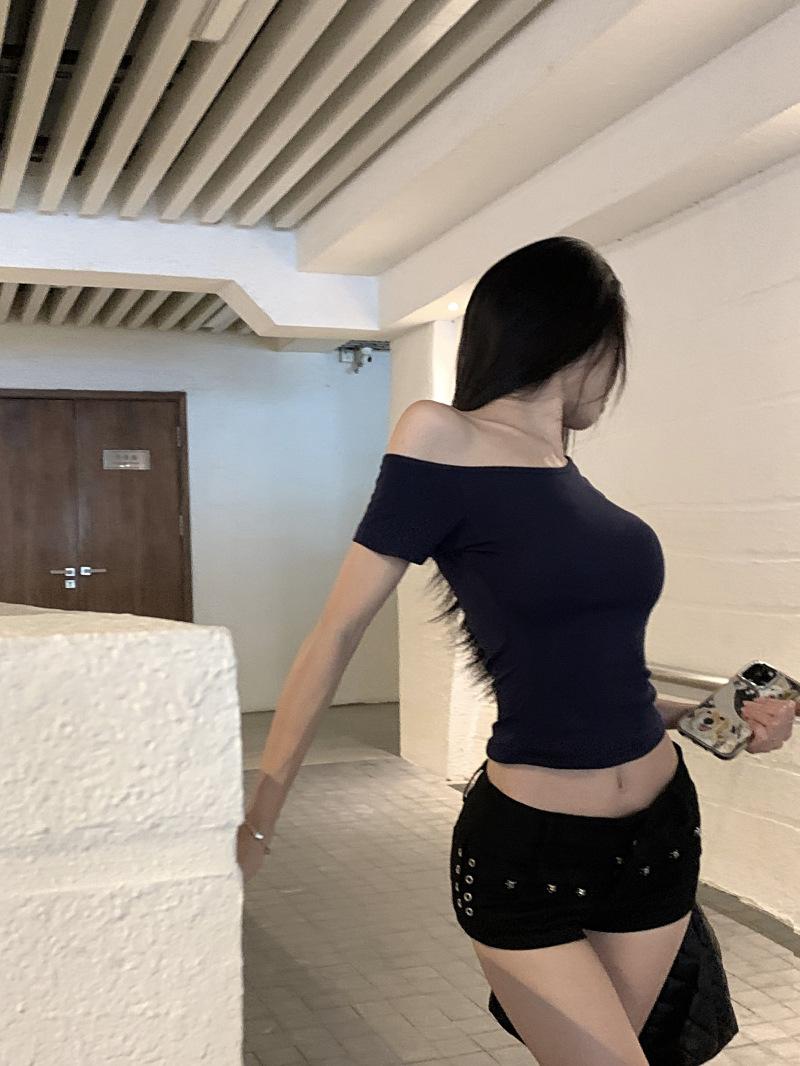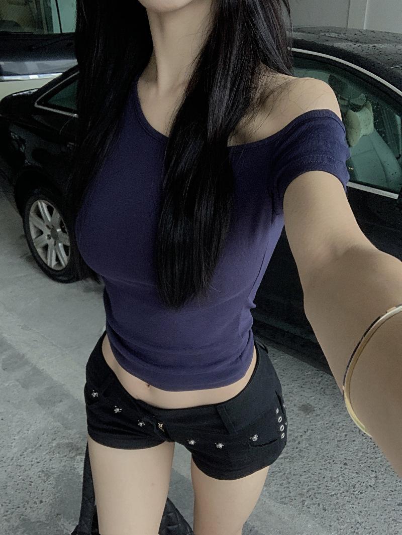 Kumikumi Pure Desire - Camiseta de manga corta con hombros descubiertos y diseño oblicuo para mujer, verano 2024, corta, con el ombligo al descubierto, ajustada, elástica y versátil.