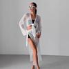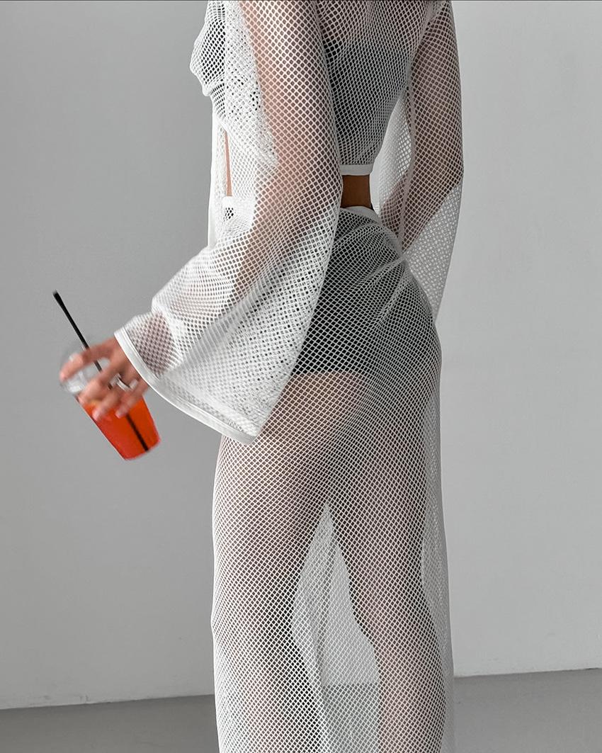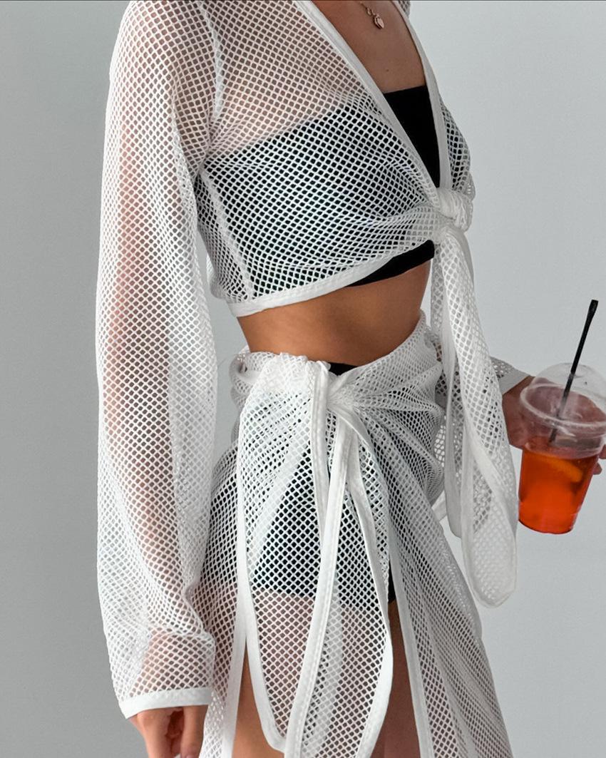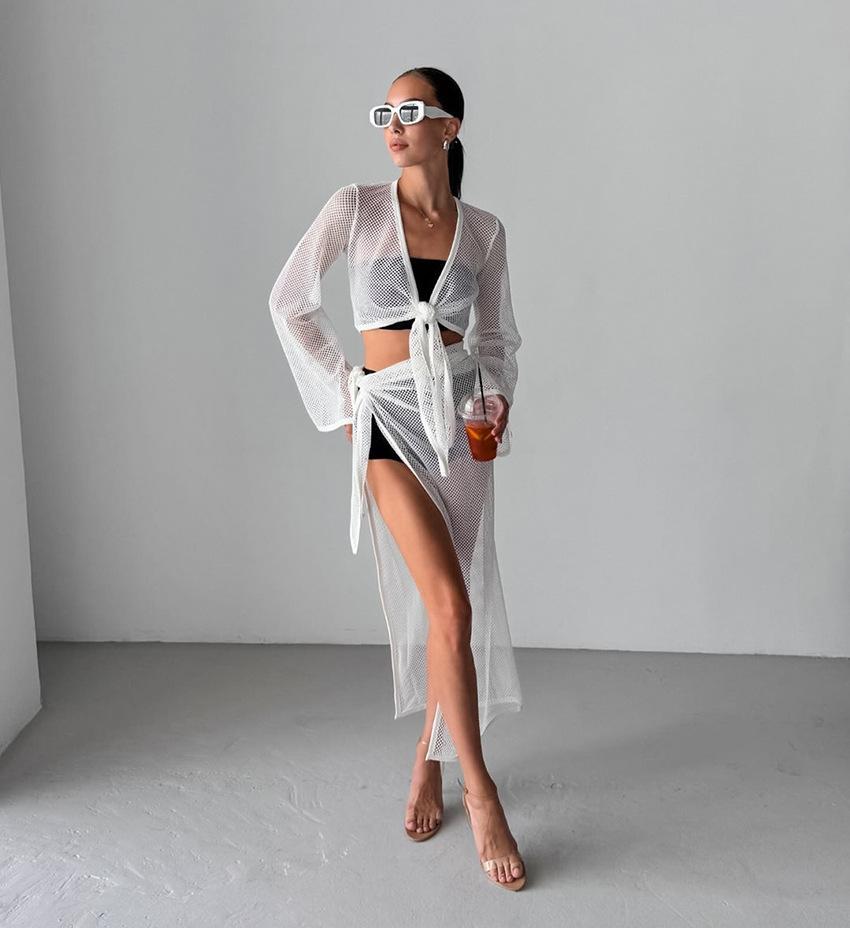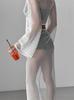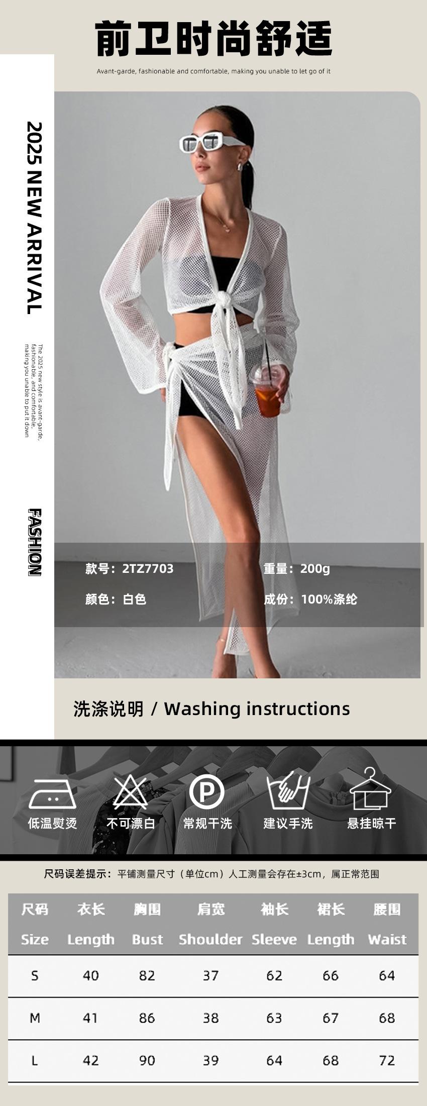 Traje Sexy Europeo y Americano de Encaje Blanco Transparente 2025 Verano Estilo Urbano Traje de Top y Falda Ropa de Mujer Transfronteriza
