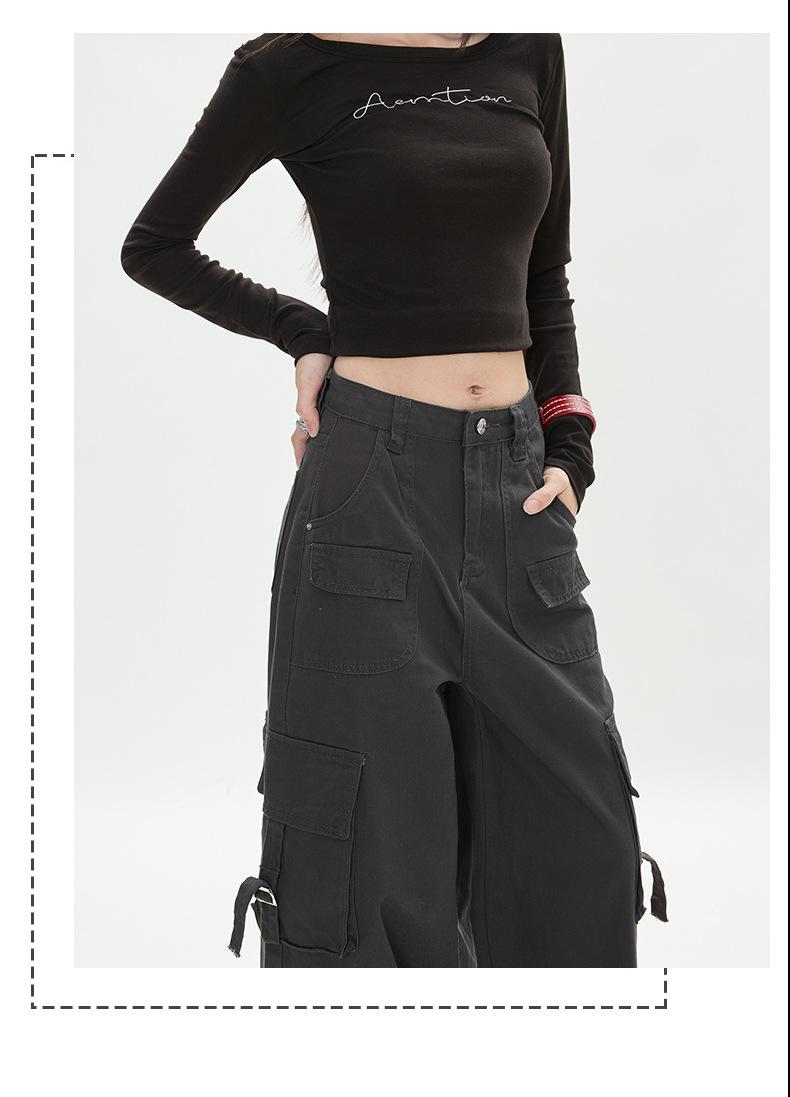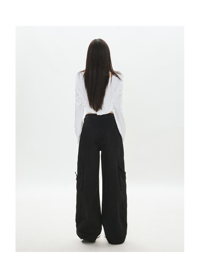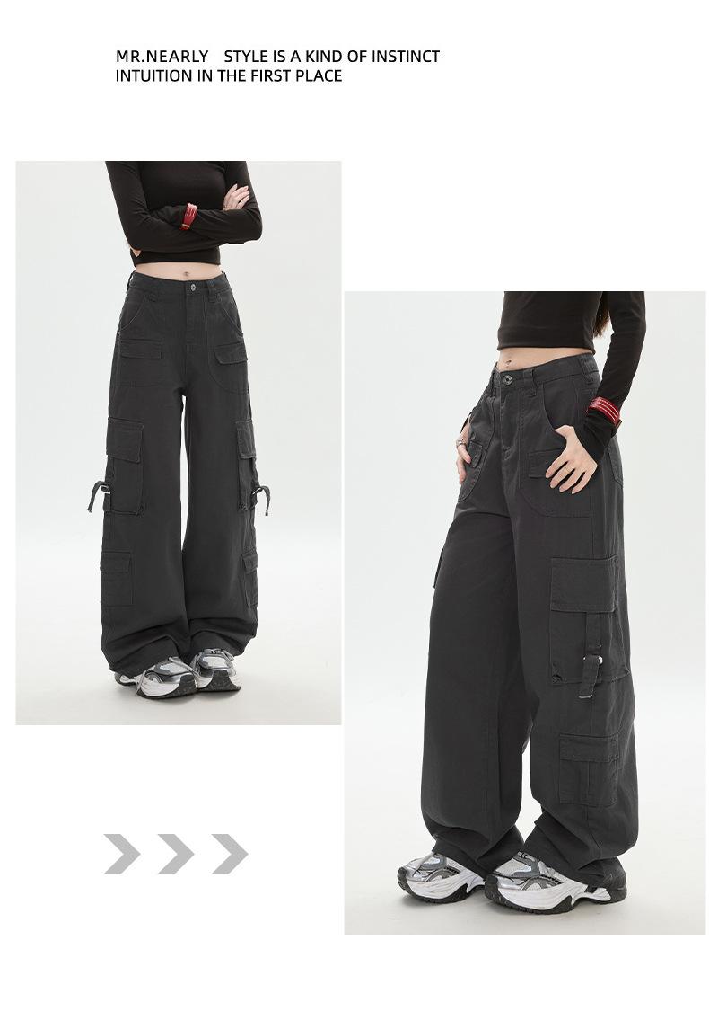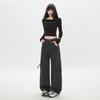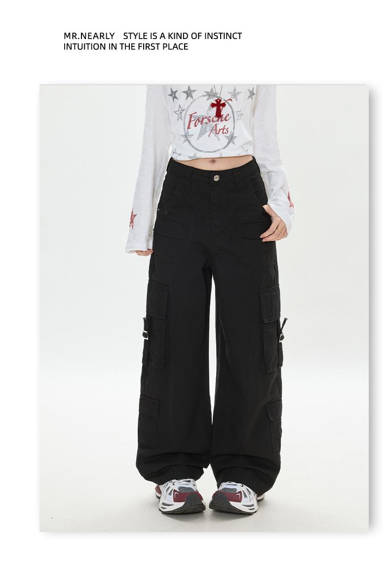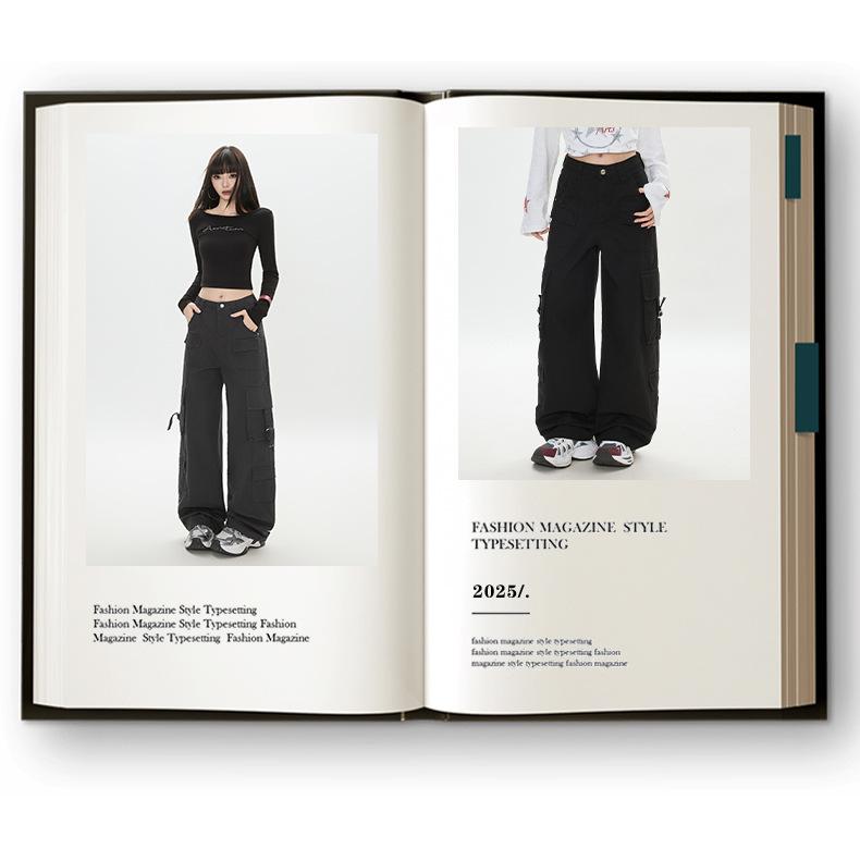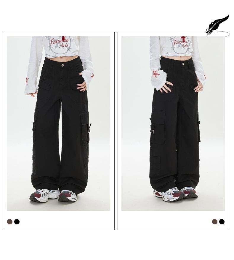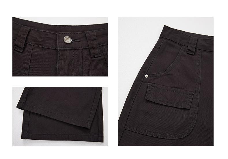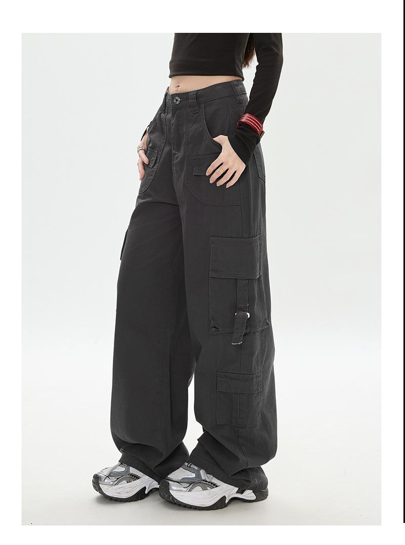 Otoño 2025 Diseño de Bolsillo Retro Americano Pantalones de Ropa de Trabajo High Street para Mujer Pantalones Casuales de Pierna Ancha Pantalones Largos