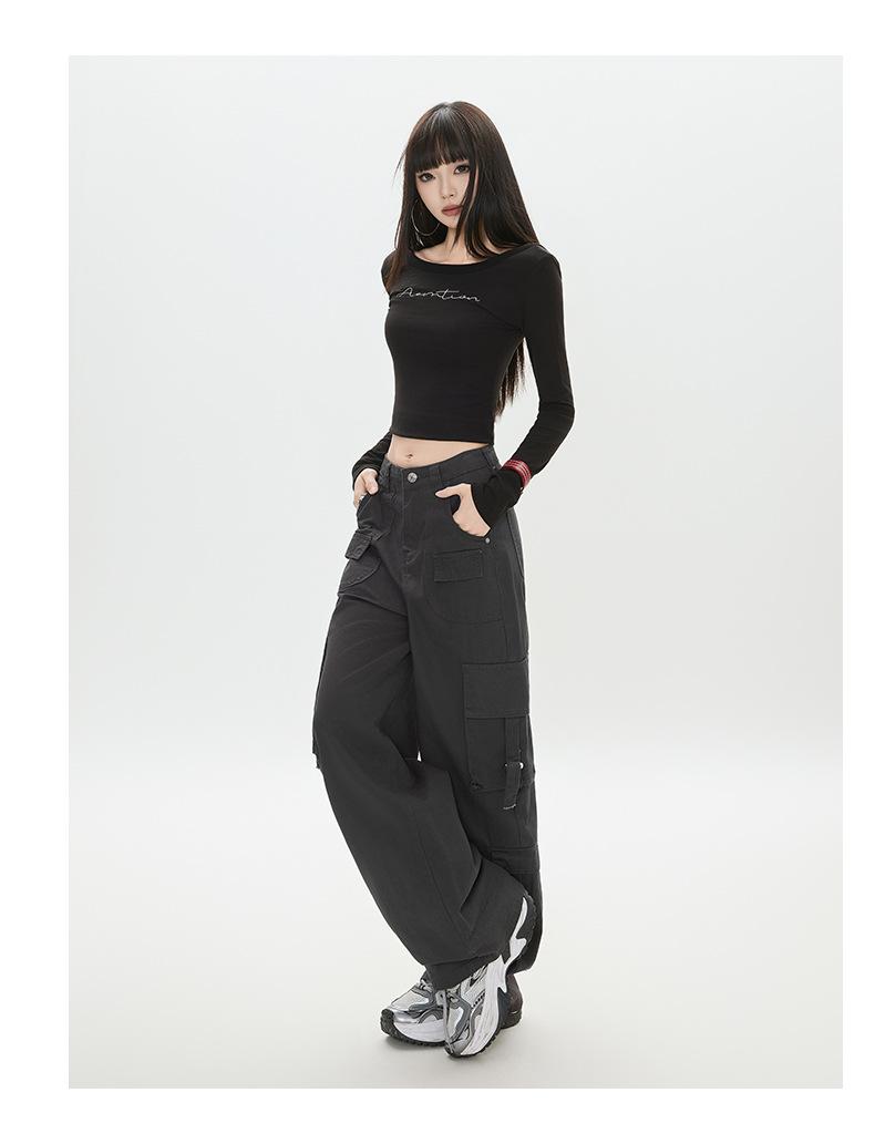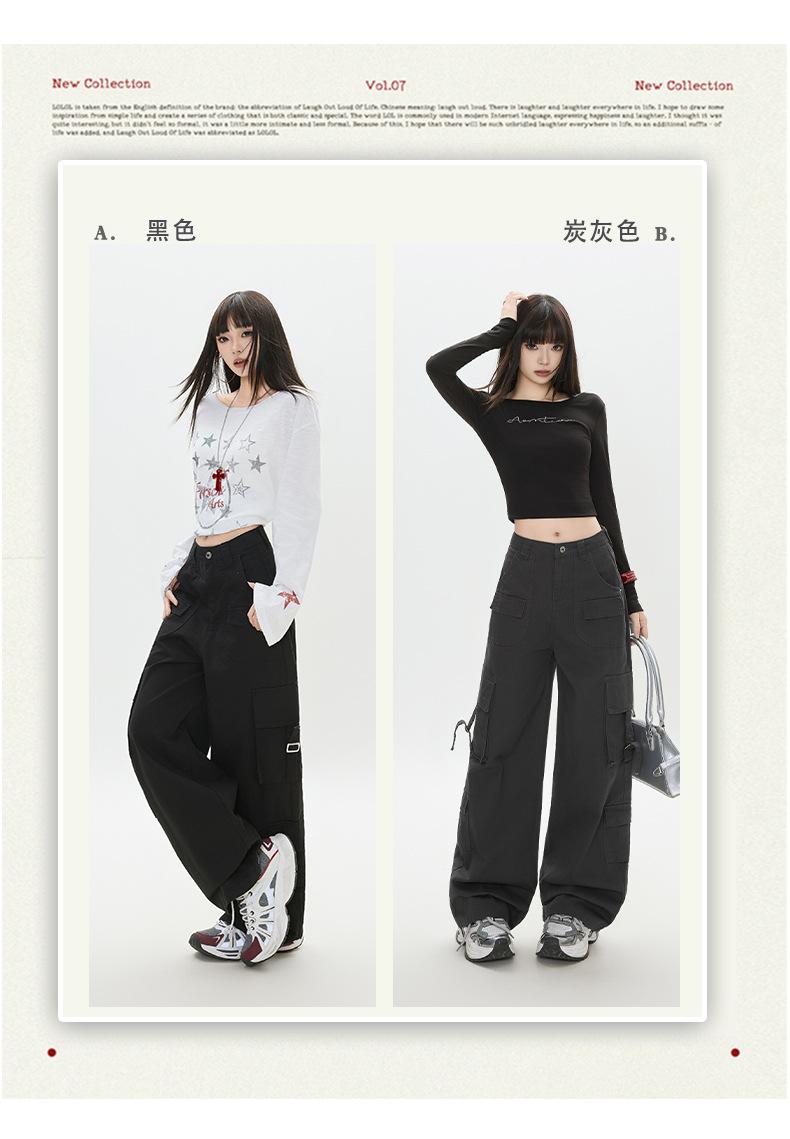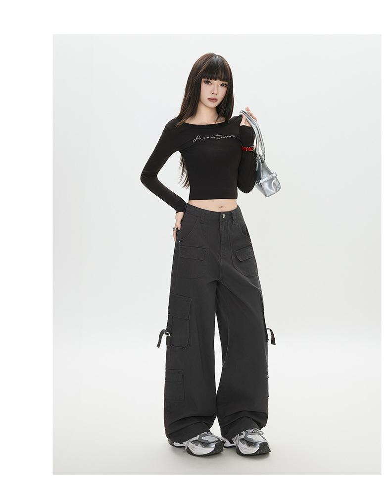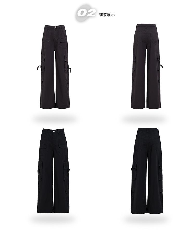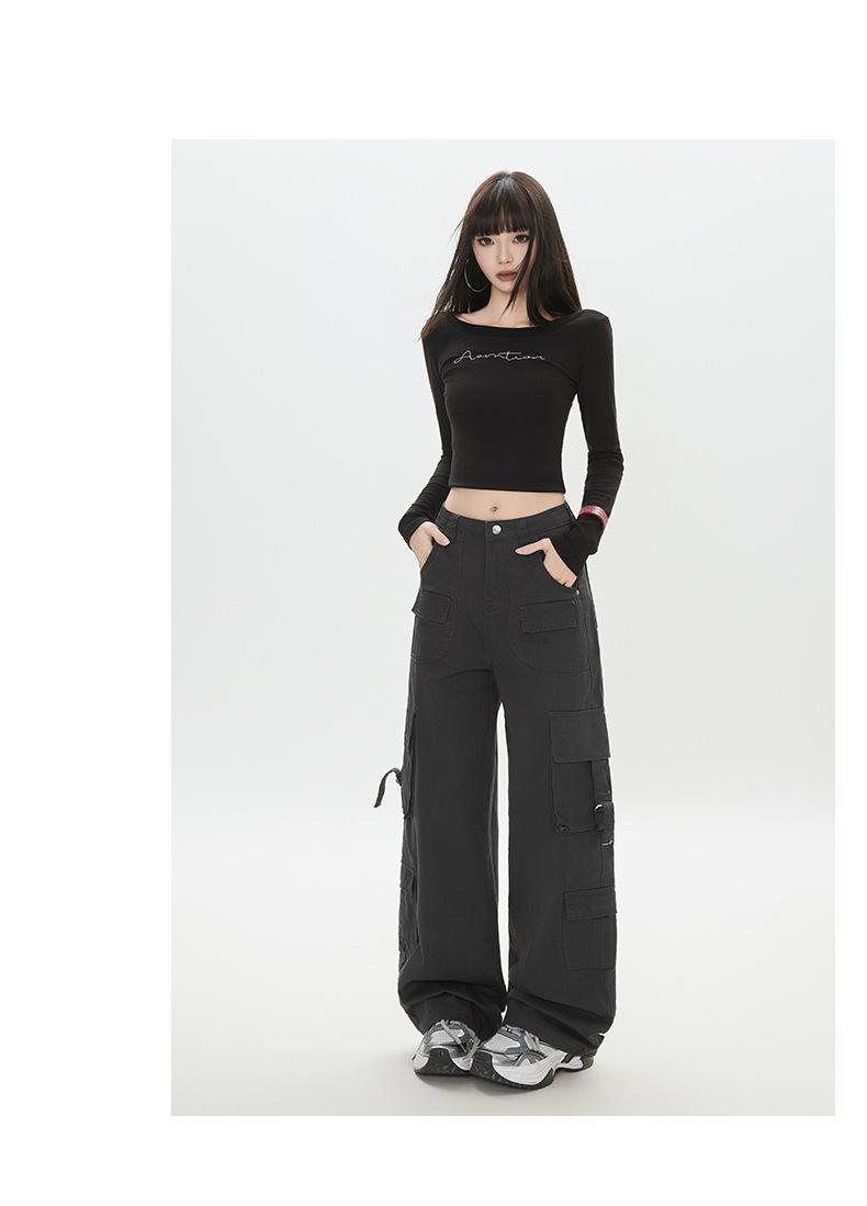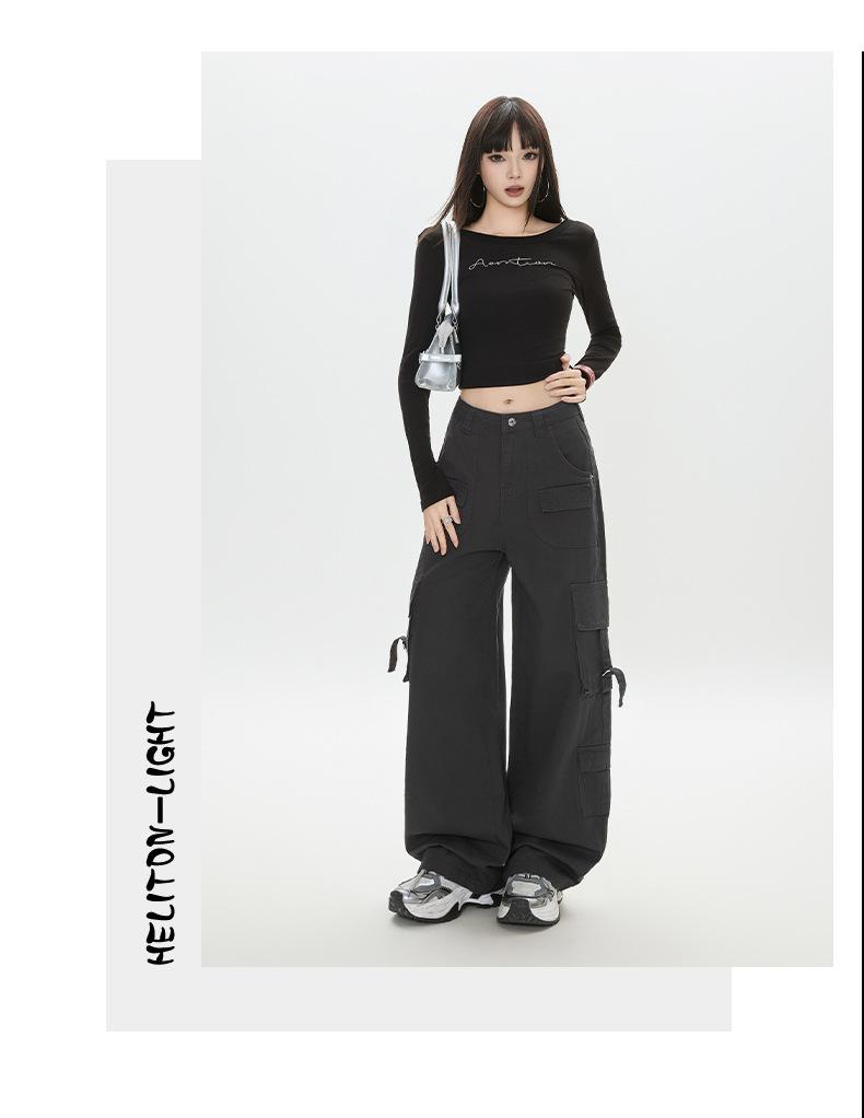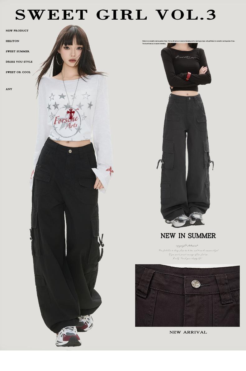 Otoño 2025 Diseño de Bolsillo Retro Americano Pantalones de Ropa de Trabajo High Street para Mujer Pantalones Casuales de Pierna Ancha Pantalones Largos