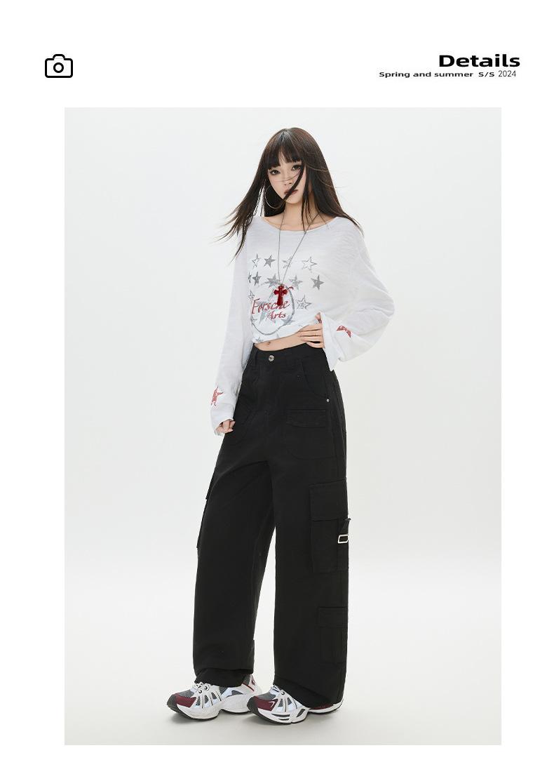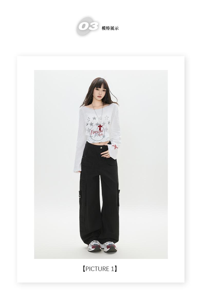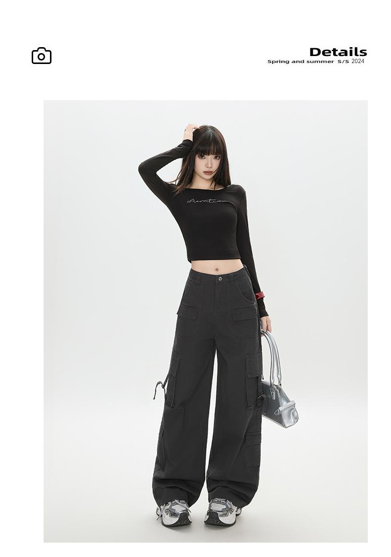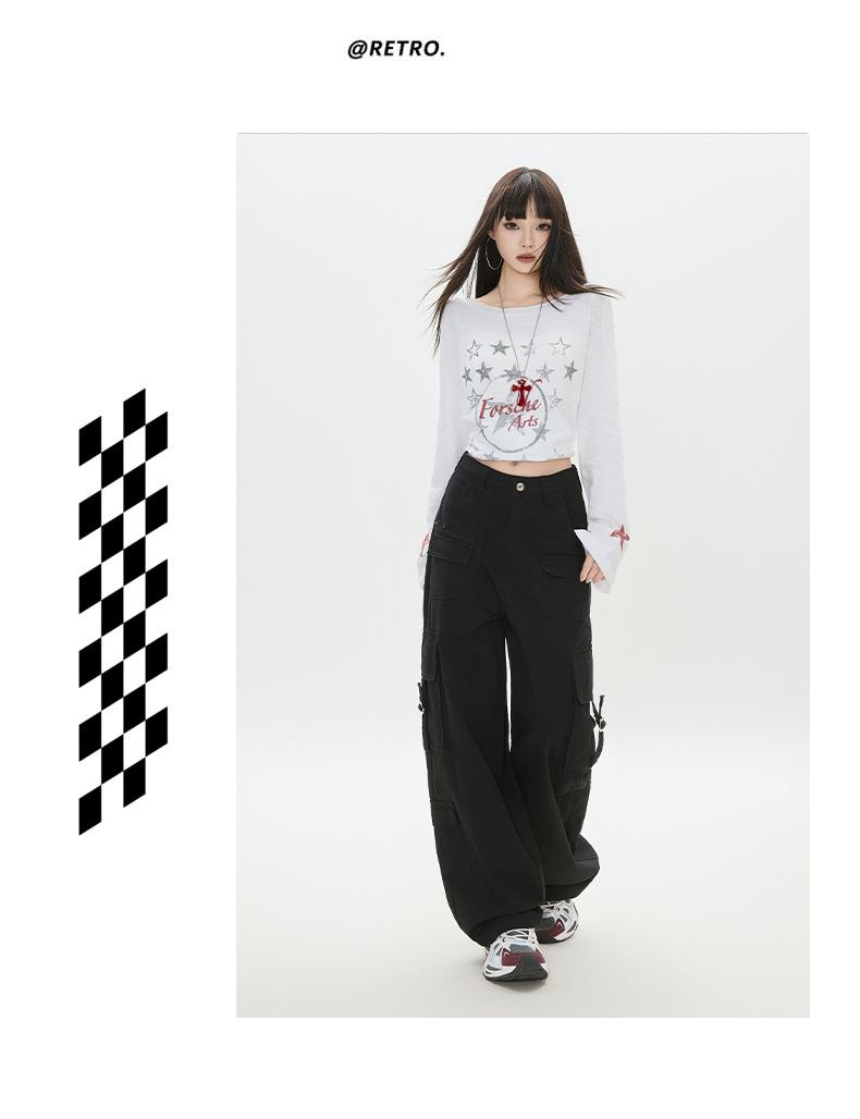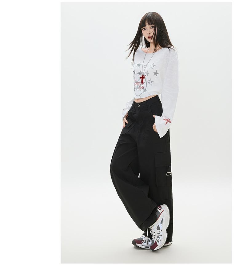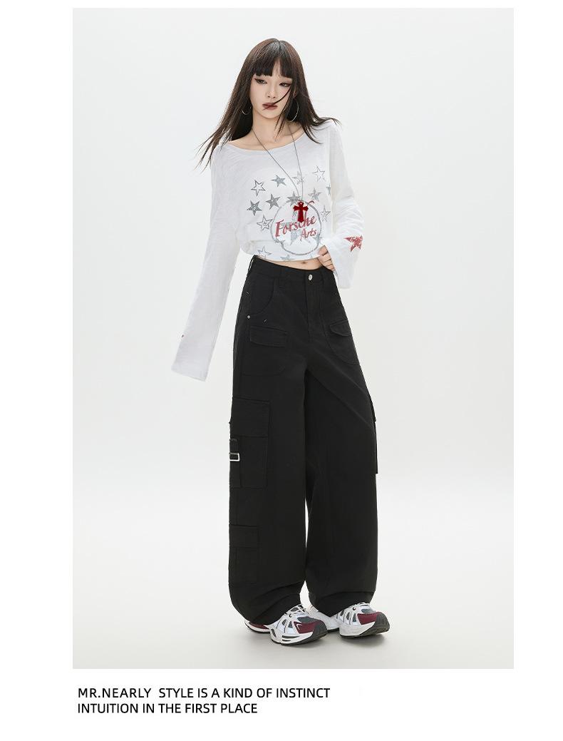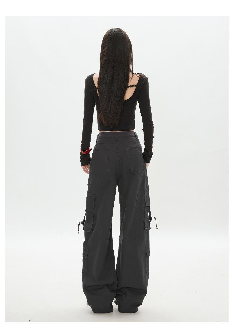 Otoño 2025 Diseño de Bolsillo Retro Americano Pantalones de Ropa de Trabajo High Street para Mujer Pantalones Casuales de Pierna Ancha Pantalones Largos