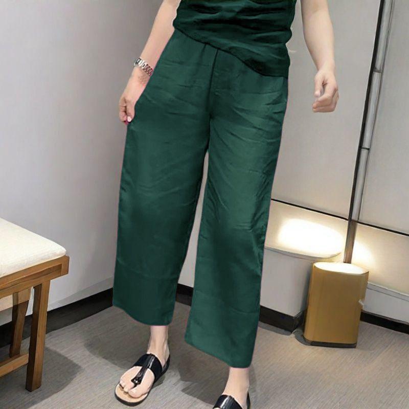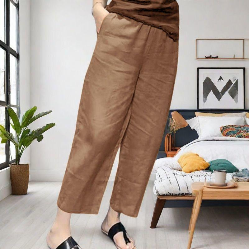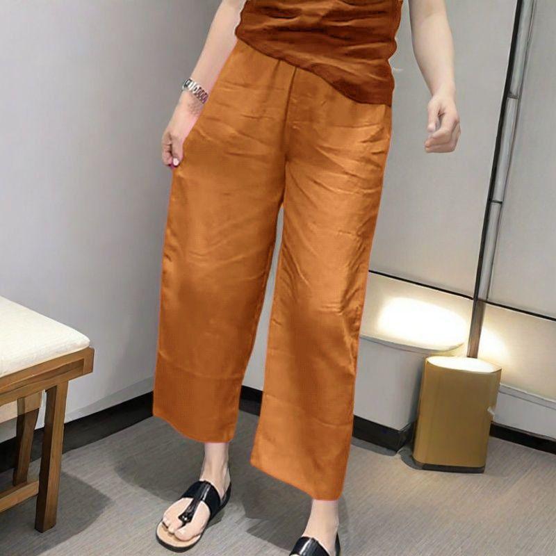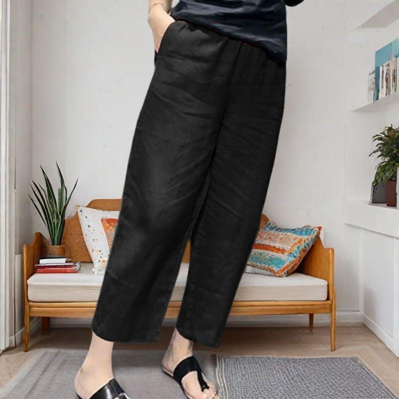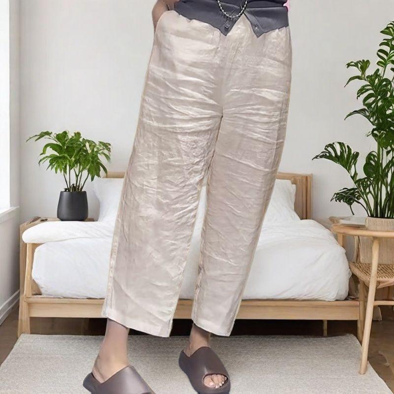 Pantalones Vintage de Pierna Ancha con Cintura Elástica, Pantalones de Lino Adelgazantes, Nuevos Pantalones Casuales de Verano Recortados, Pantalones de Pierna Ancha de Algodón-Lino para Mujer
