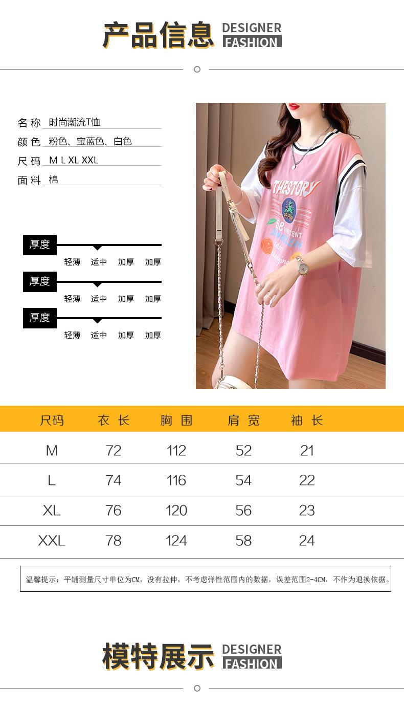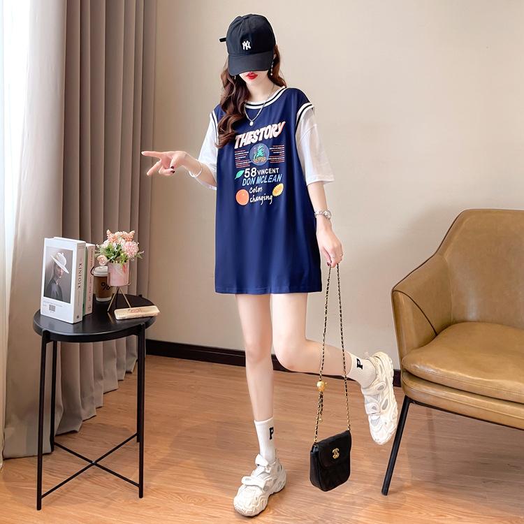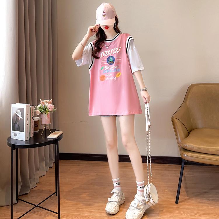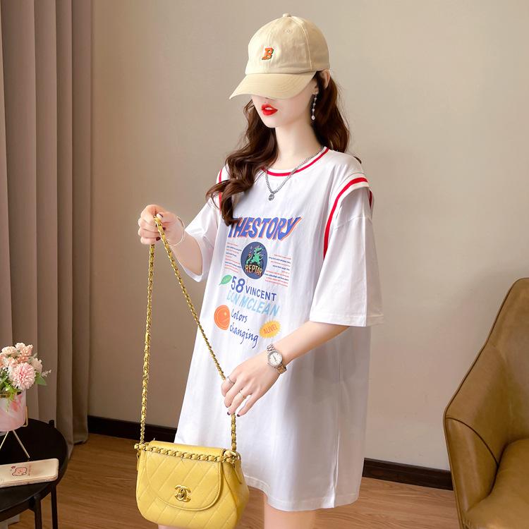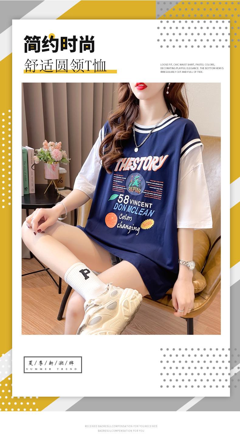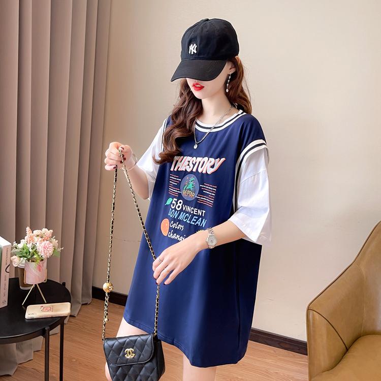 Compra Foto Real Verano Largo Medio Falso Dos Piezas Camiseta Manga Corta Femenina Hermana Gordita 2023 Nueva Ropa Holgada para Estudiantes al por mayor en Joom.pro