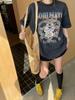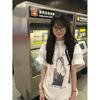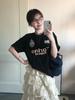 Camiseta de Manga Corta de Algodón Puro con Letras Inglesas Camiseta de Pareja para Mujer Estampada de Media Manga Top Ropa Trendy Calle Única