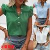 Ropa de mujer europea y americana transfronteriza 2025 primavera nueva moda temperamento sentido del diseño camisa de oreja de madera a cuadros