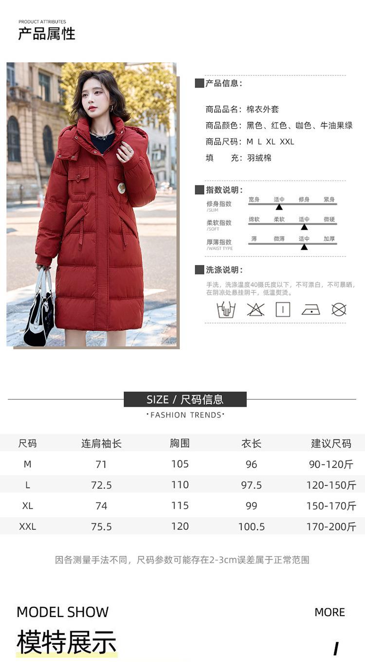 Abrigo de Algodón de Plumón para Mujer 2024 Invierno Largo Medio Moda Chaqueta de Algodón Versátil Abrigo Acolchado con Capucha Tendencia