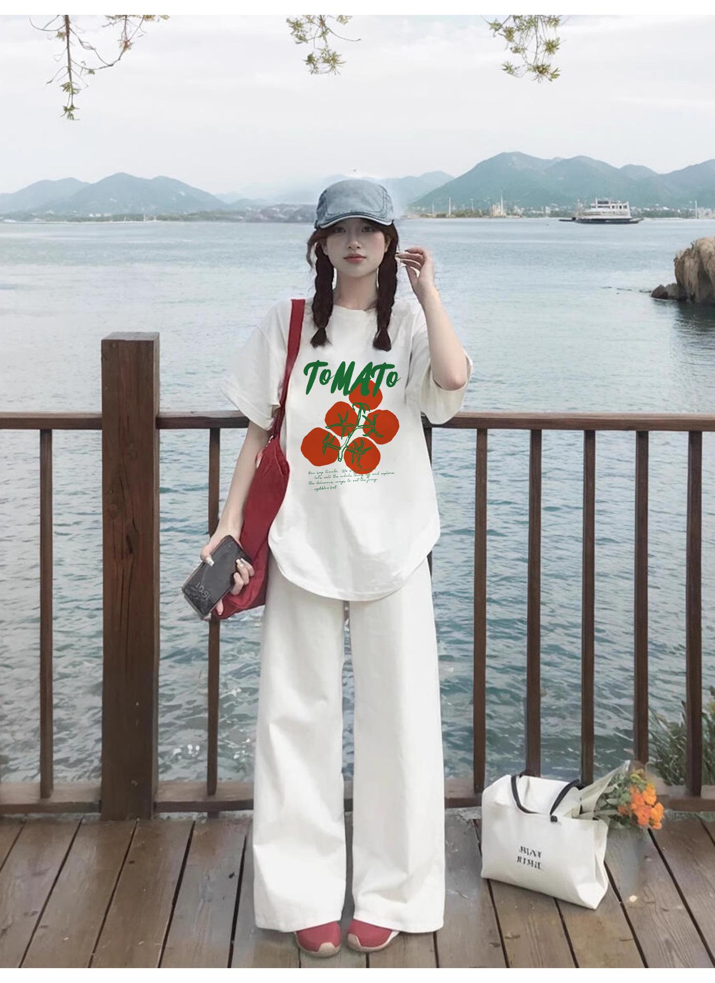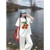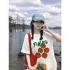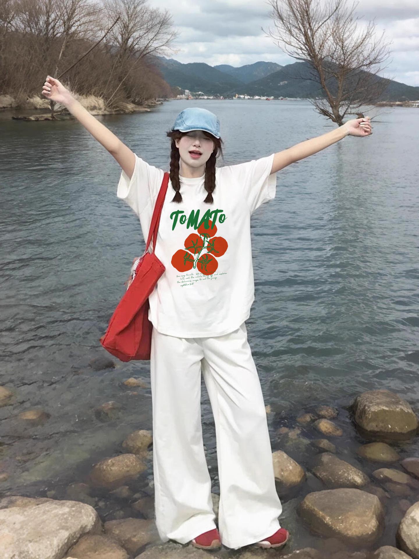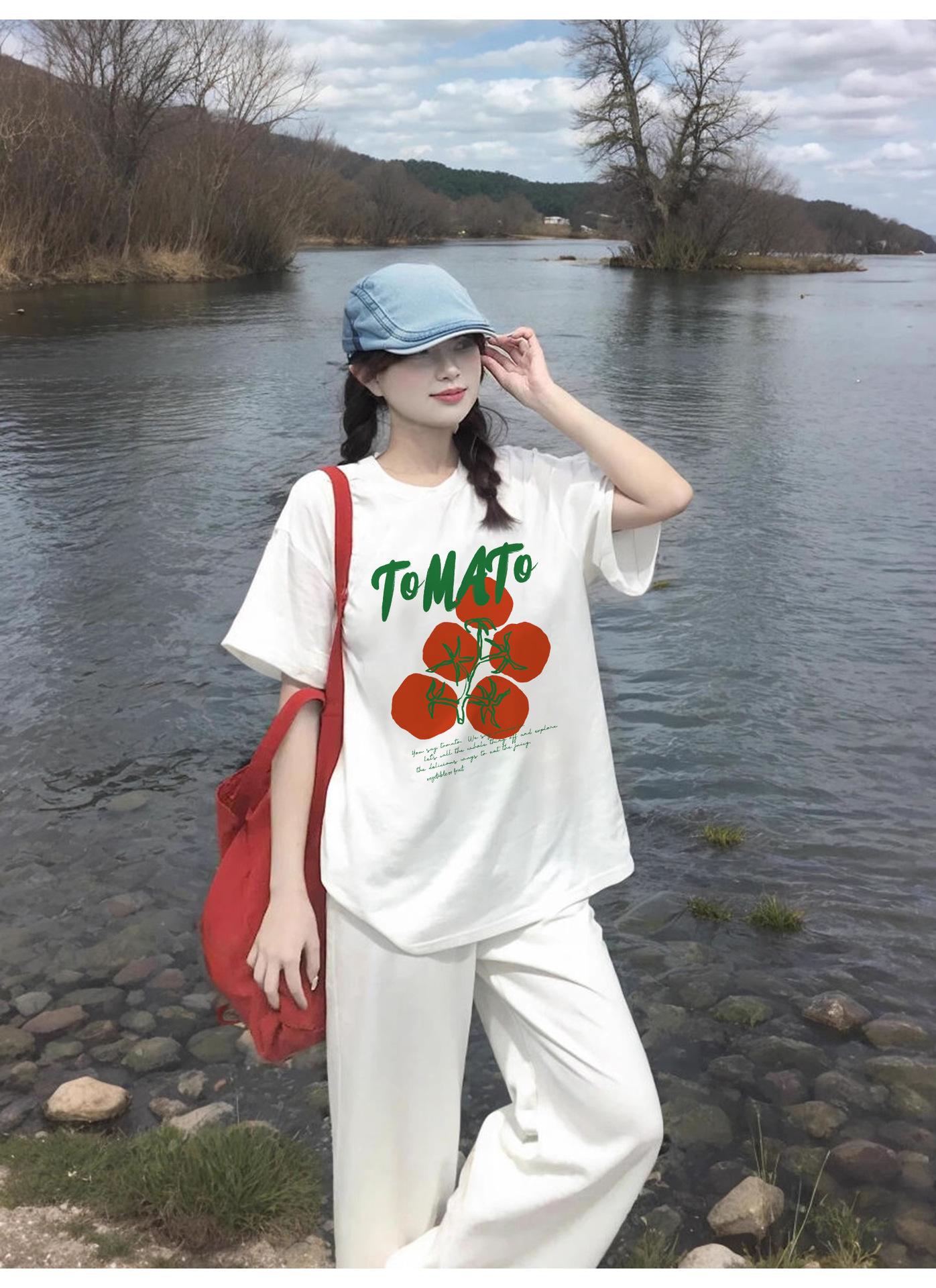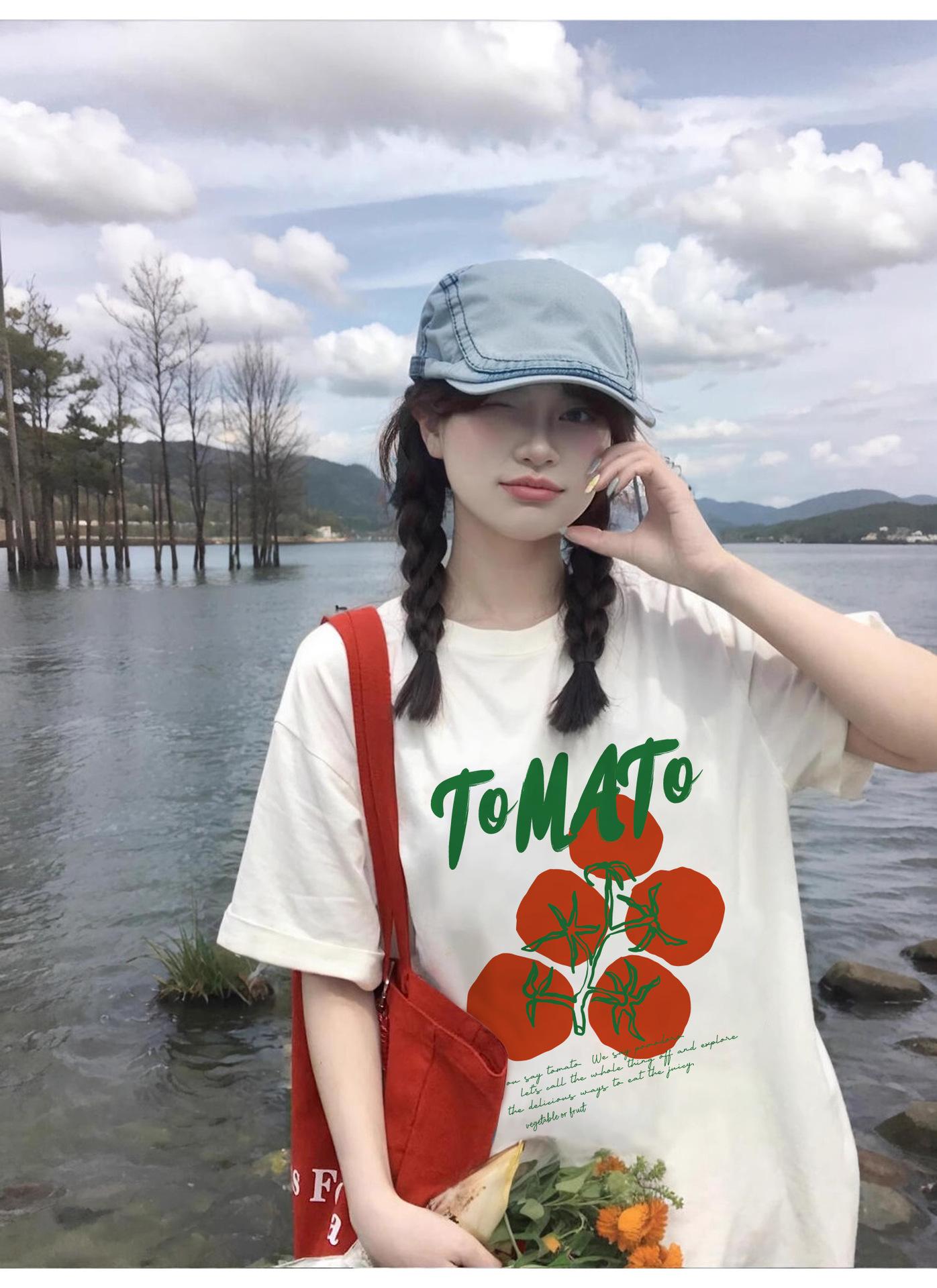 Tops cómodos de manga corta de algodón puro 2025 Verano Nuevo Cuello redondo Suelto Casual Camiseta estampada para mujer Estilo coreano Camiseta básica