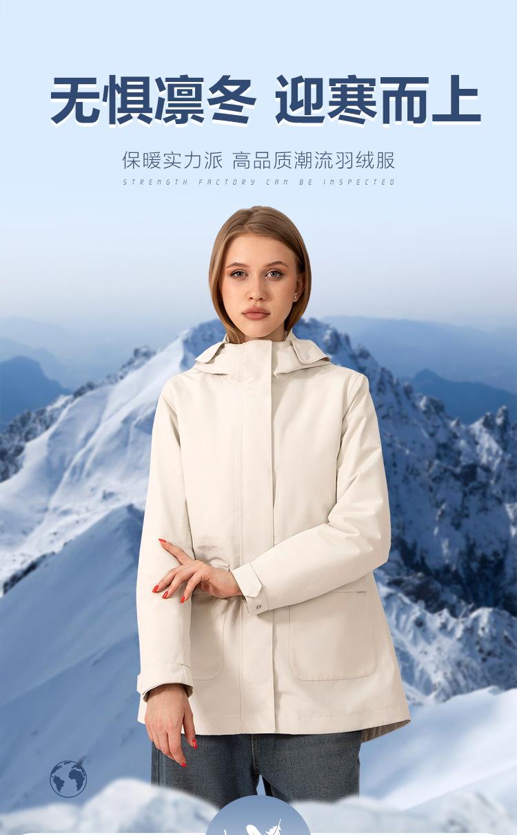 Chaqueta de Otoño e Invierno Cortavientos e Impermeable para Exterior Cálida con Capucha Forro de Plumón Removible Set de Dos Piezas Personalizado