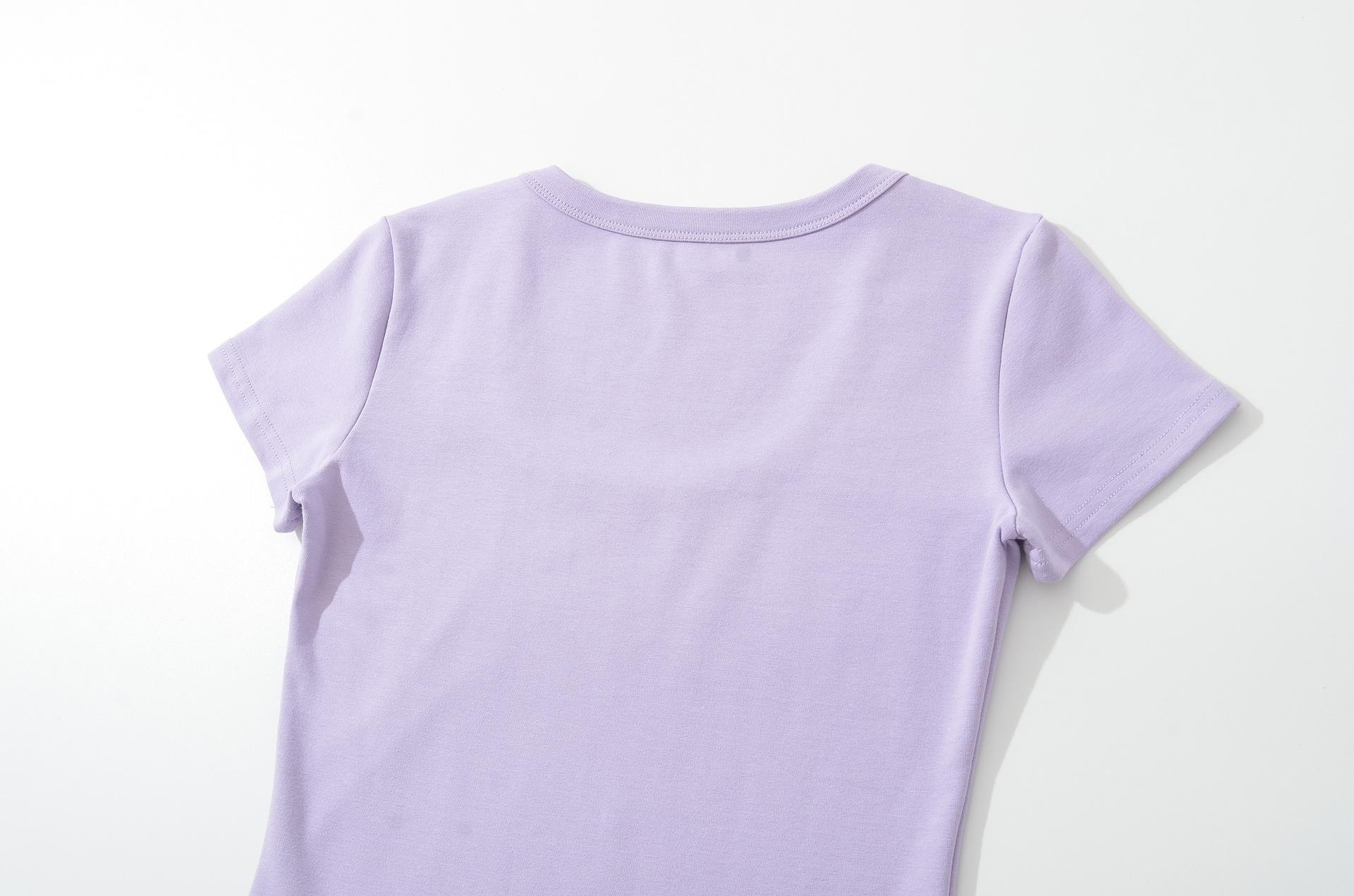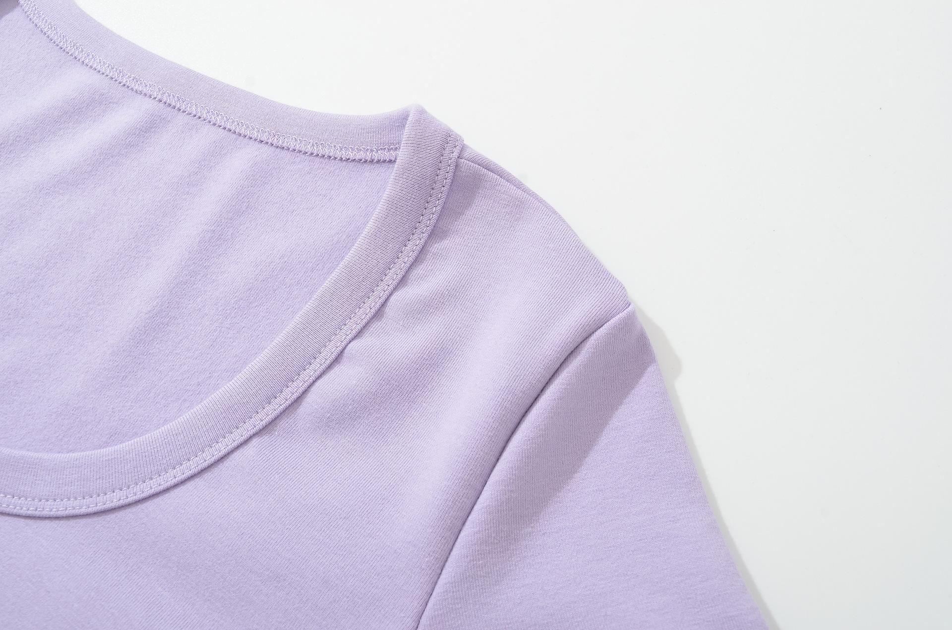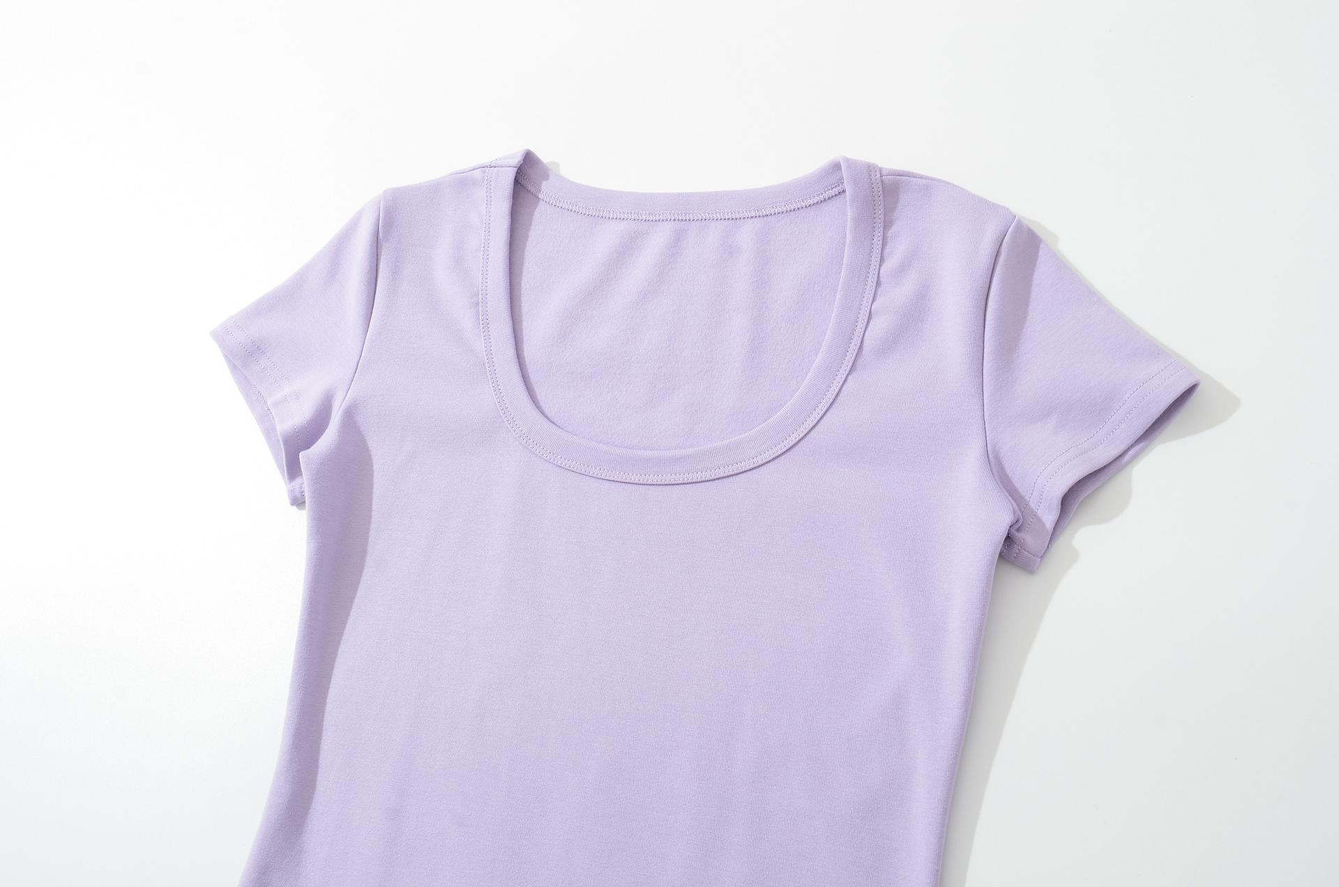 6025-25 Nuevo Estilo de Verano Estilo Europeo y Americano Color Puro Cuello en U Manga Corta Color Puro Sencillo Ropa Exterior Casual Camiseta para Fondo