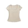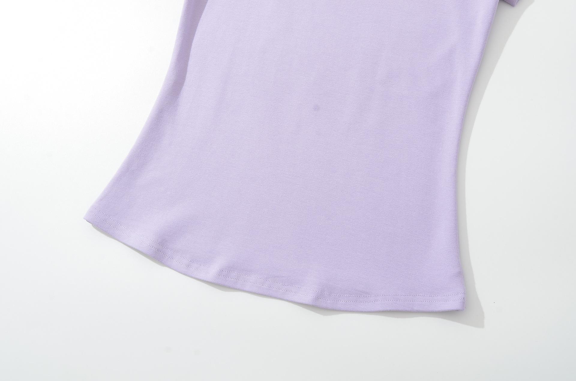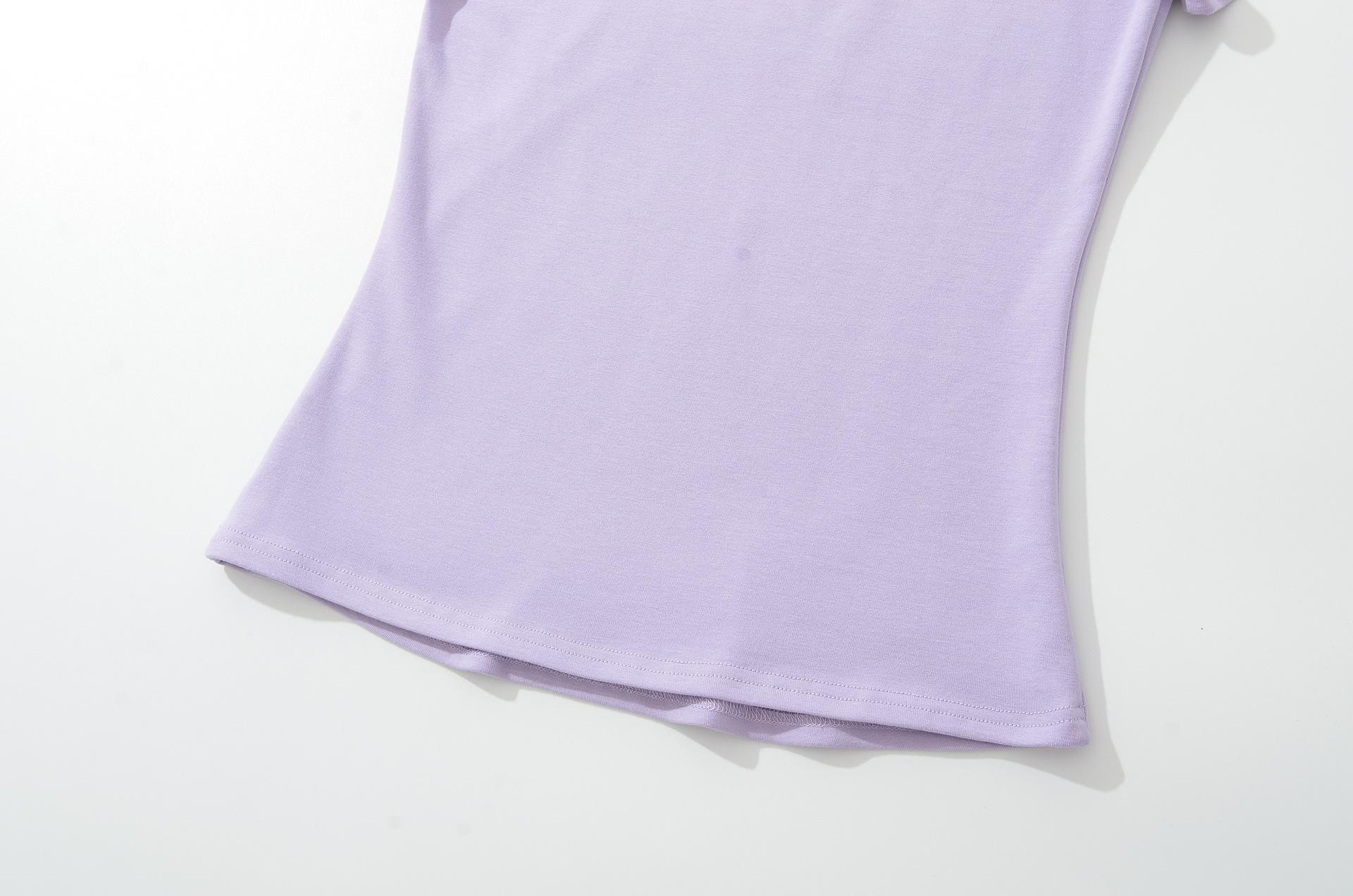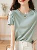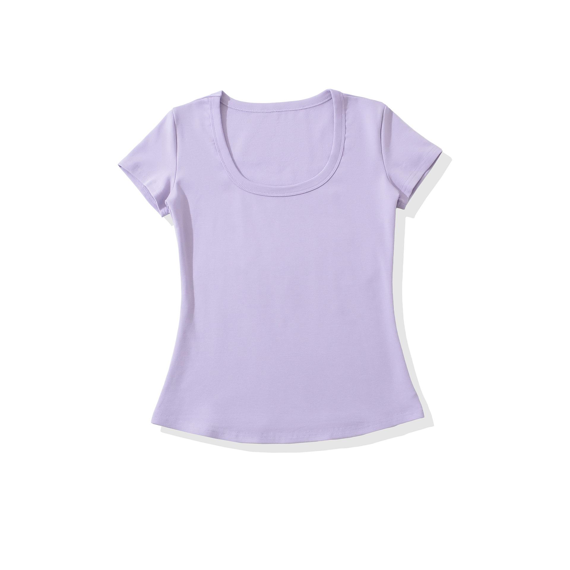 6025-25 Nuevo Estilo de Verano Estilo Europeo y Americano Color Puro Cuello en U Manga Corta Color Puro Sencillo Ropa Exterior Casual Camiseta para Fondo
