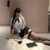 Traje de estudiante JK sexy, minifalda bonita, top de tubo de un solo hombro, falda con tirantes estilo preppy para novia, traje de marinero de pura lujuria