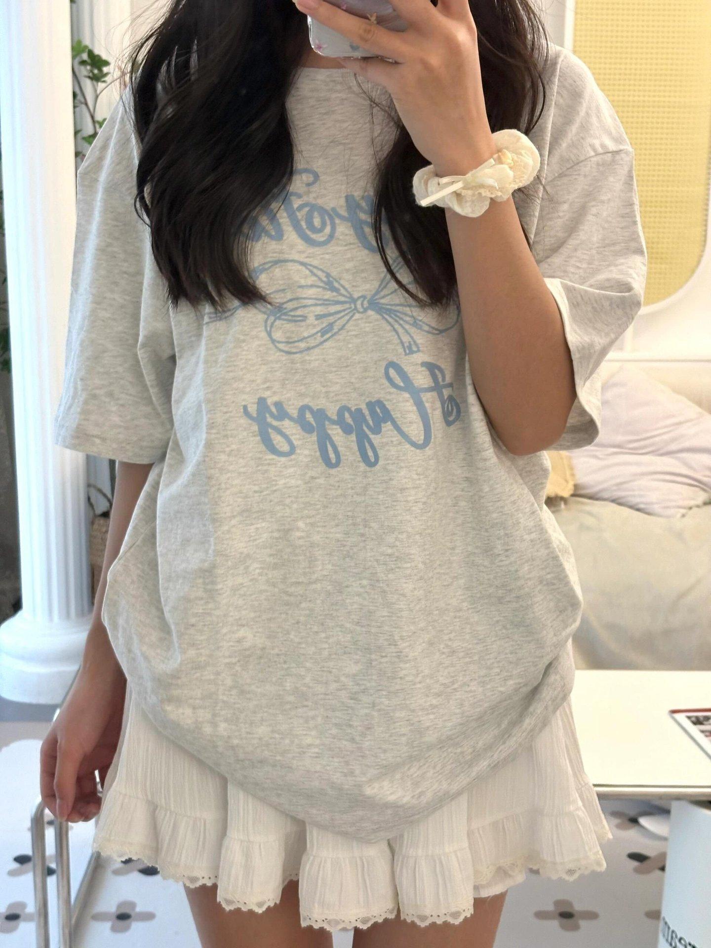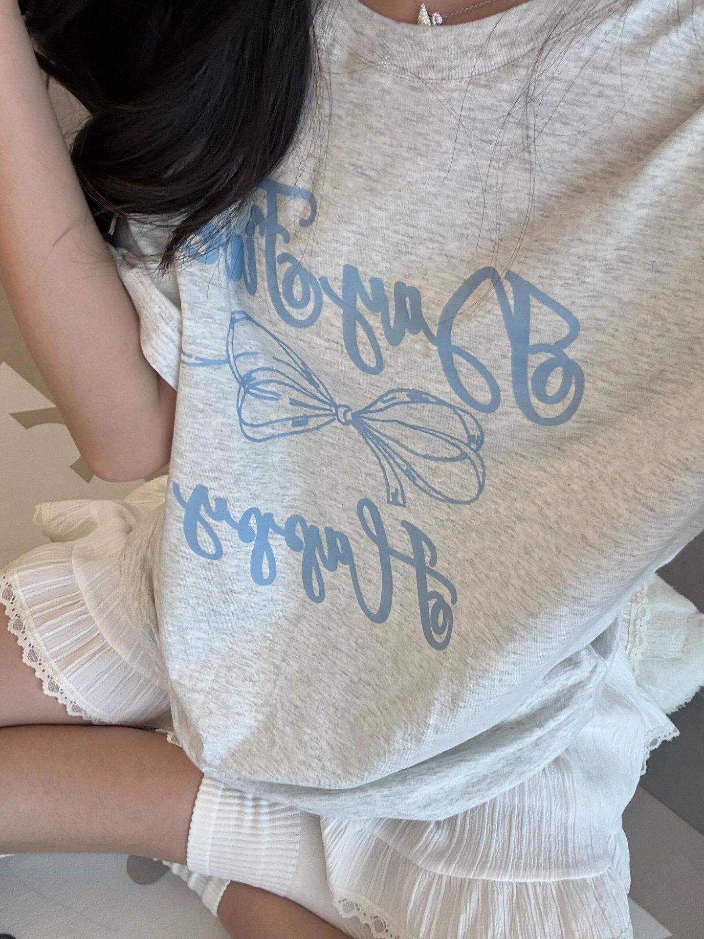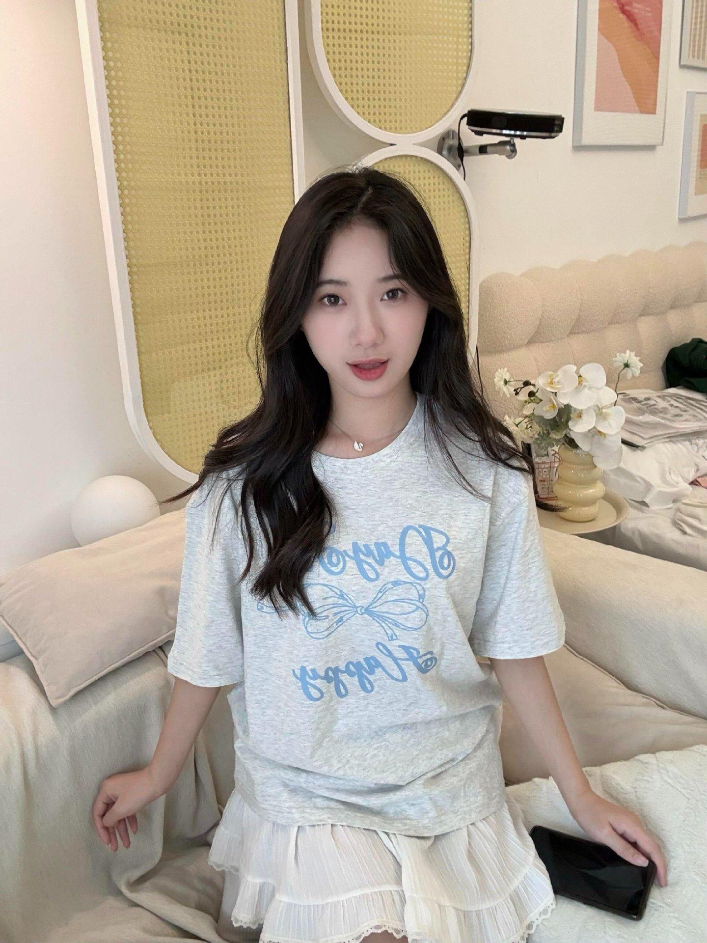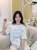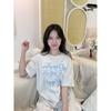 Camiseta de Manga Corta de Algodón Puro con Estampado de Marca Moderna Casual Pintada a Mano Tops Ropa Preppy Elegante para Mujer Cool