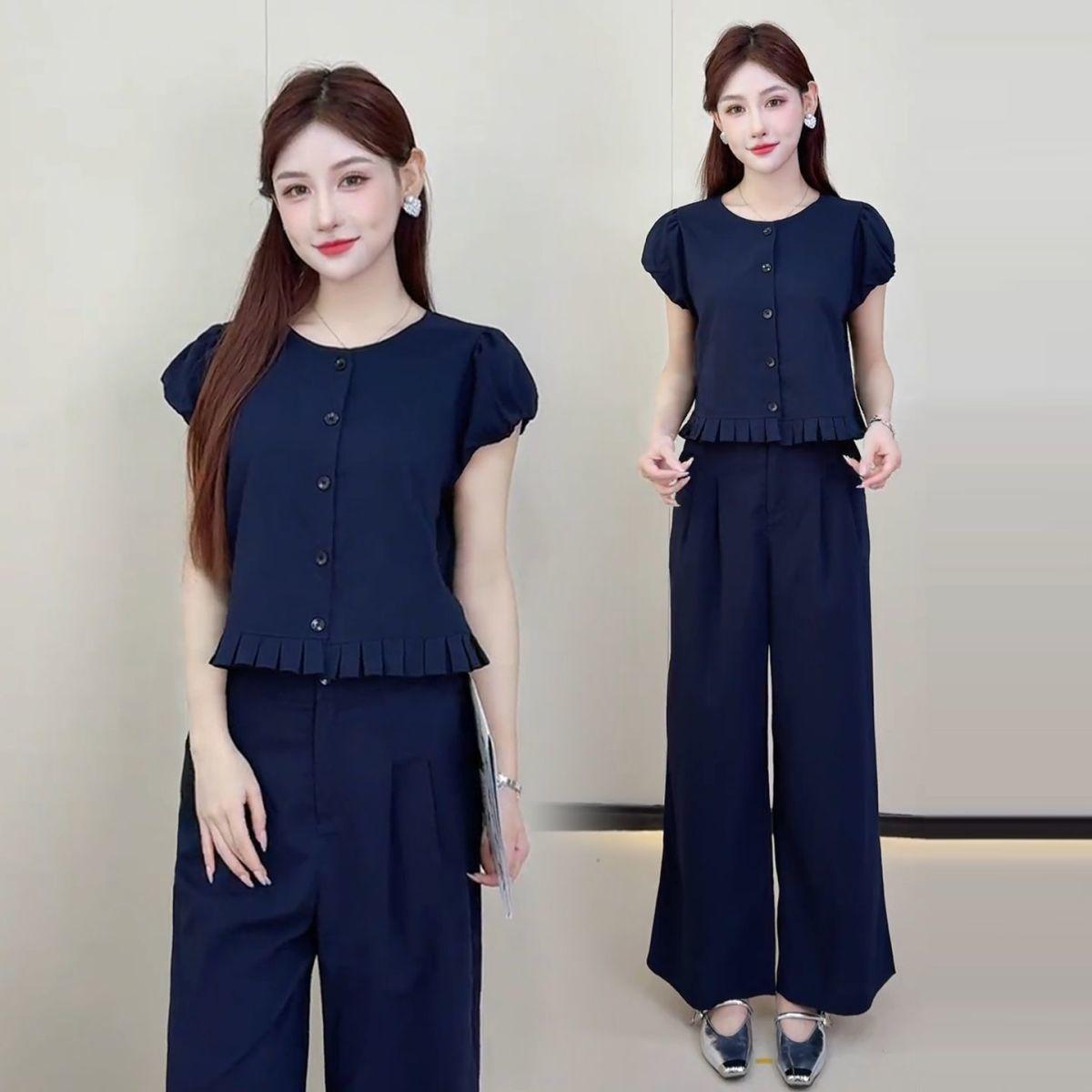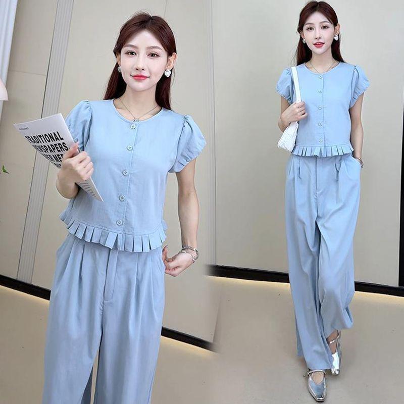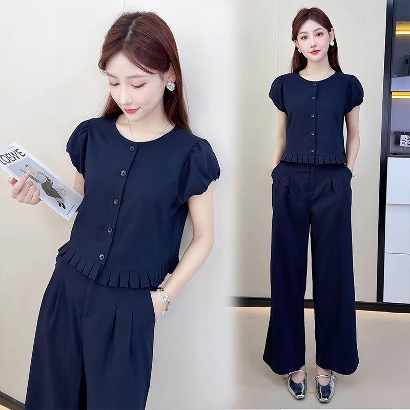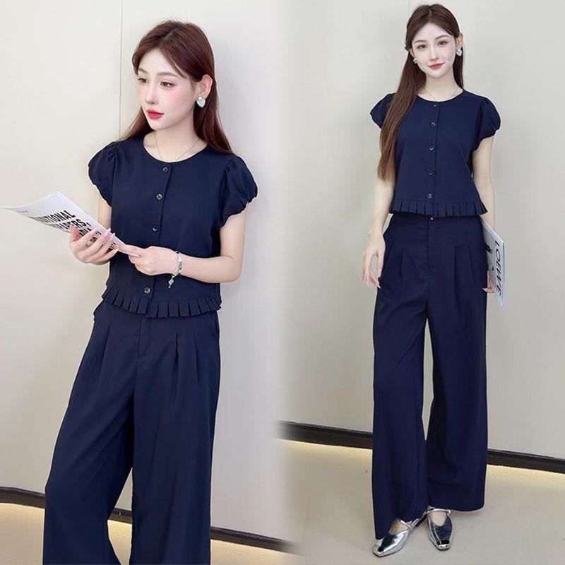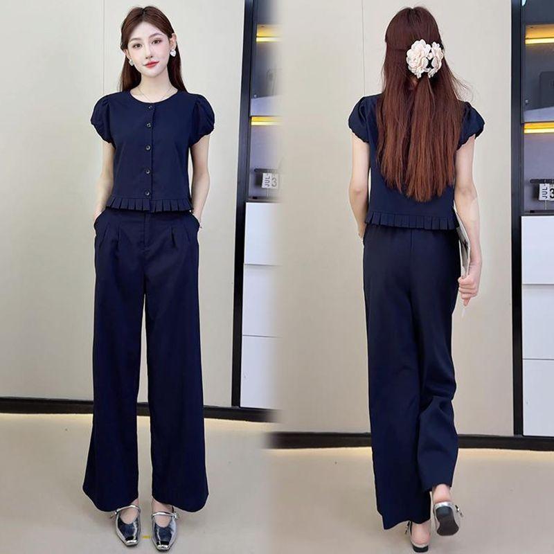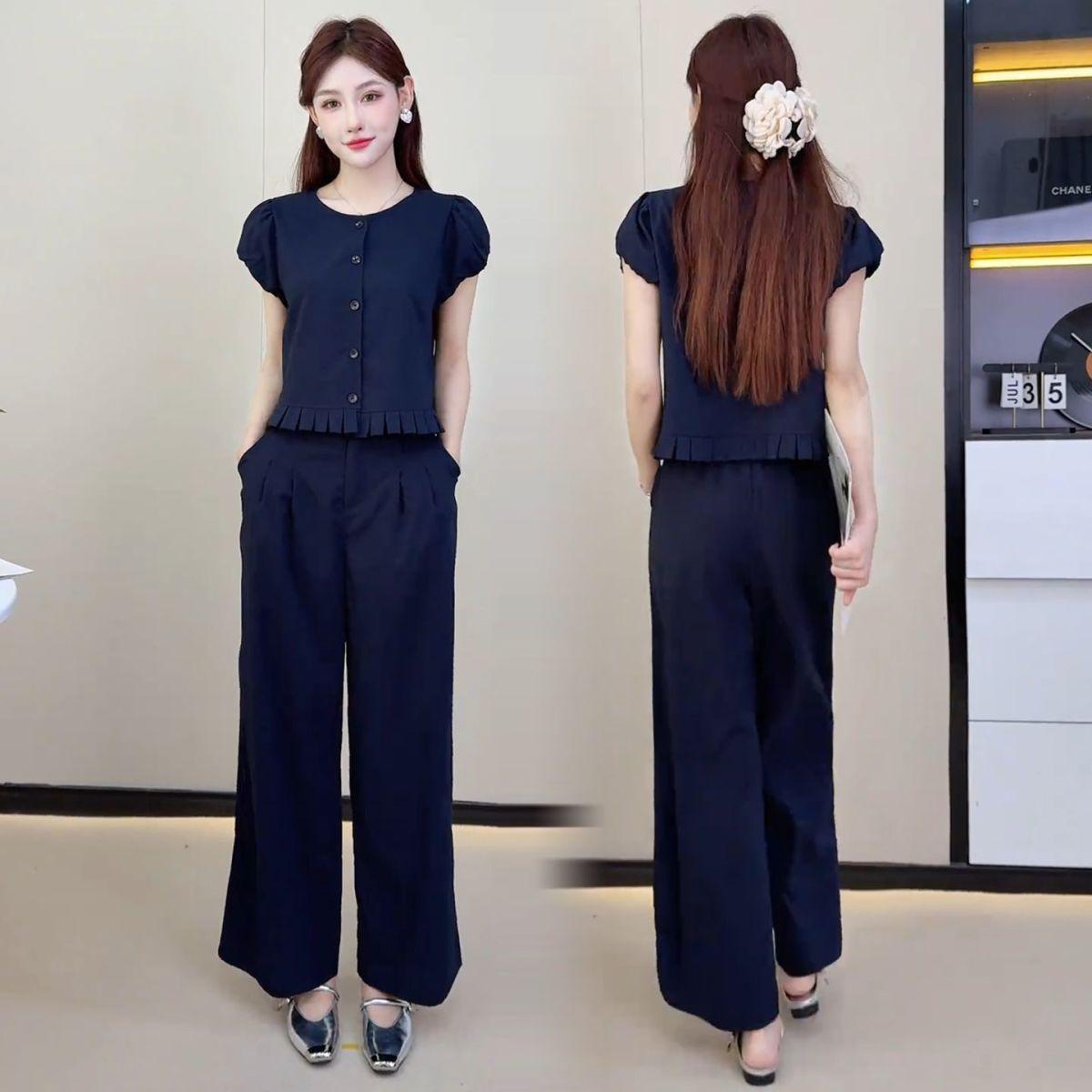 Conjunto de Moda para Mujer 2025 Verano Nuevo Estilo Diseño Adelgazante Tendencia Manga Corta Pantalones Cortos de Pierna Ancha Temperamento Conjunto de Dos Piezas
