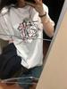 Camiseta de Manga Corta Estampada Top Camiseta Base de Alta Gama Algodón Puro Camiseta de Manga Corta para Mujer Estilo Grafiti Europeo y Americano Estilo Coreano Camisa Pequeña