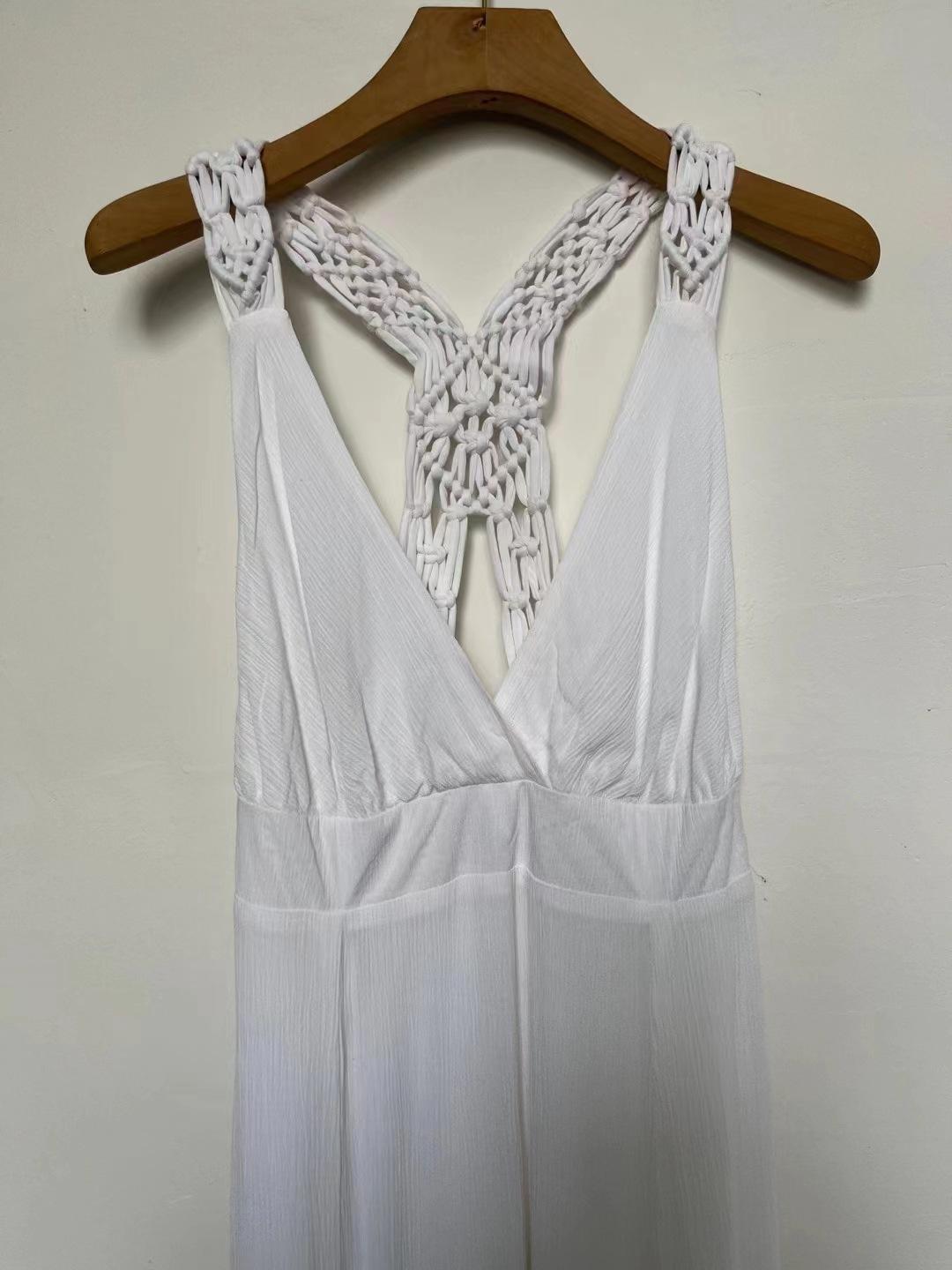 Vestido Mop de Verano para Mujer con Cuello en V sin Mangas, Nuevo Vestido Largo Plisado con Tirantes y Cintura Alta
