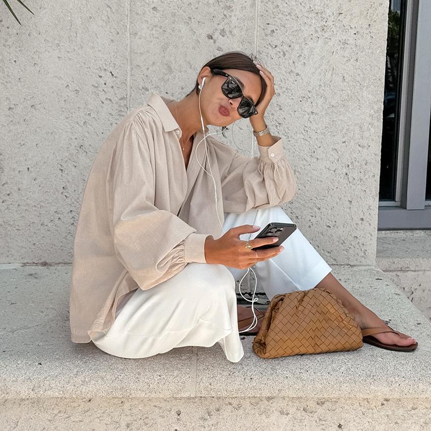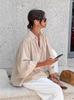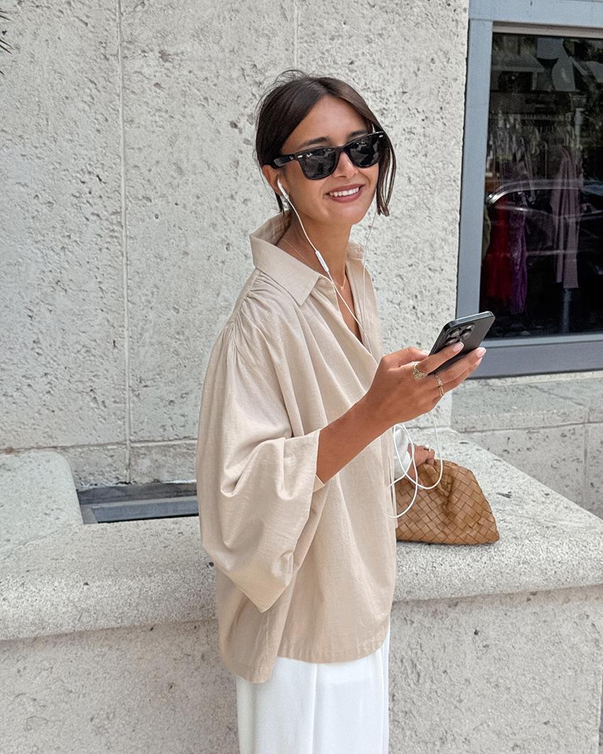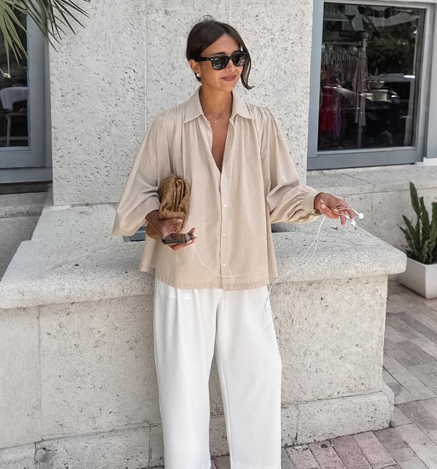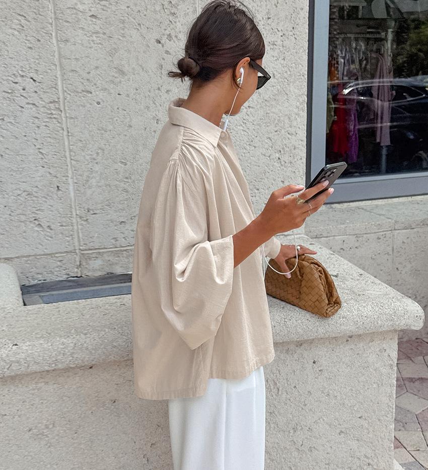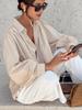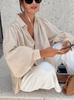 Camisa de lino transpirable de moda minimalista europea y americana 2025 ropa de mujer transfronteriza diseño holgado sentido plisado manga farol top