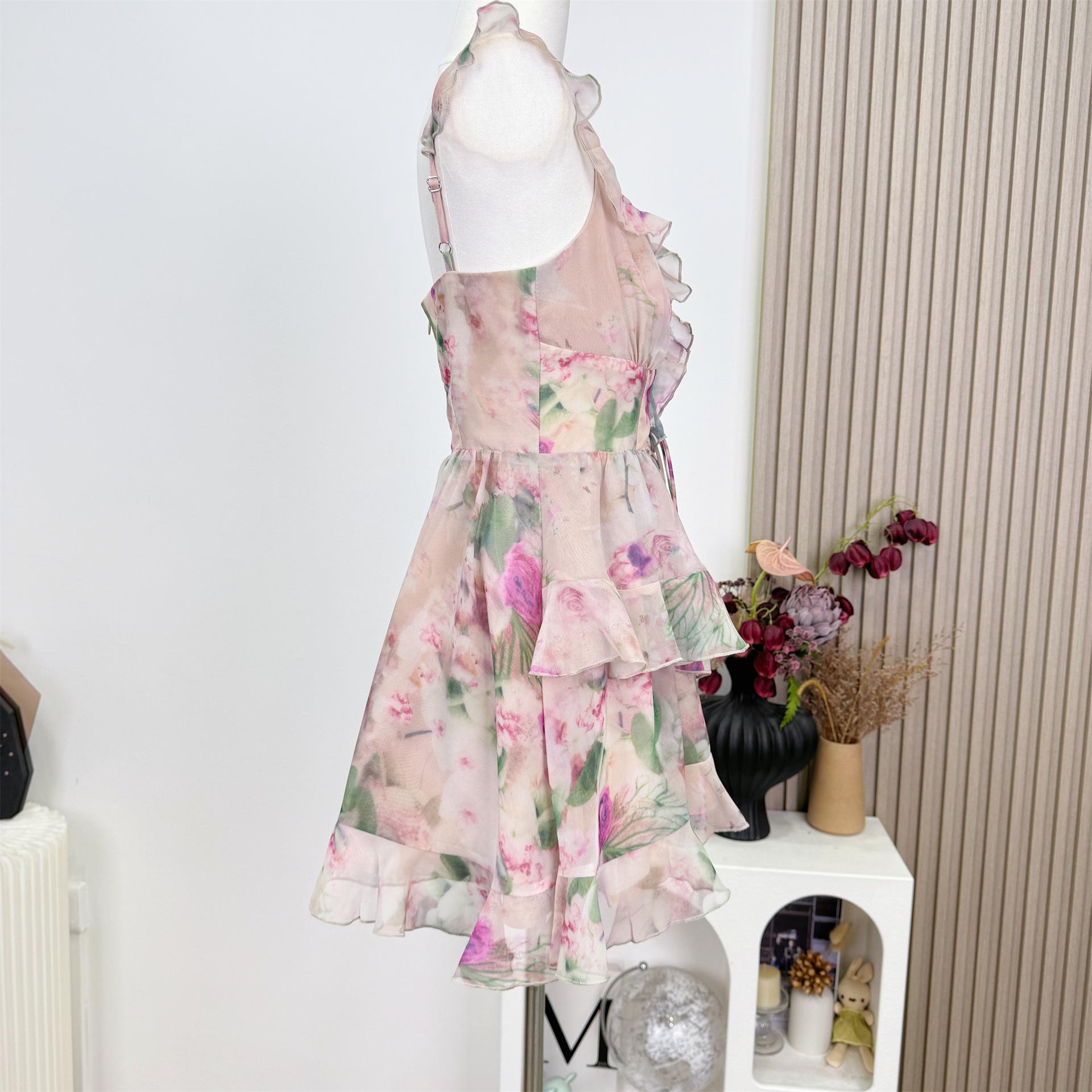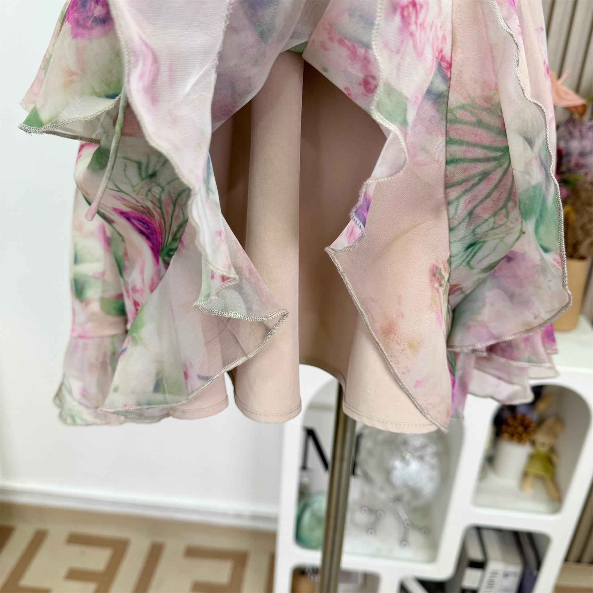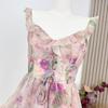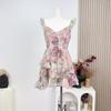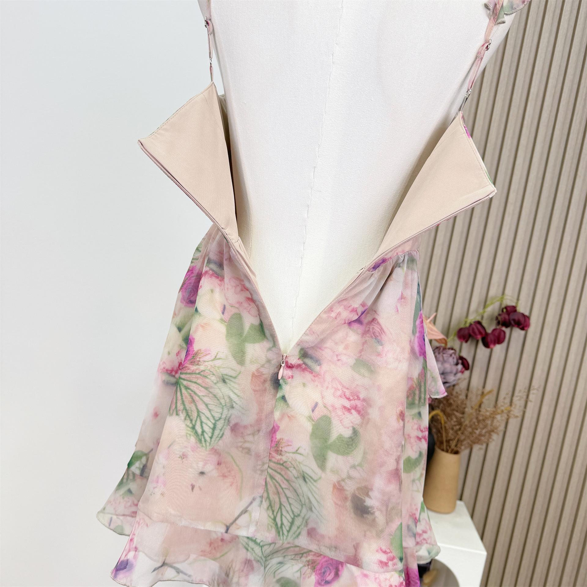 Vestido Floral de Tirantes para Mujer con Volantes Estampado Cuello en V Falda Corta