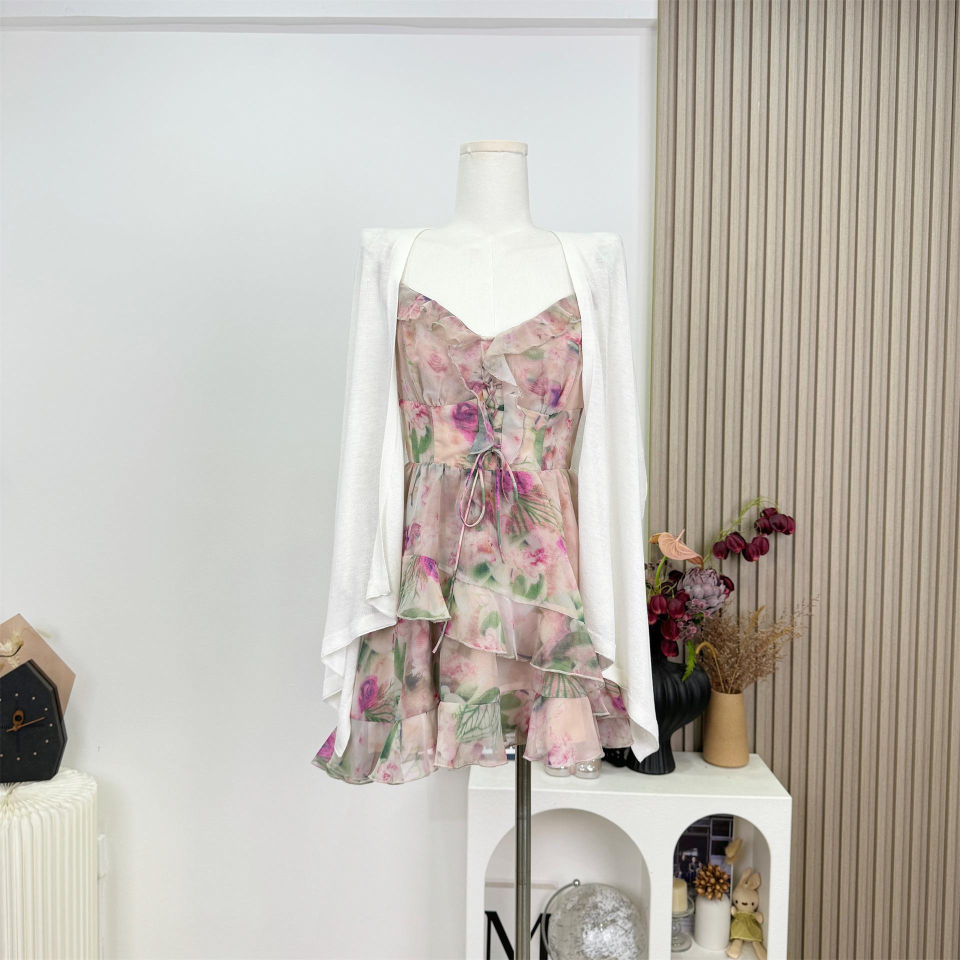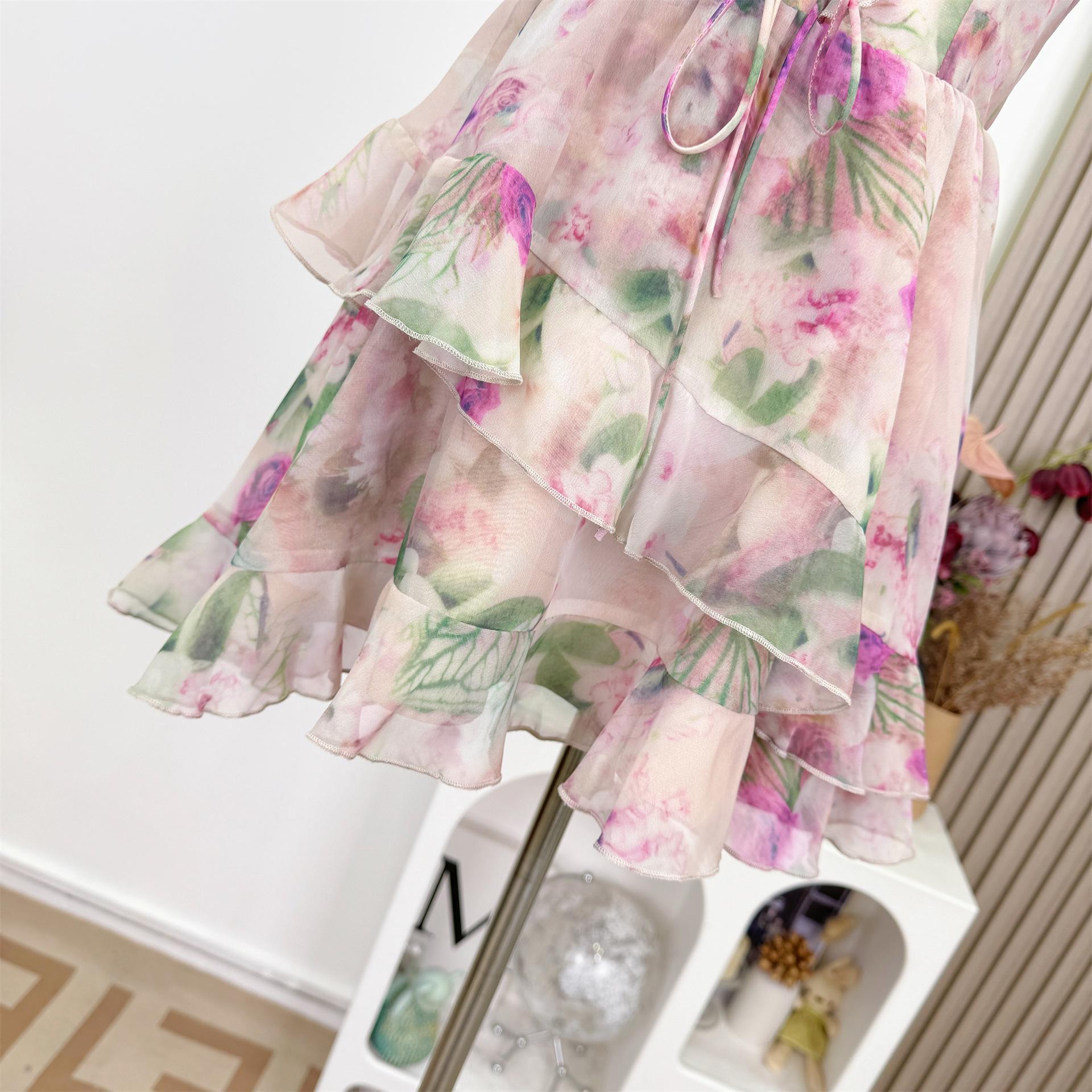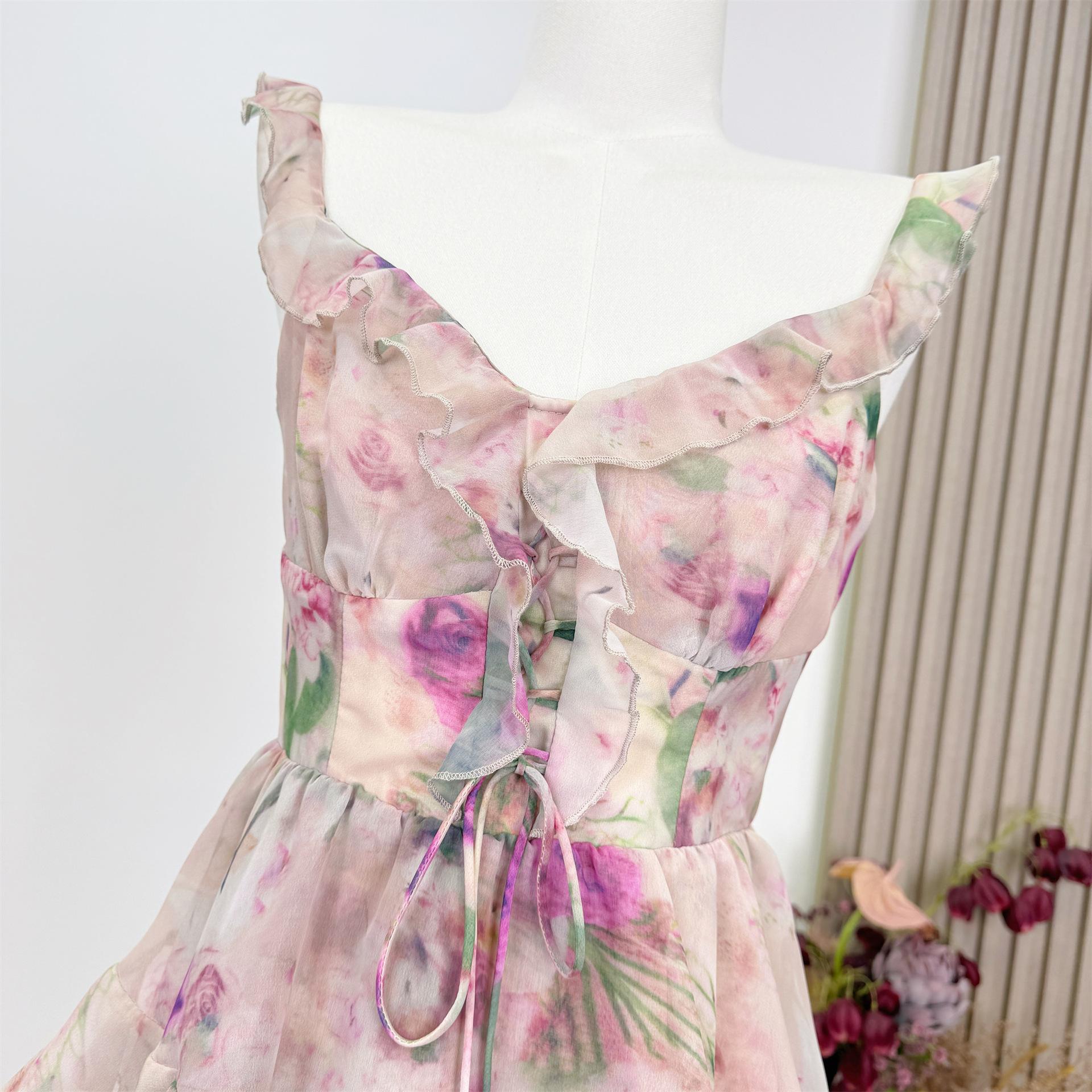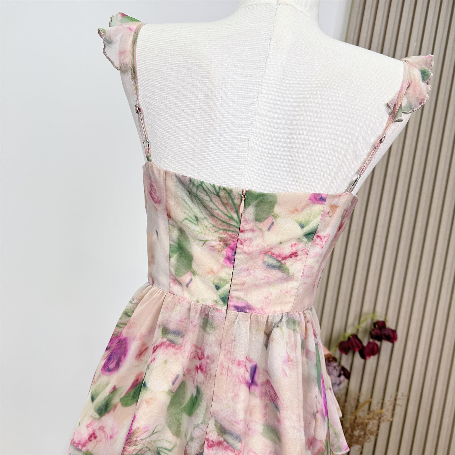 Vestido Floral de Tirantes para Mujer con Volantes Estampado Cuello en V Falda Corta