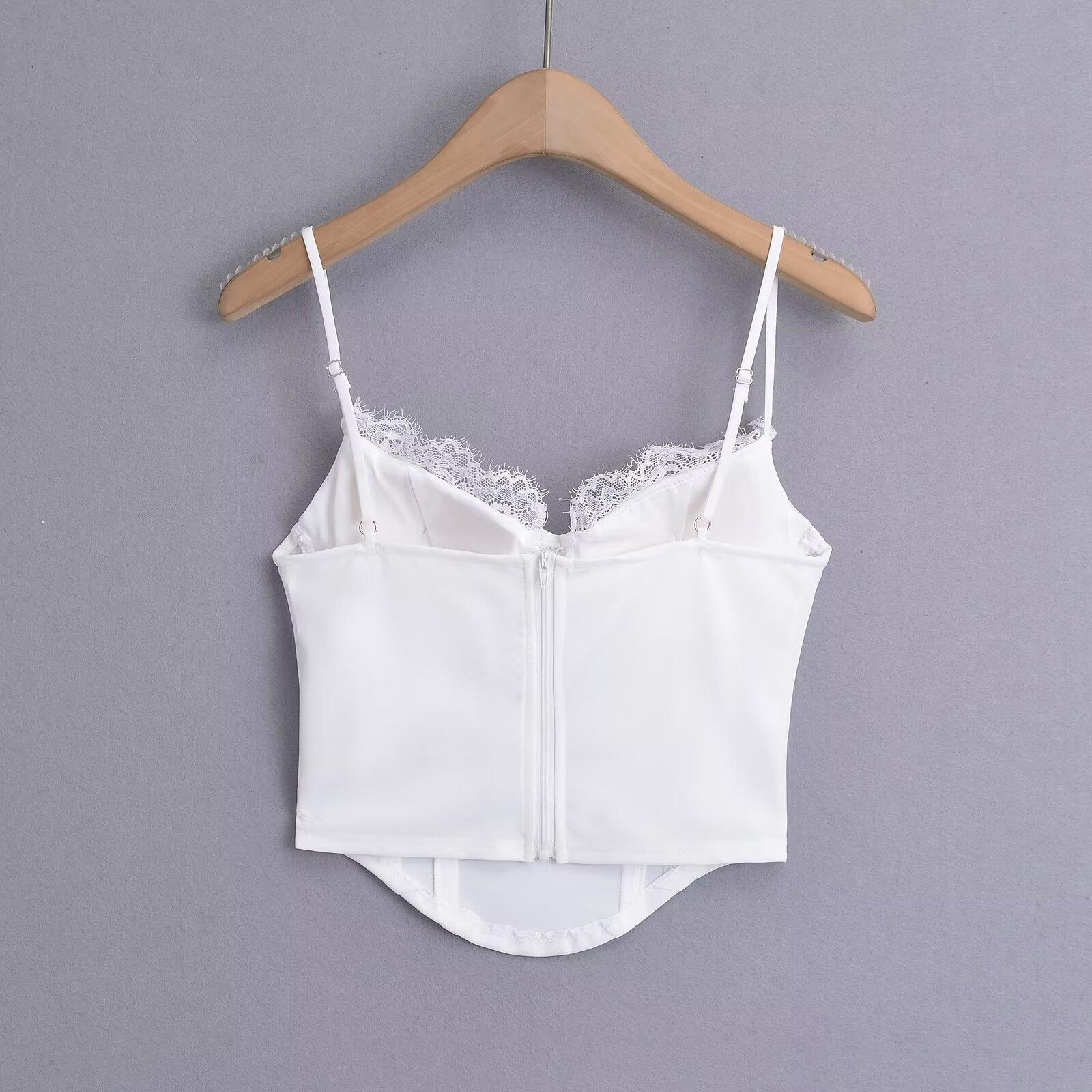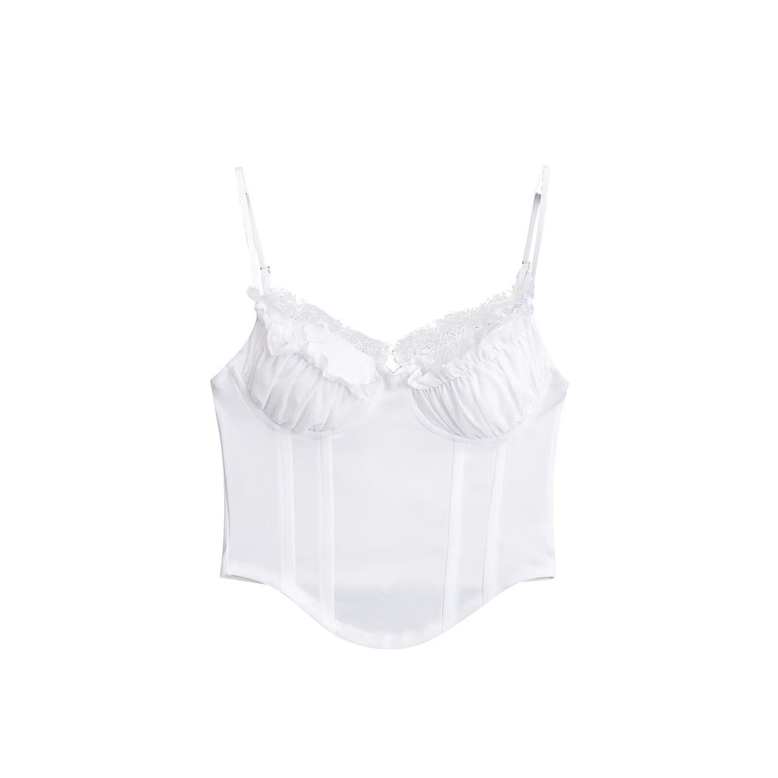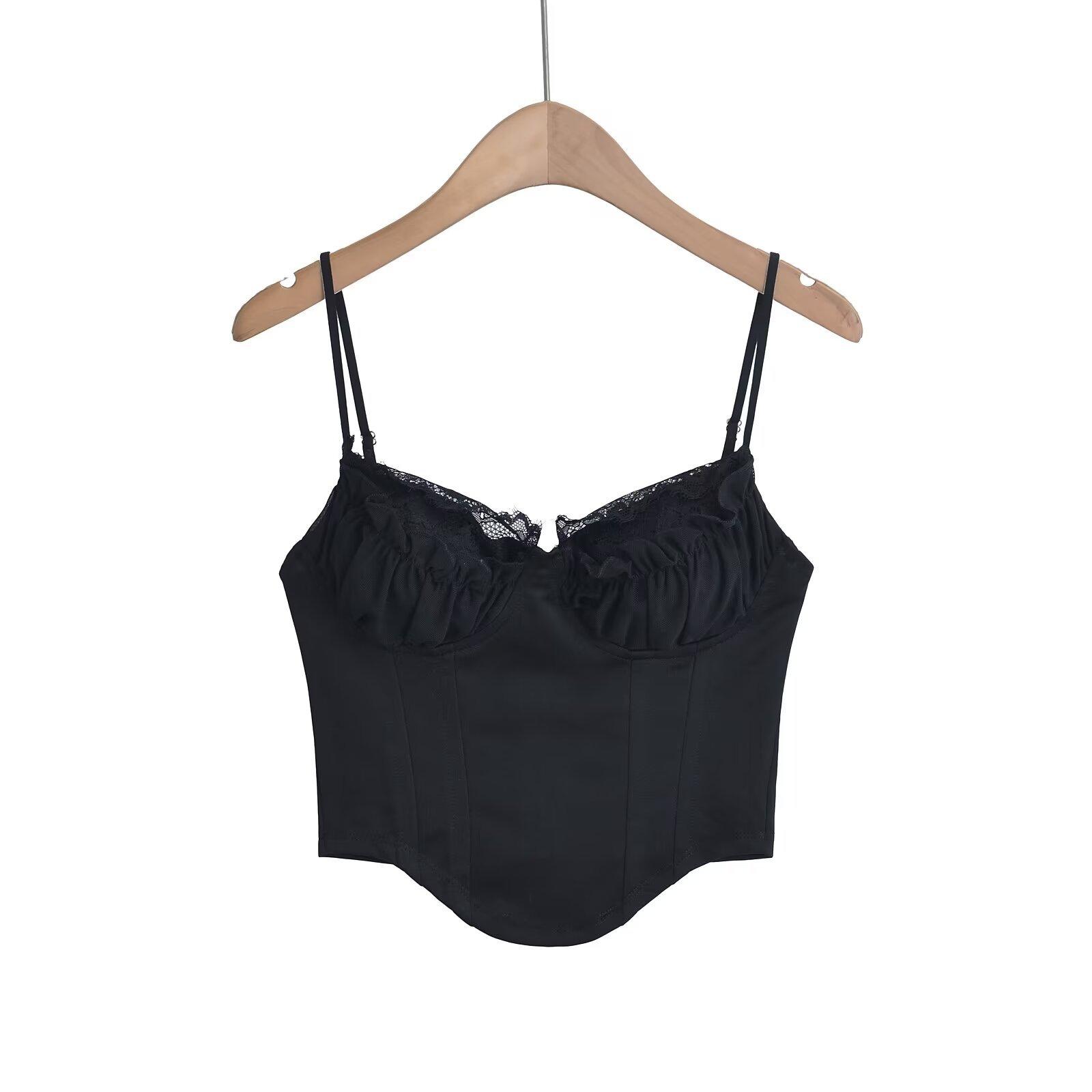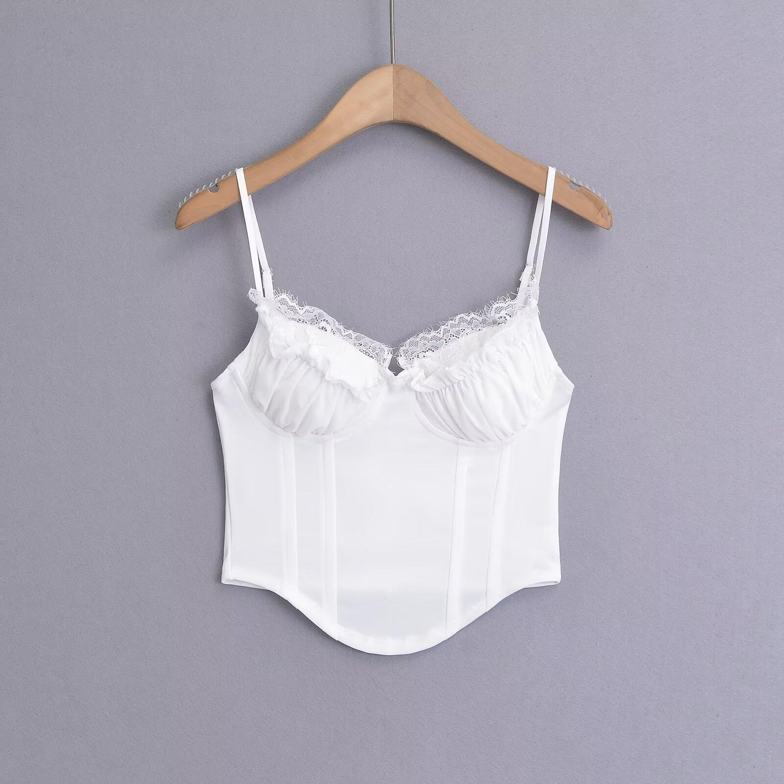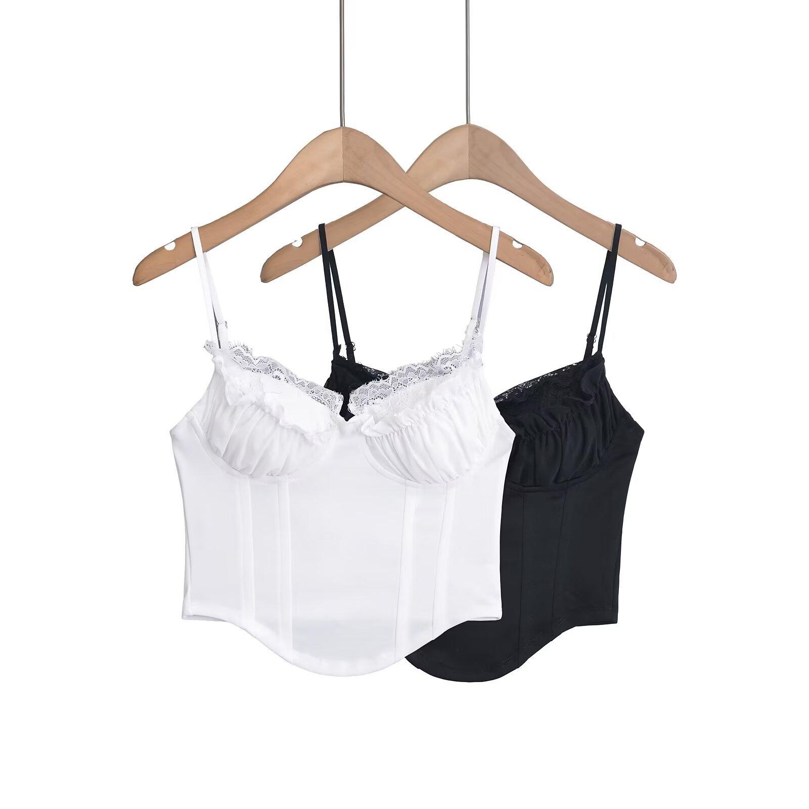 Camisola de Encaje Spice Girl Puro para Mujer Verano Ropa Exterior Ajustado Industria Pesada Costuras en el Pecho Sexy Top con Varillas
