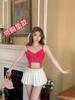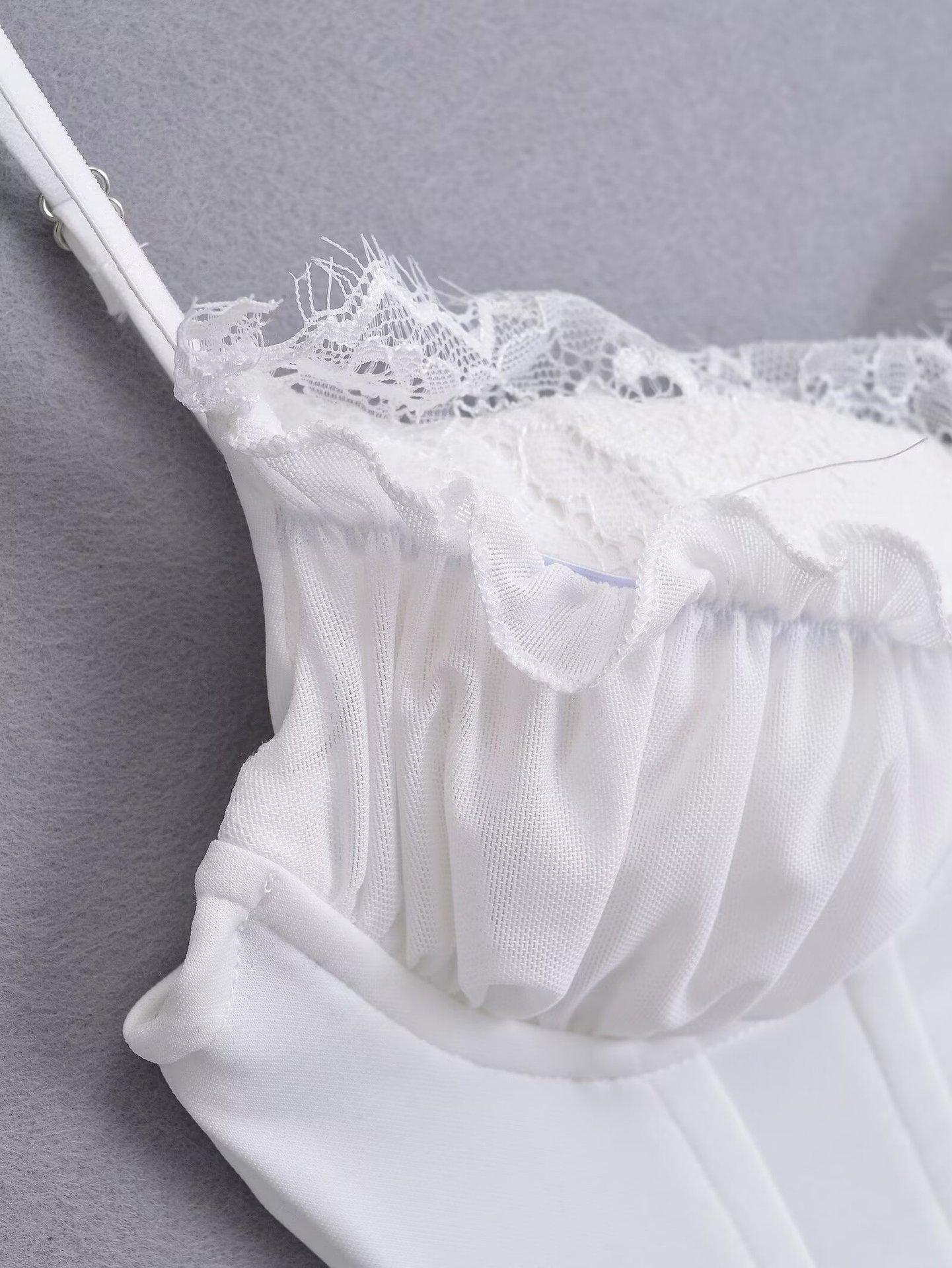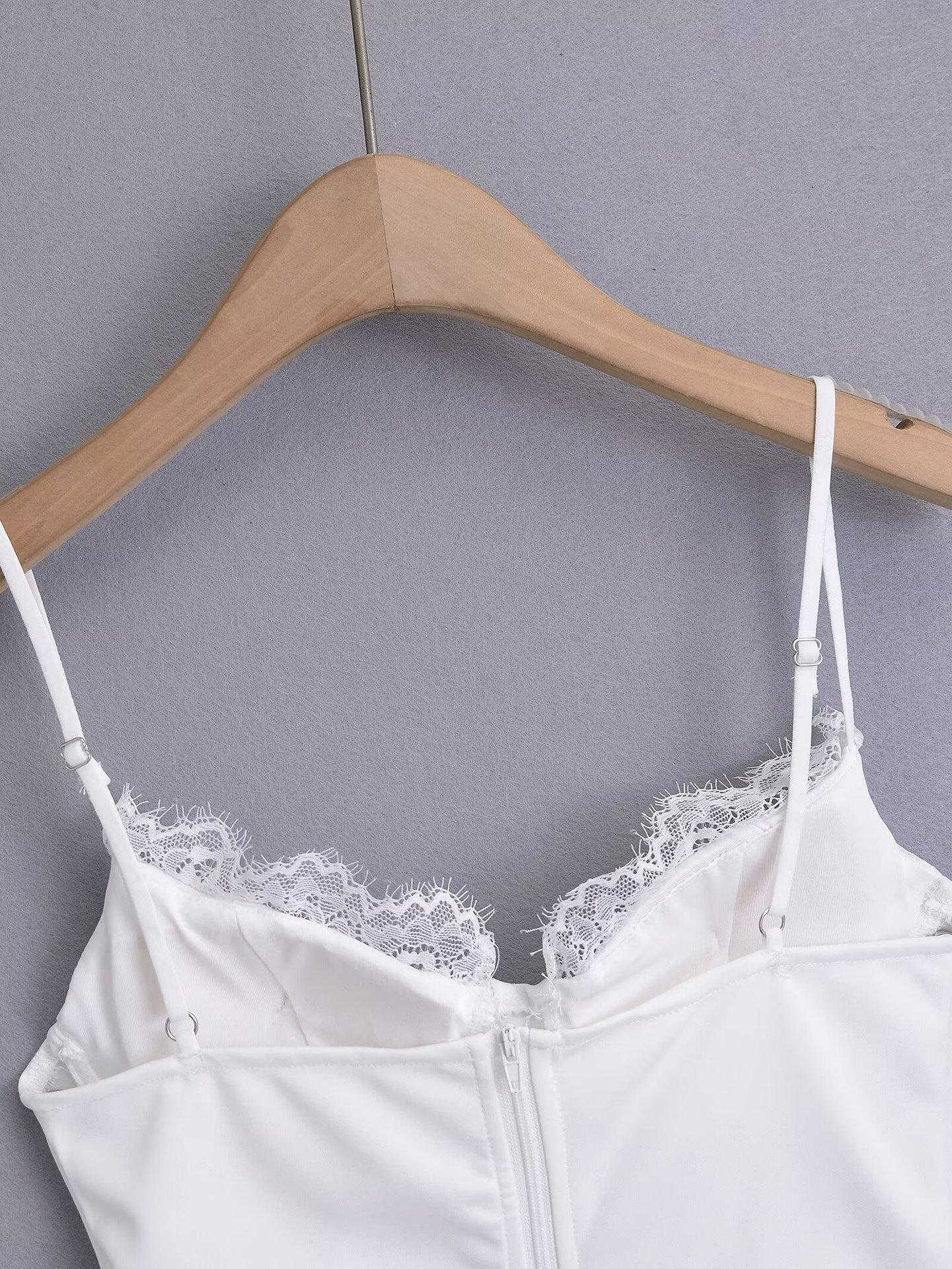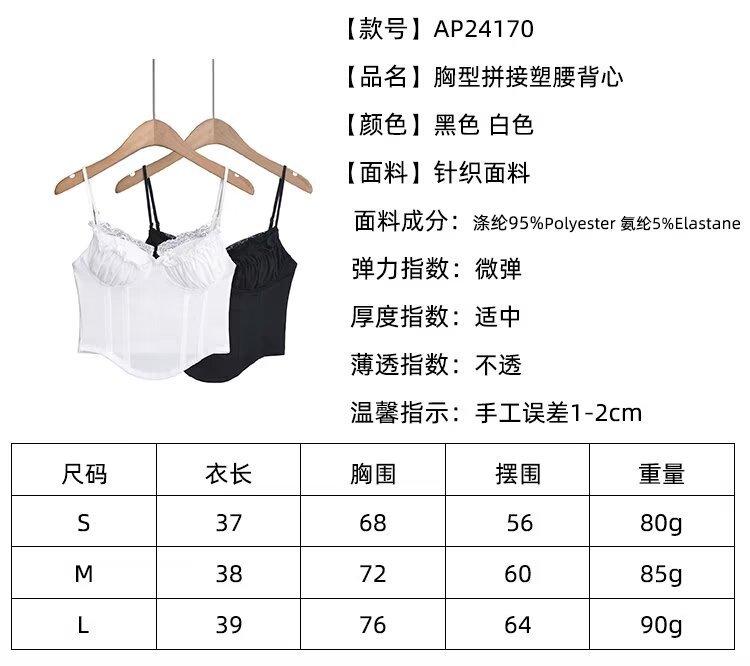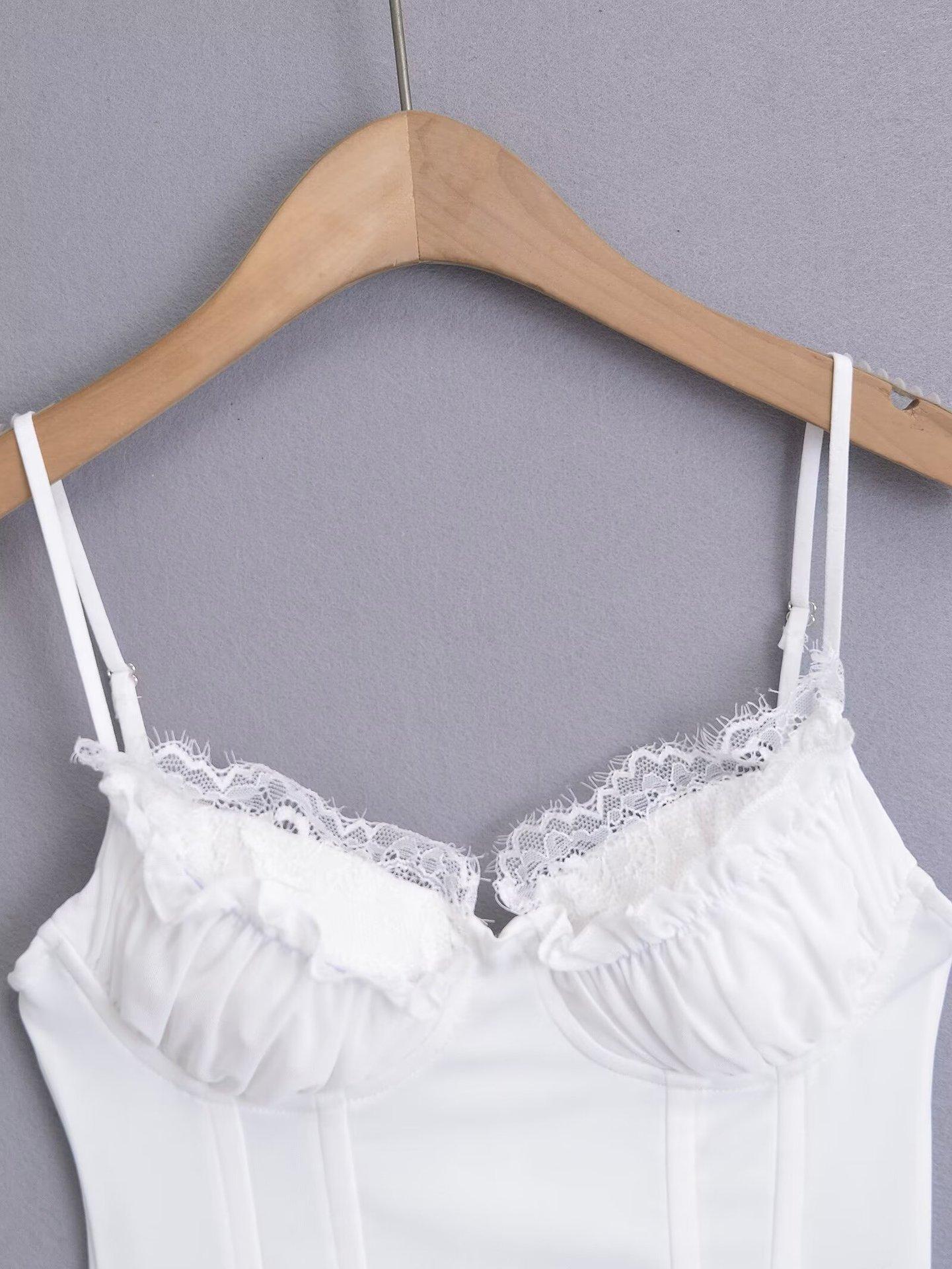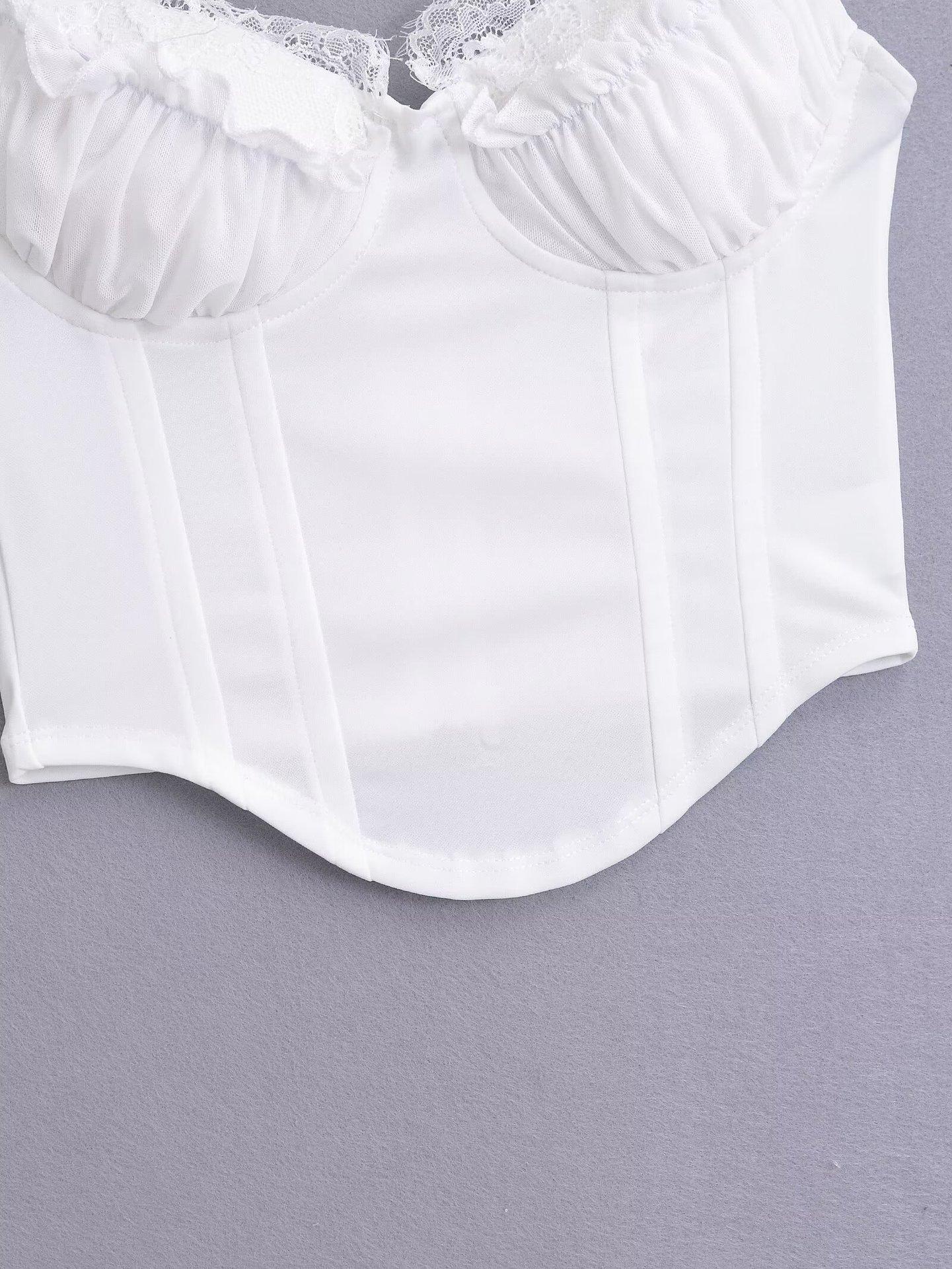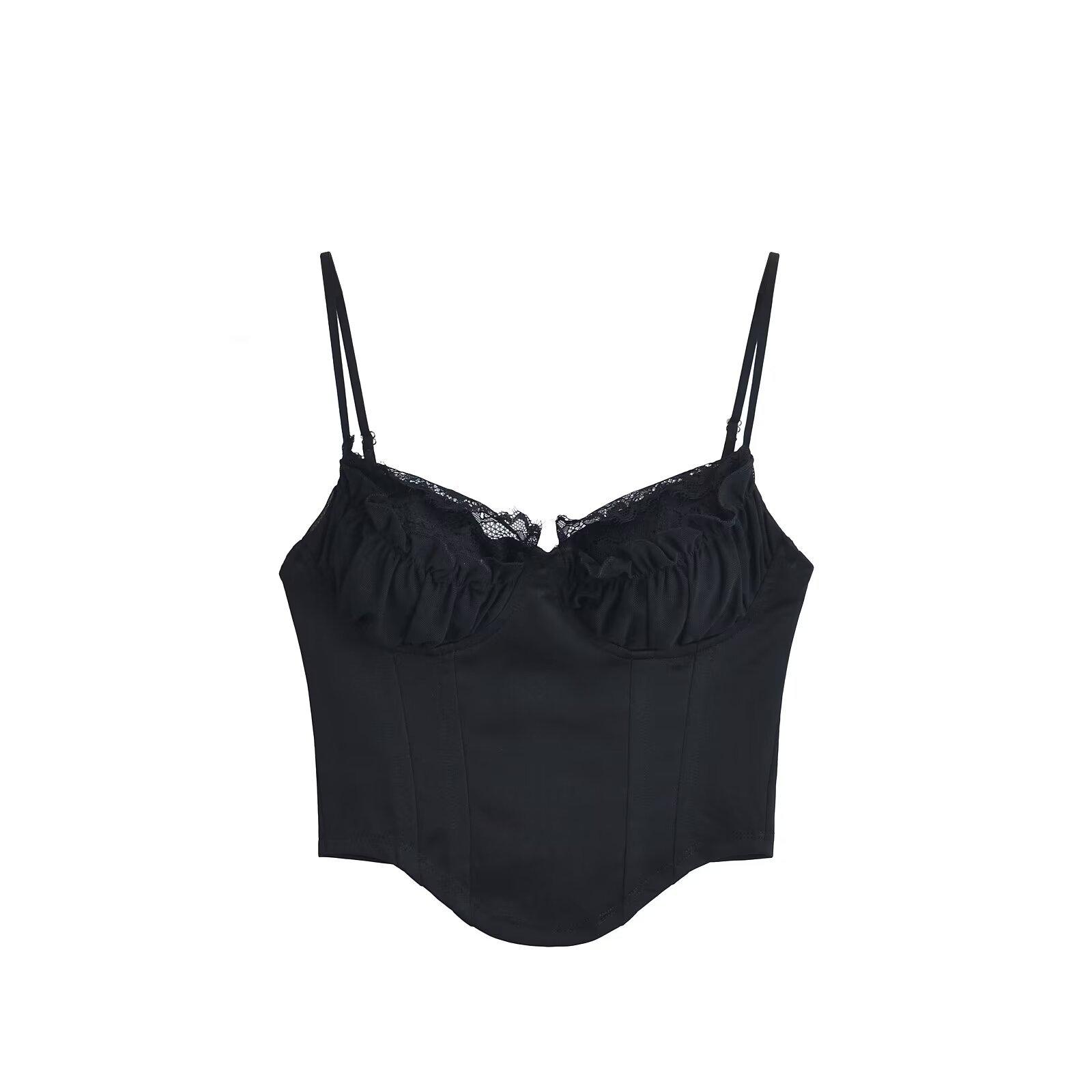 Camisola de Encaje Spice Girl Puro para Mujer Verano Ropa Exterior Ajustado Industria Pesada Costuras en el Pecho Sexy Top con Varillas