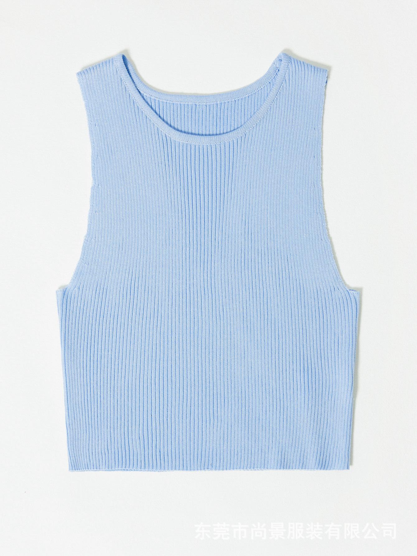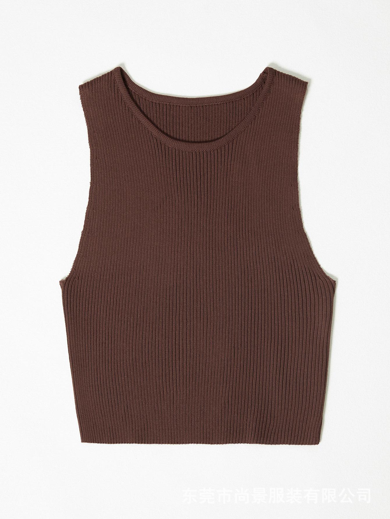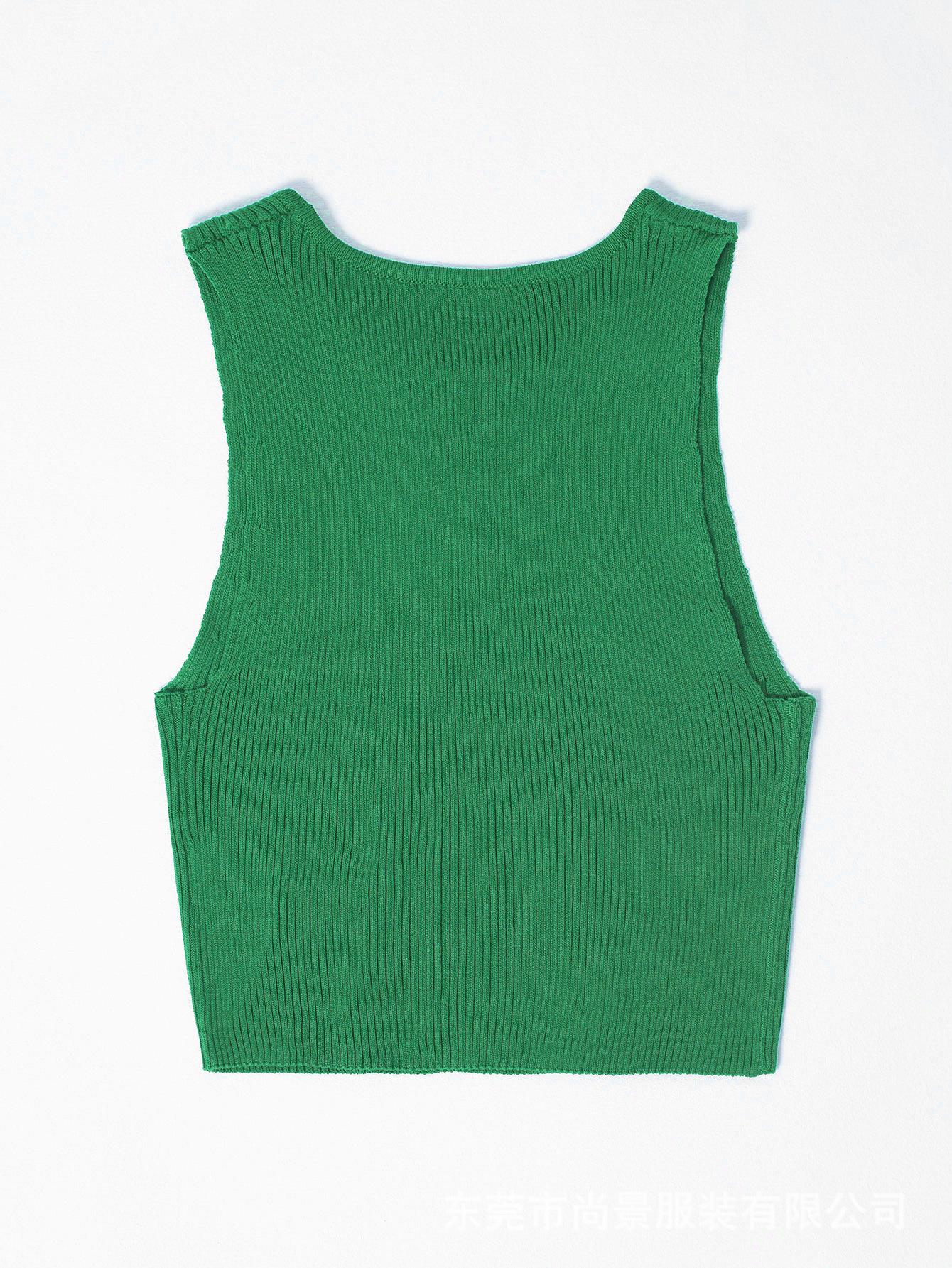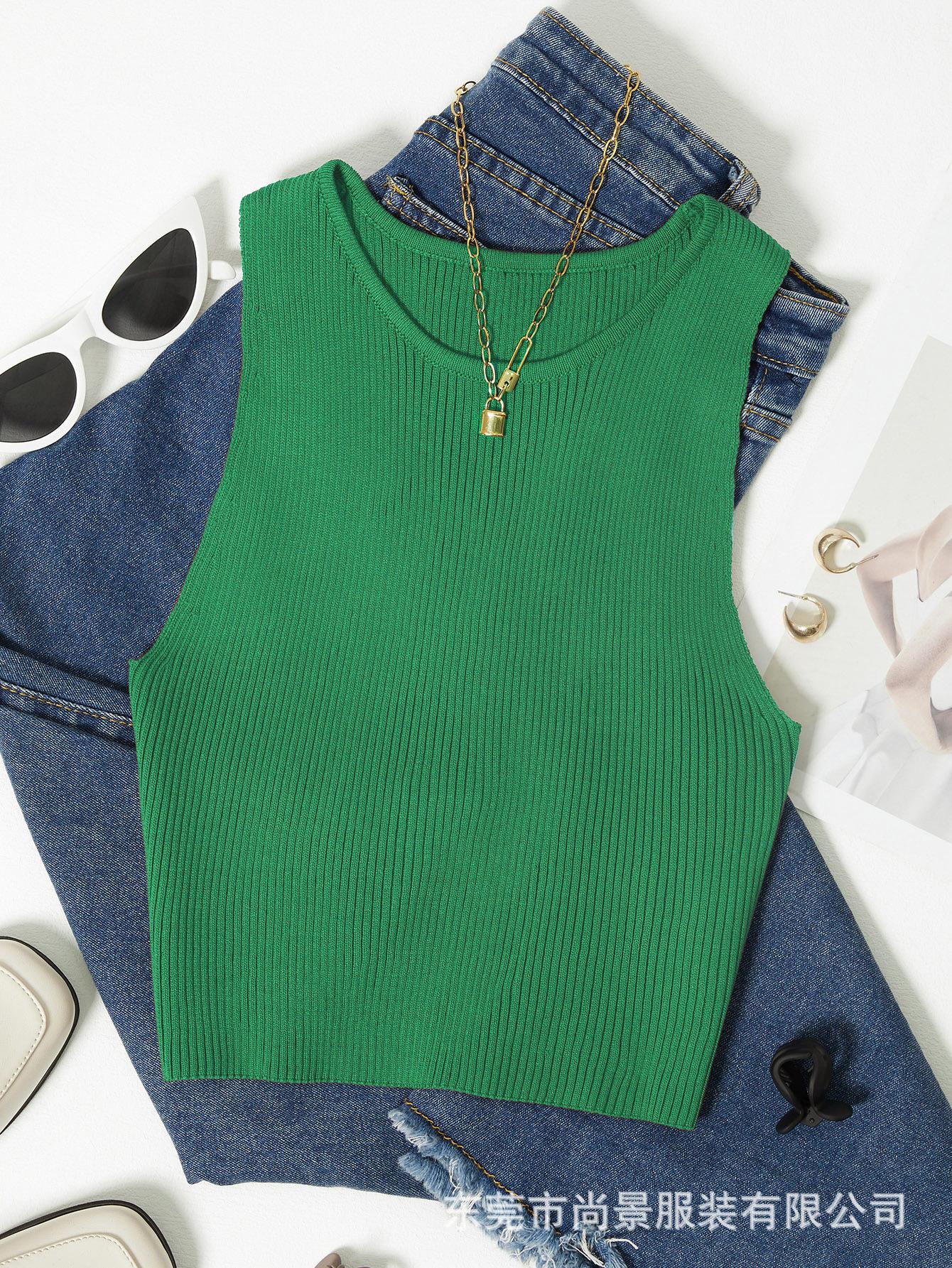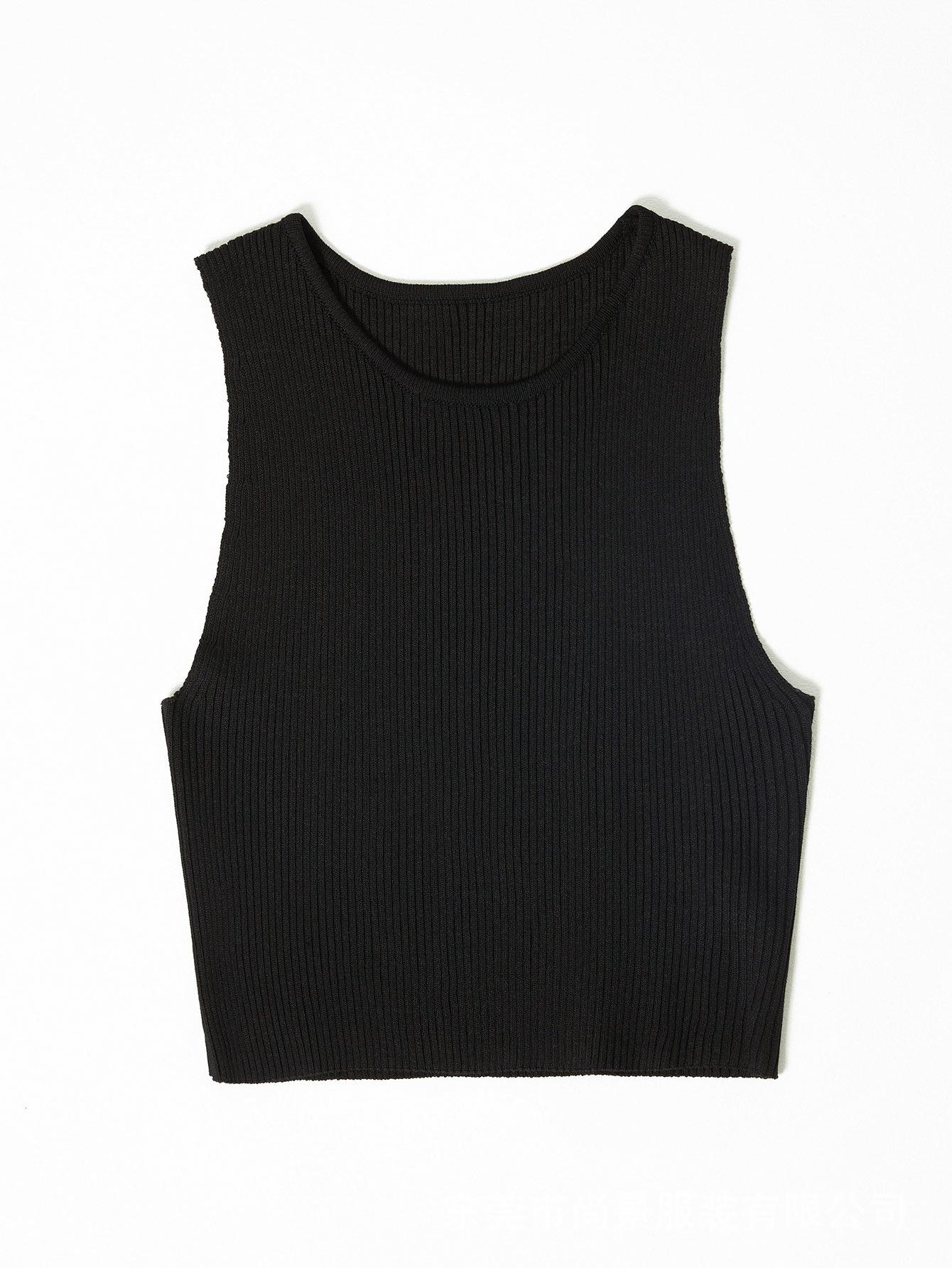 Chaleco Sexy Caliente Transfronterizo para Niña Ropa Interior para Mujer Cuello Redondo Francés Decoración Ombligo Expuesto Adelgazante Top Corto Casual para Mujer