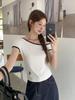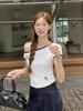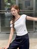 Camiseta Americana Sexy de Hombro Caído Slim Fuera del Hombro de Manga Corta para Mujer 2025 Nuevo Diseño de Verano Look Adelgazante Top Corto