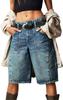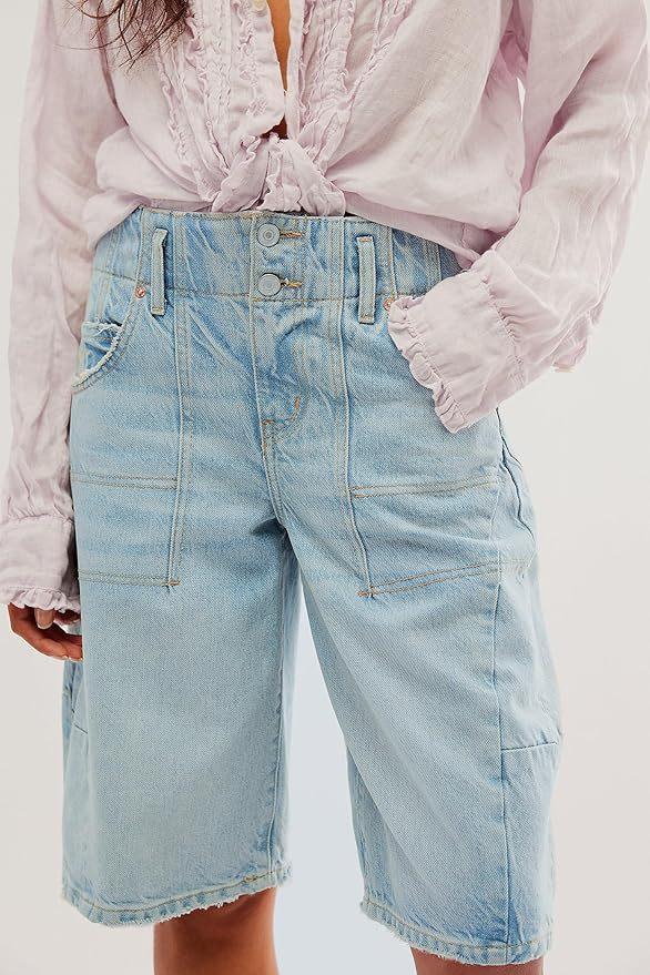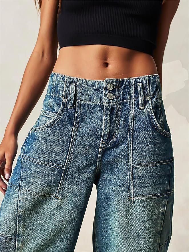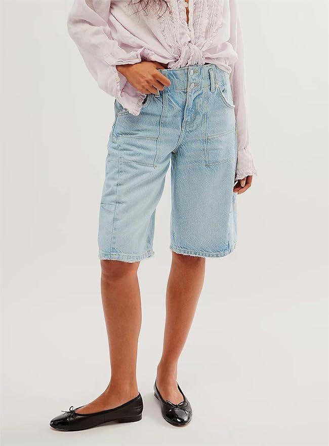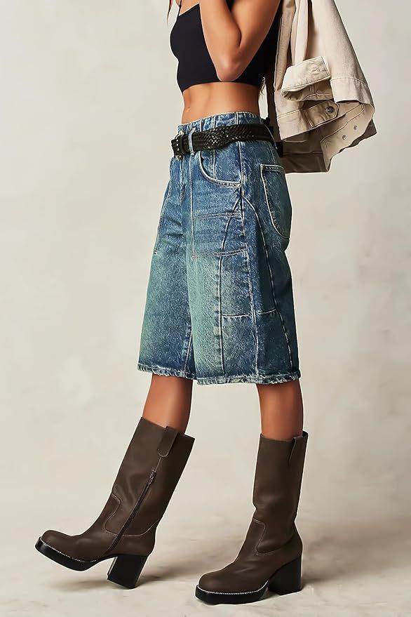 Pantalones vaqueros de cintura alta, rectos, de cinco puntos, estilo retro lavado azul, estilo europeo y americano, de Amazon, 2025