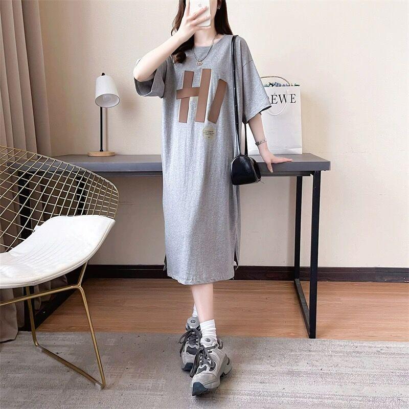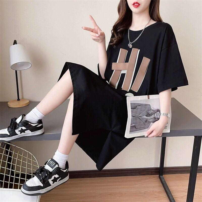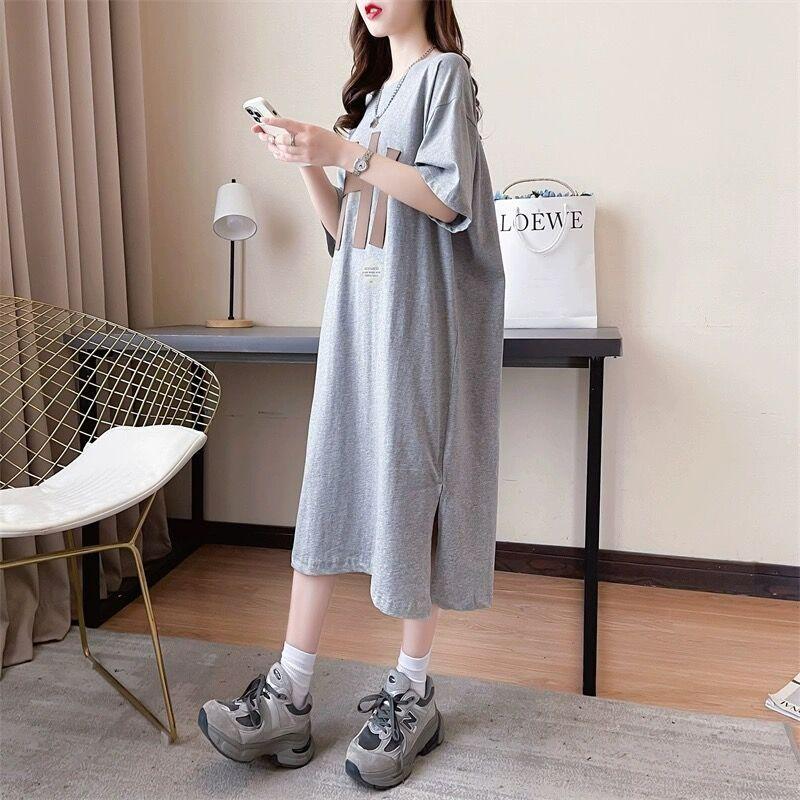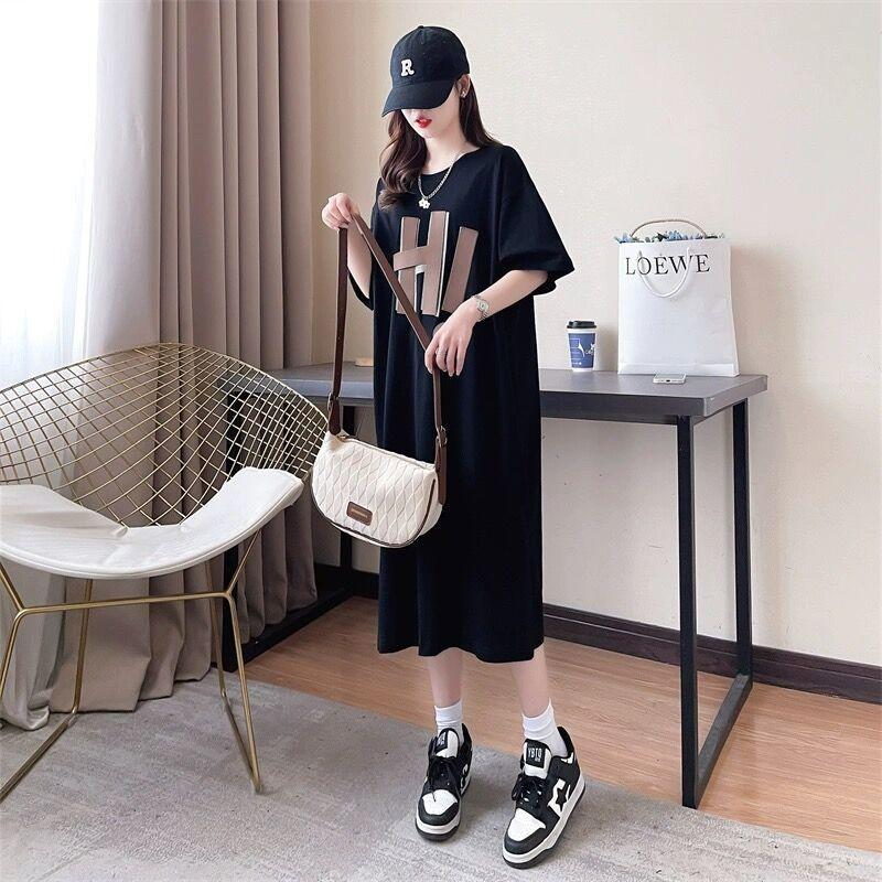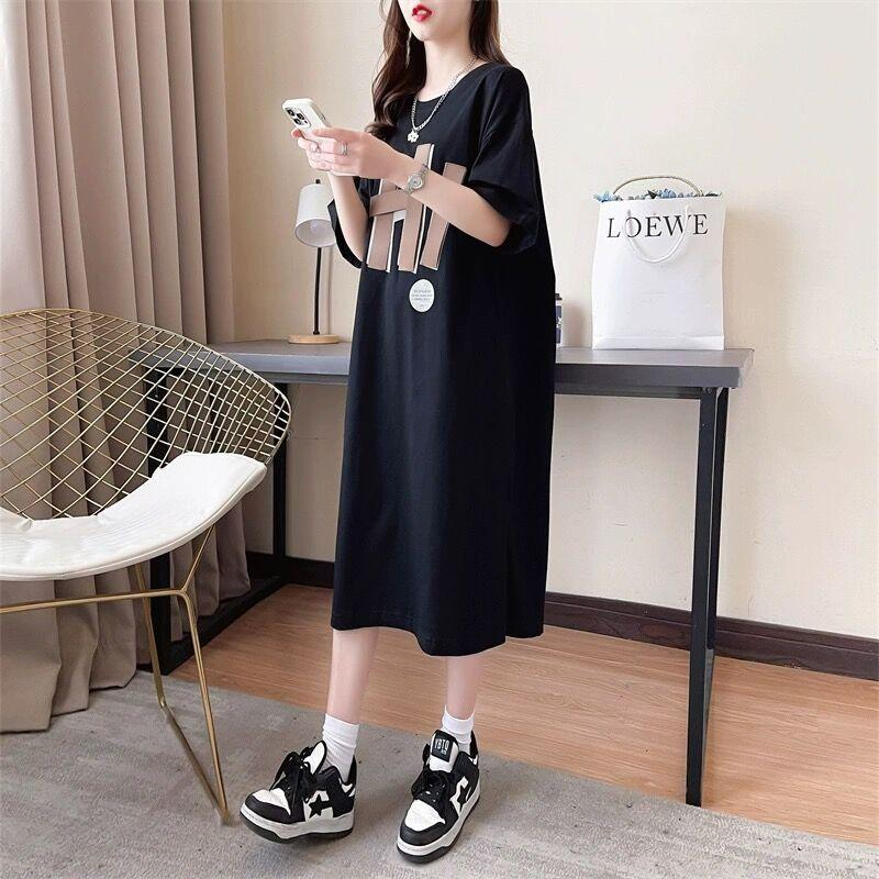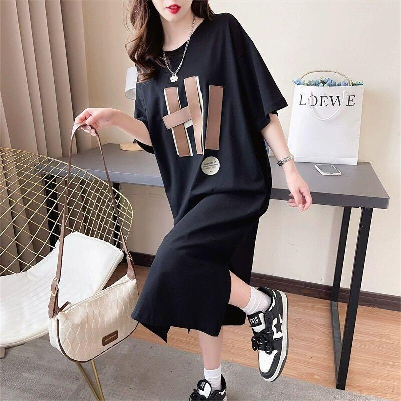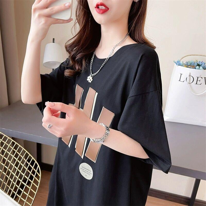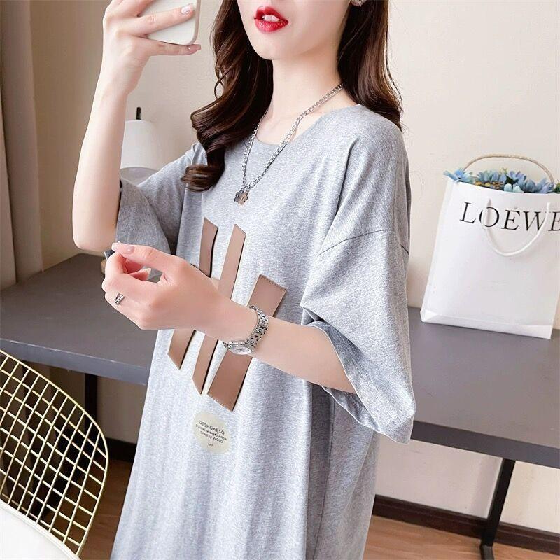 Versión coreana de camiseta holgada larga hasta la rodilla de manga corta para mujer 2025 nuevo verano popular en línea ins súper fuego vestido top
