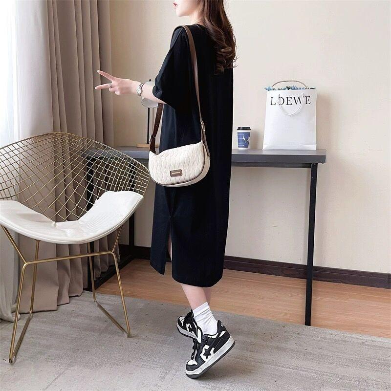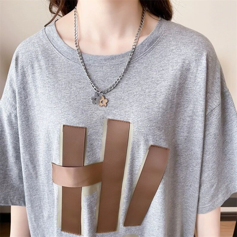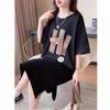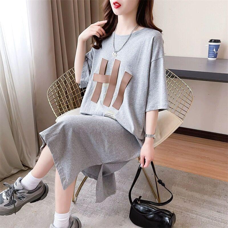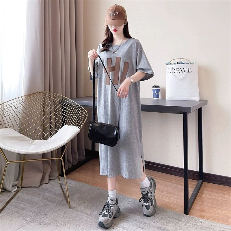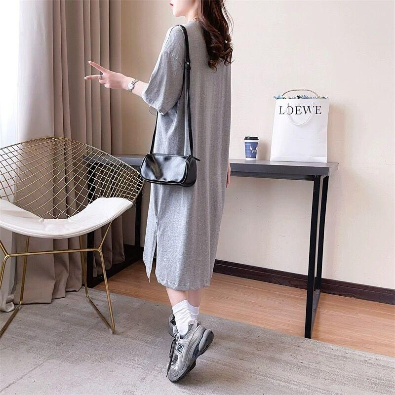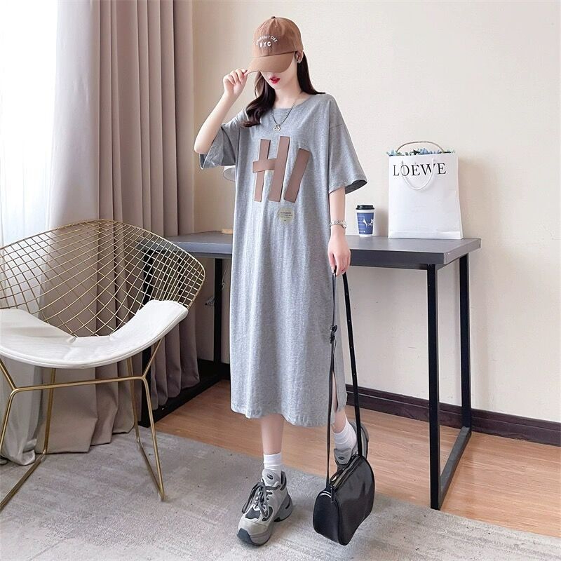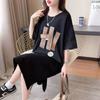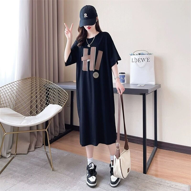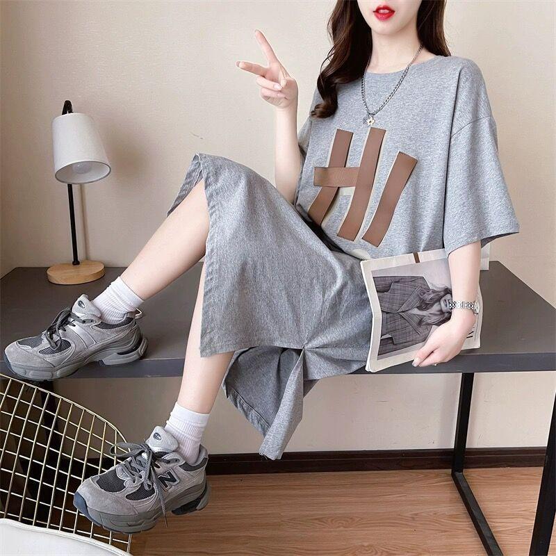 Versión coreana de camiseta holgada larga hasta la rodilla de manga corta para mujer 2025 nuevo verano popular en línea ins súper fuego vestido top