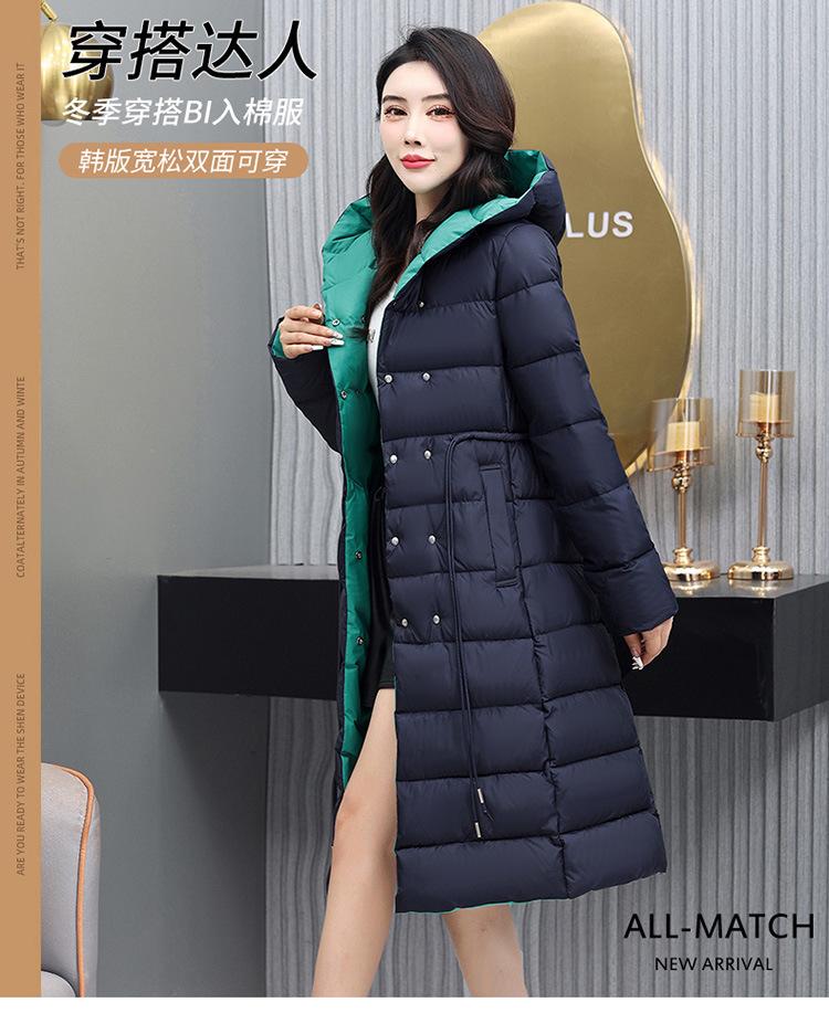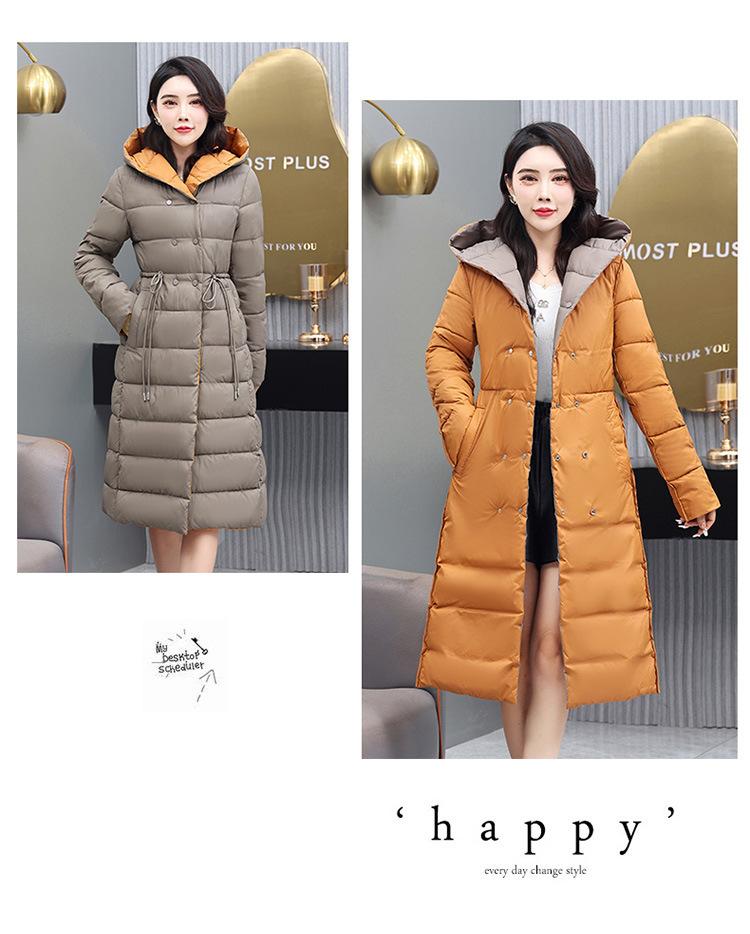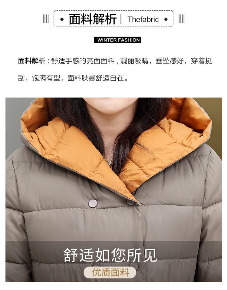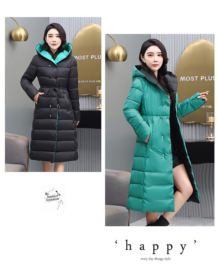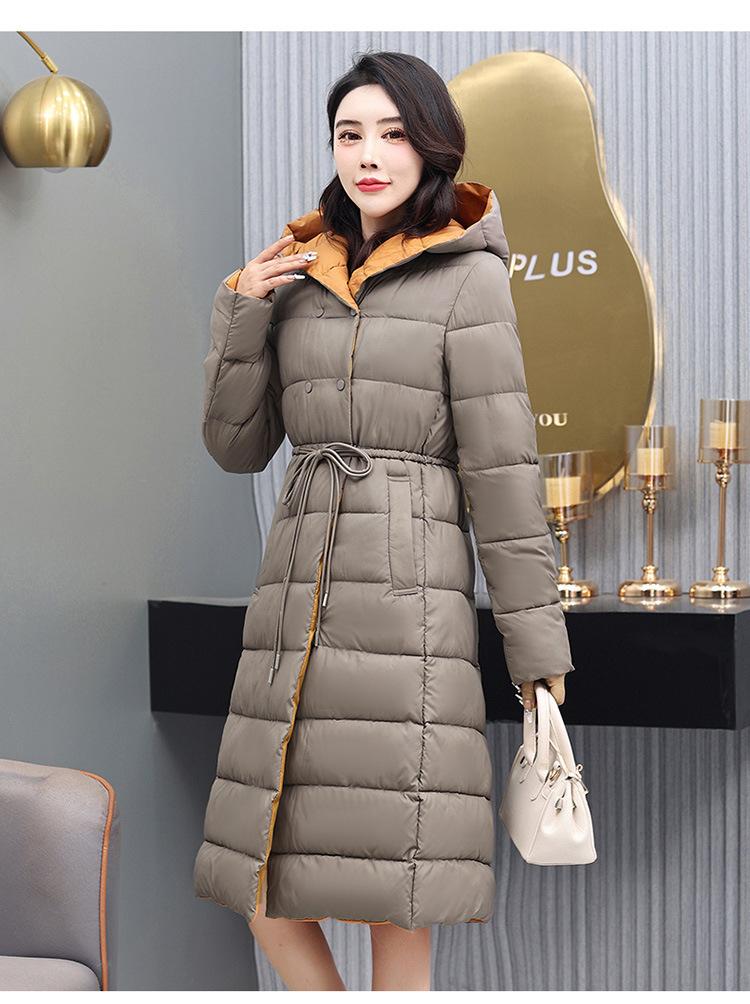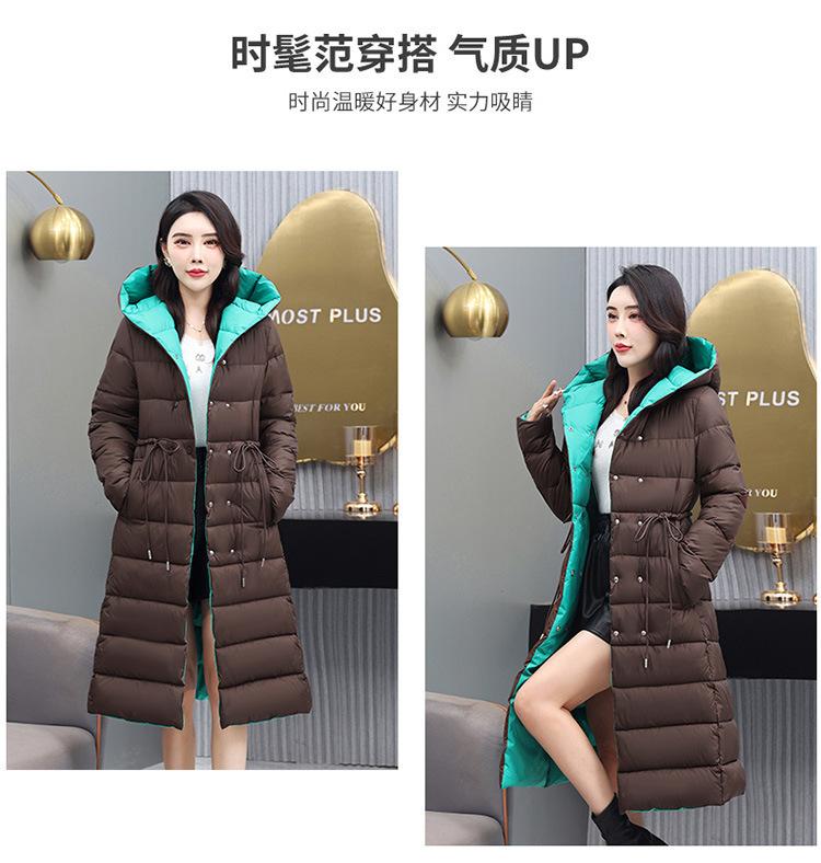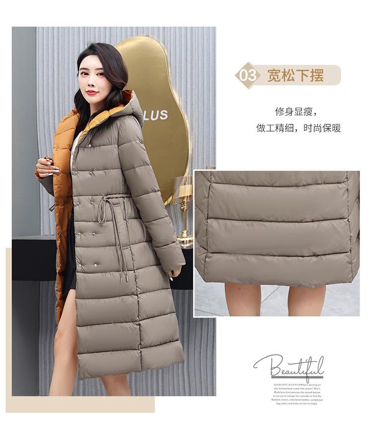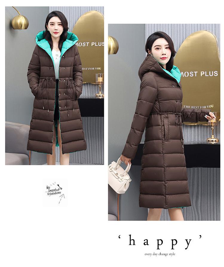 Chaqueta Larga de Algodón Reversible con Capucha para Mujer 2023 Invierno Nueva Ajustada a la Moda Chaqueta de Algodón Acolchada