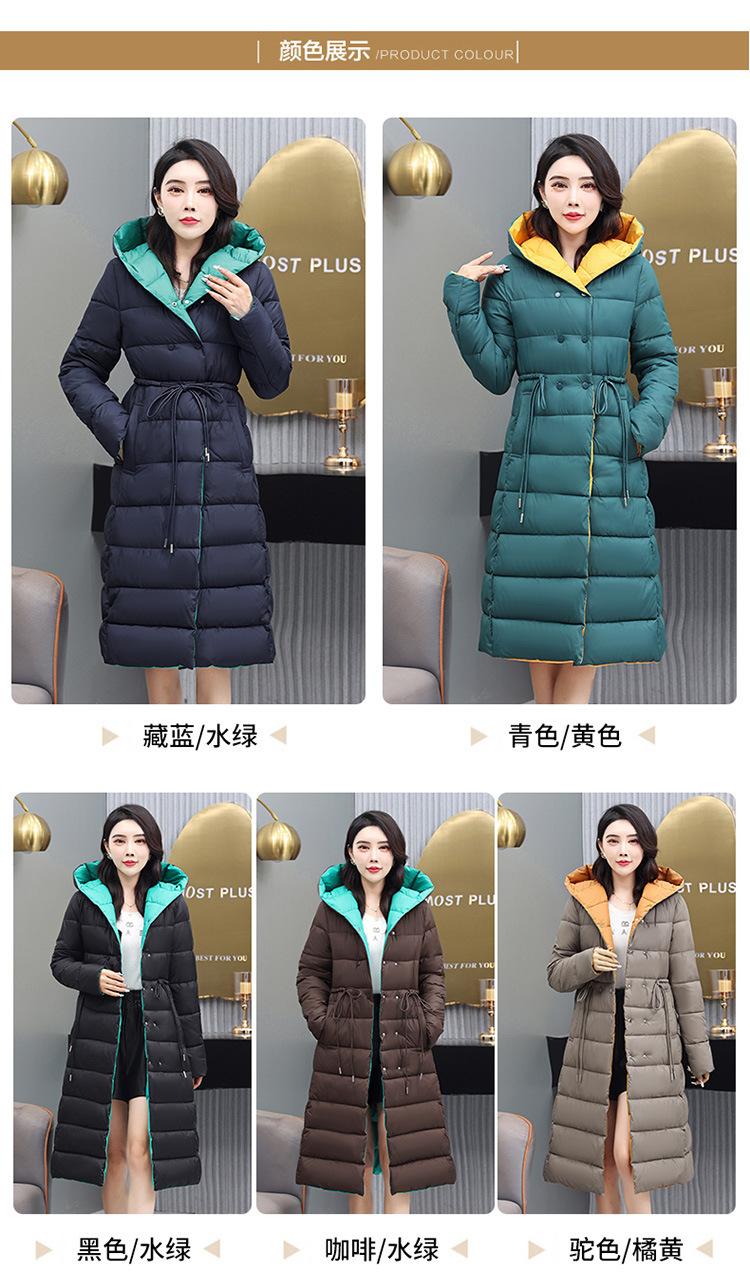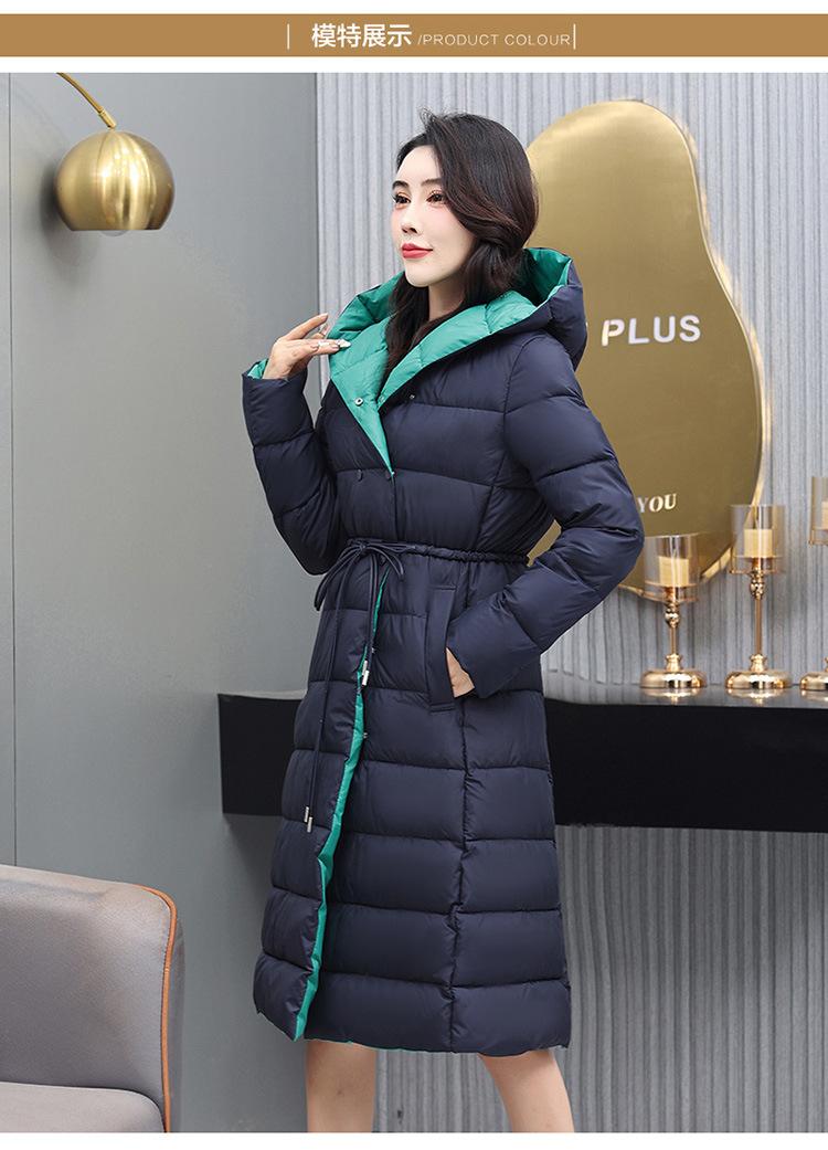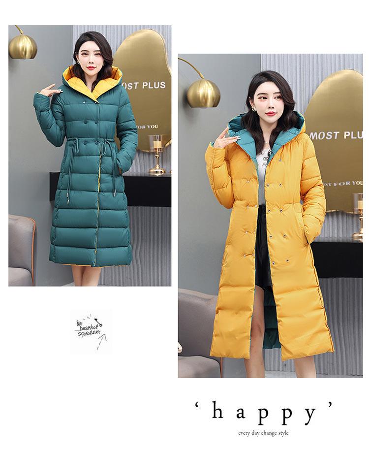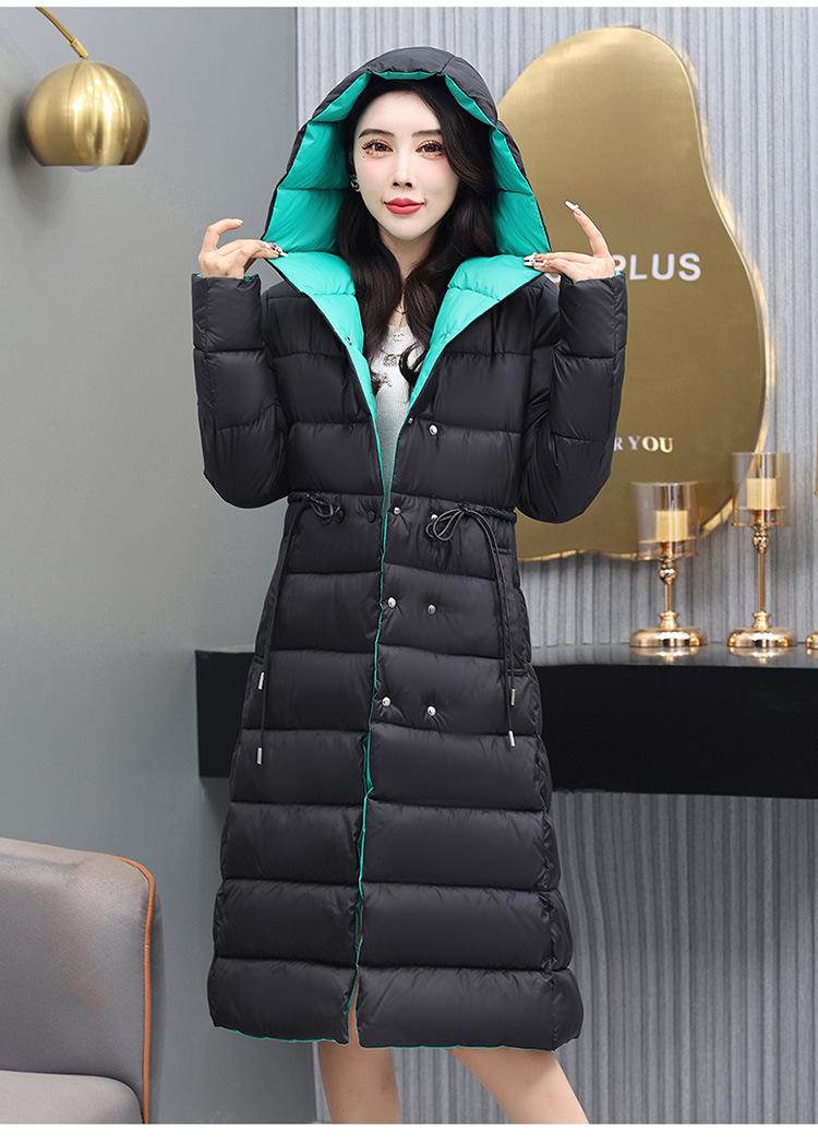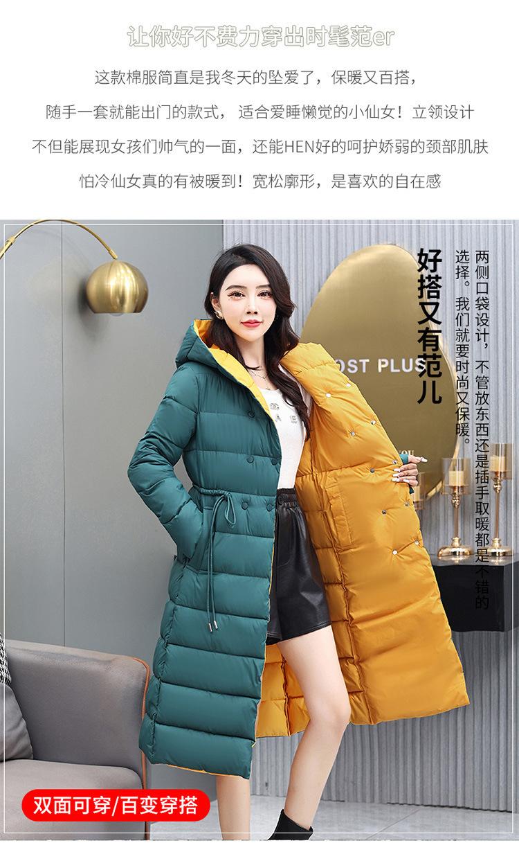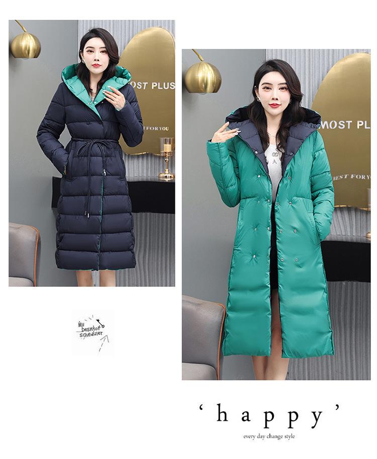 Chaqueta Larga de Algodón Reversible con Capucha para Mujer 2023 Invierno Nueva Ajustada a la Moda Chaqueta de Algodón Acolchada