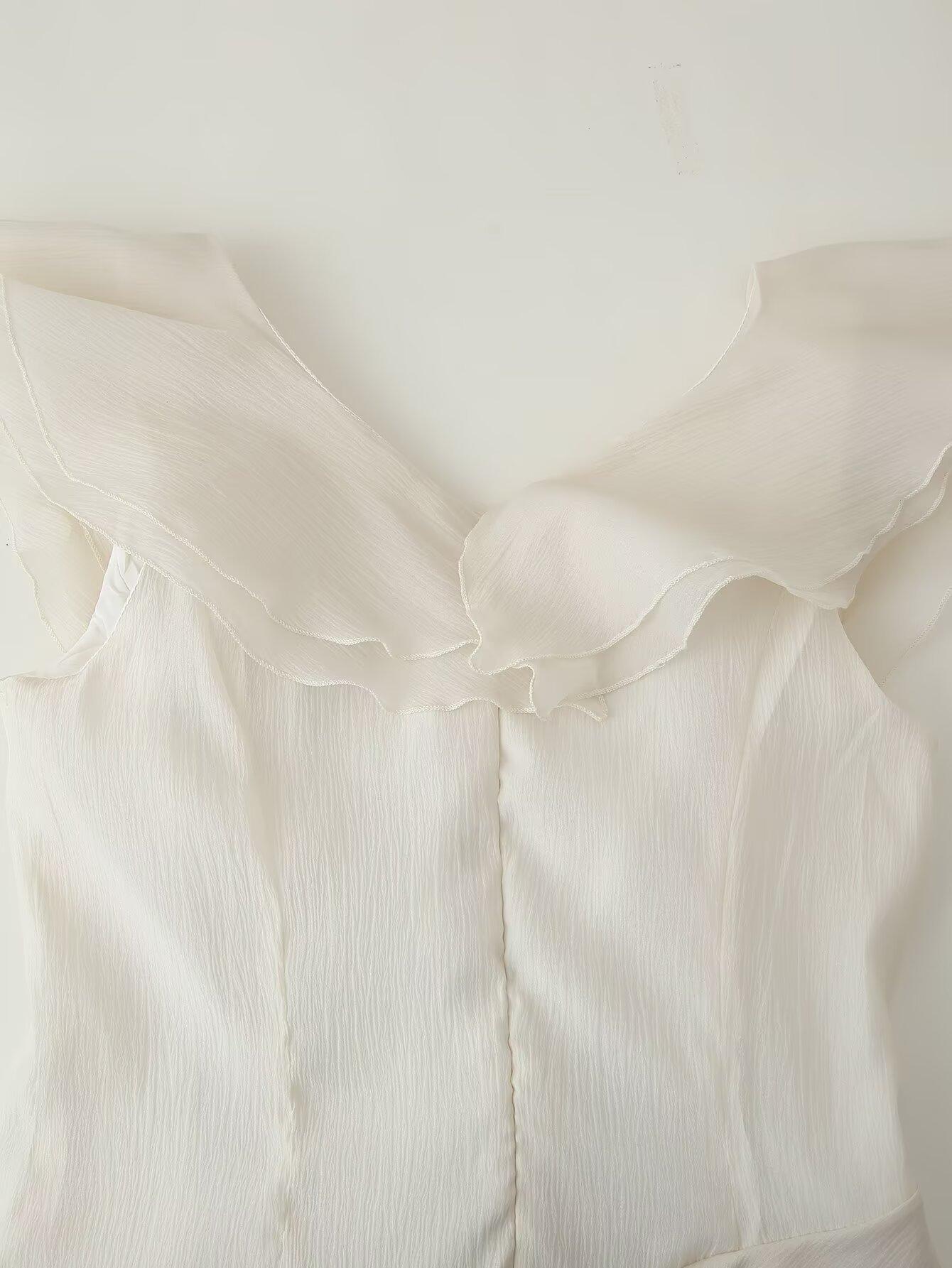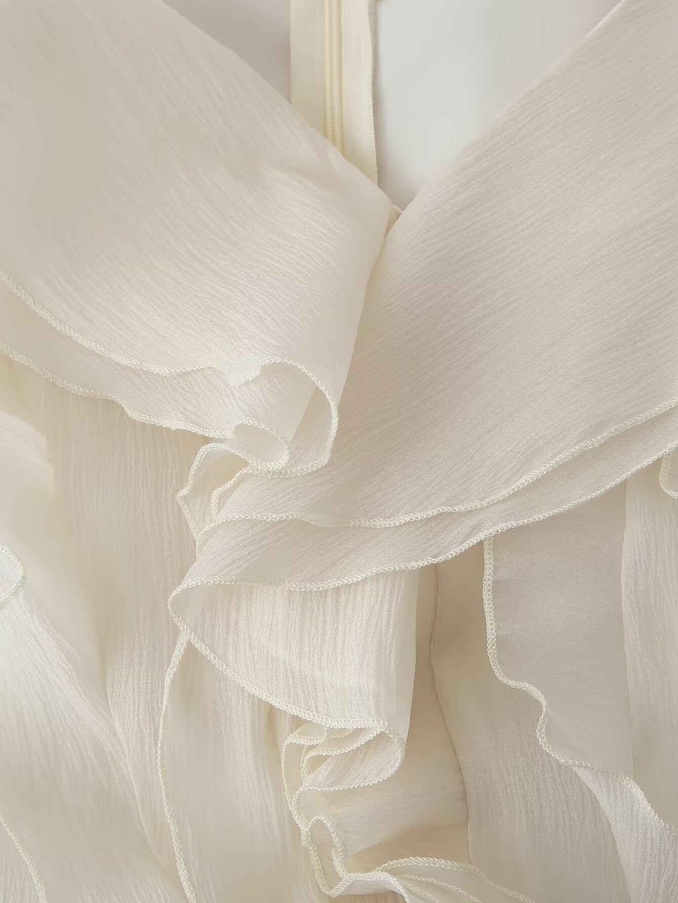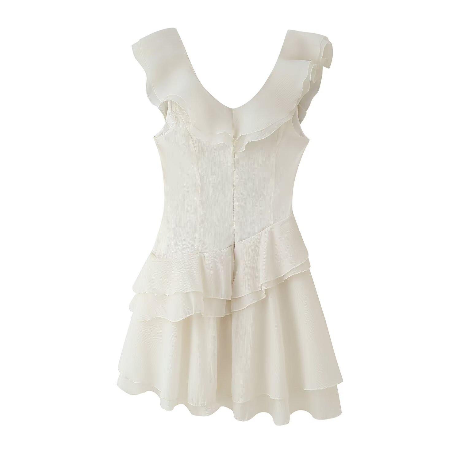 Ropa de Mujer de Comercio Exterior Otoño 2025 Estilo Europeo y Americano Cuello en V Sin Mangas Adorno de Volantes Ajustado a la Cintura Vestido Corto Mujer D16968F
