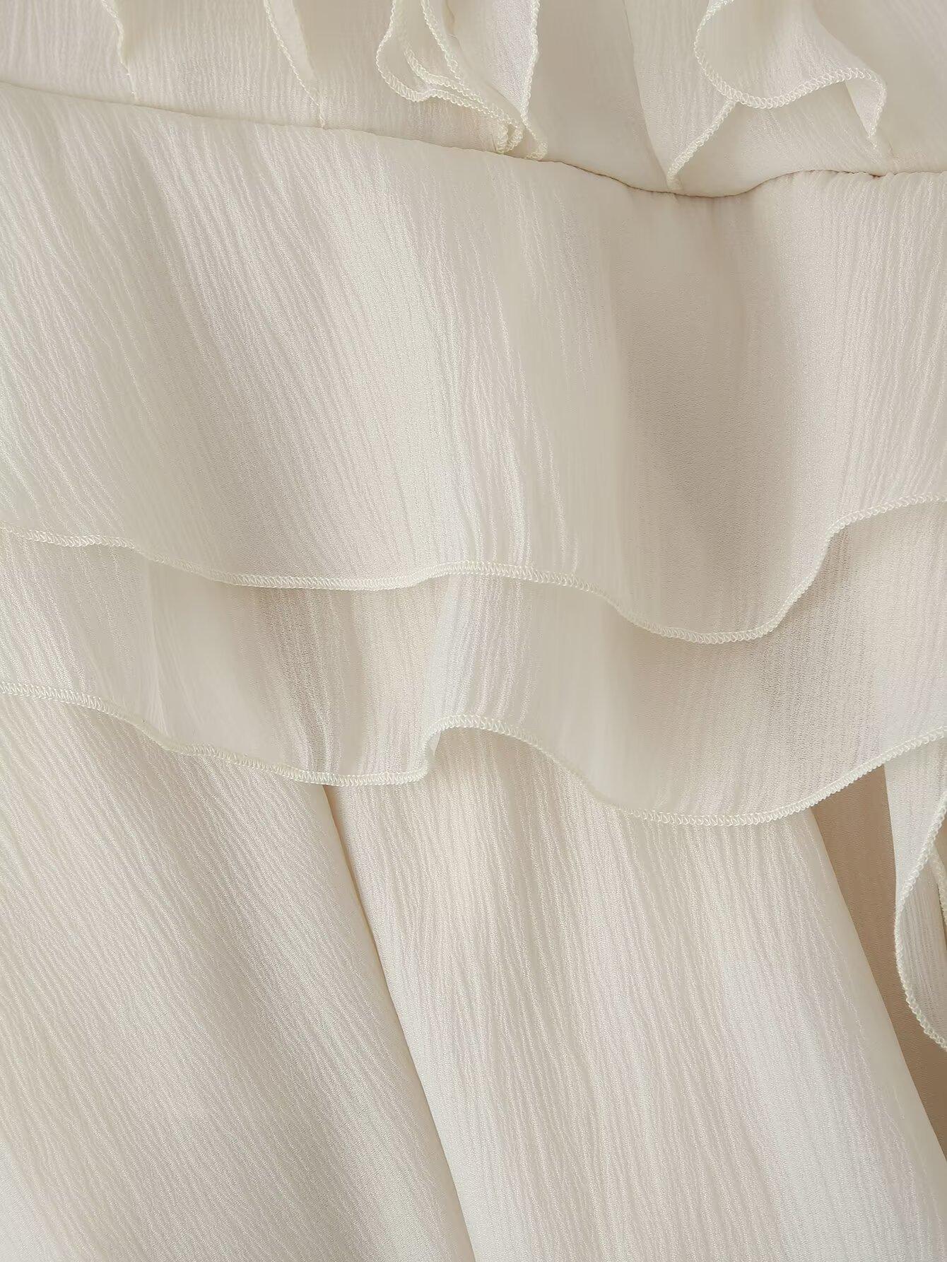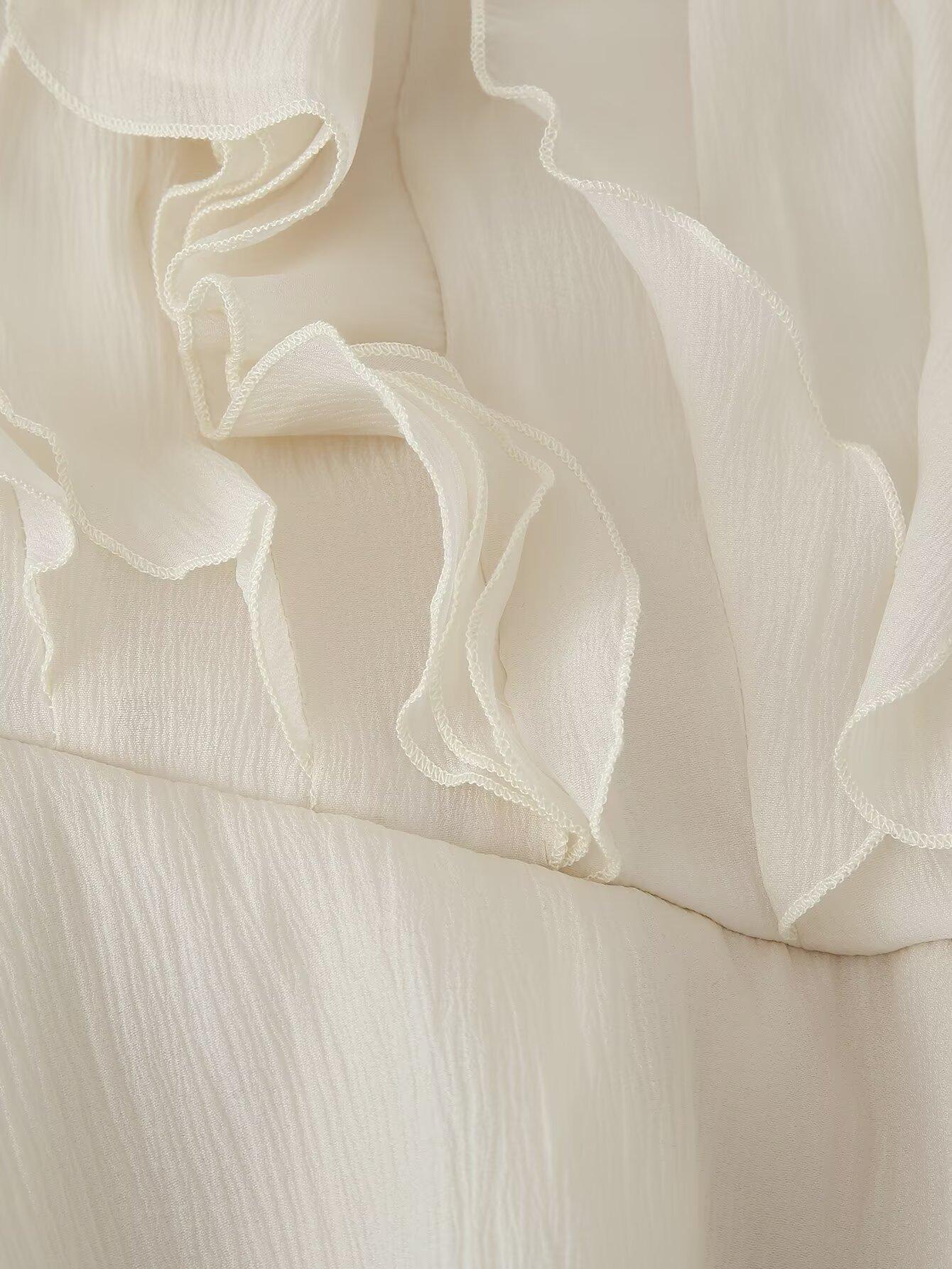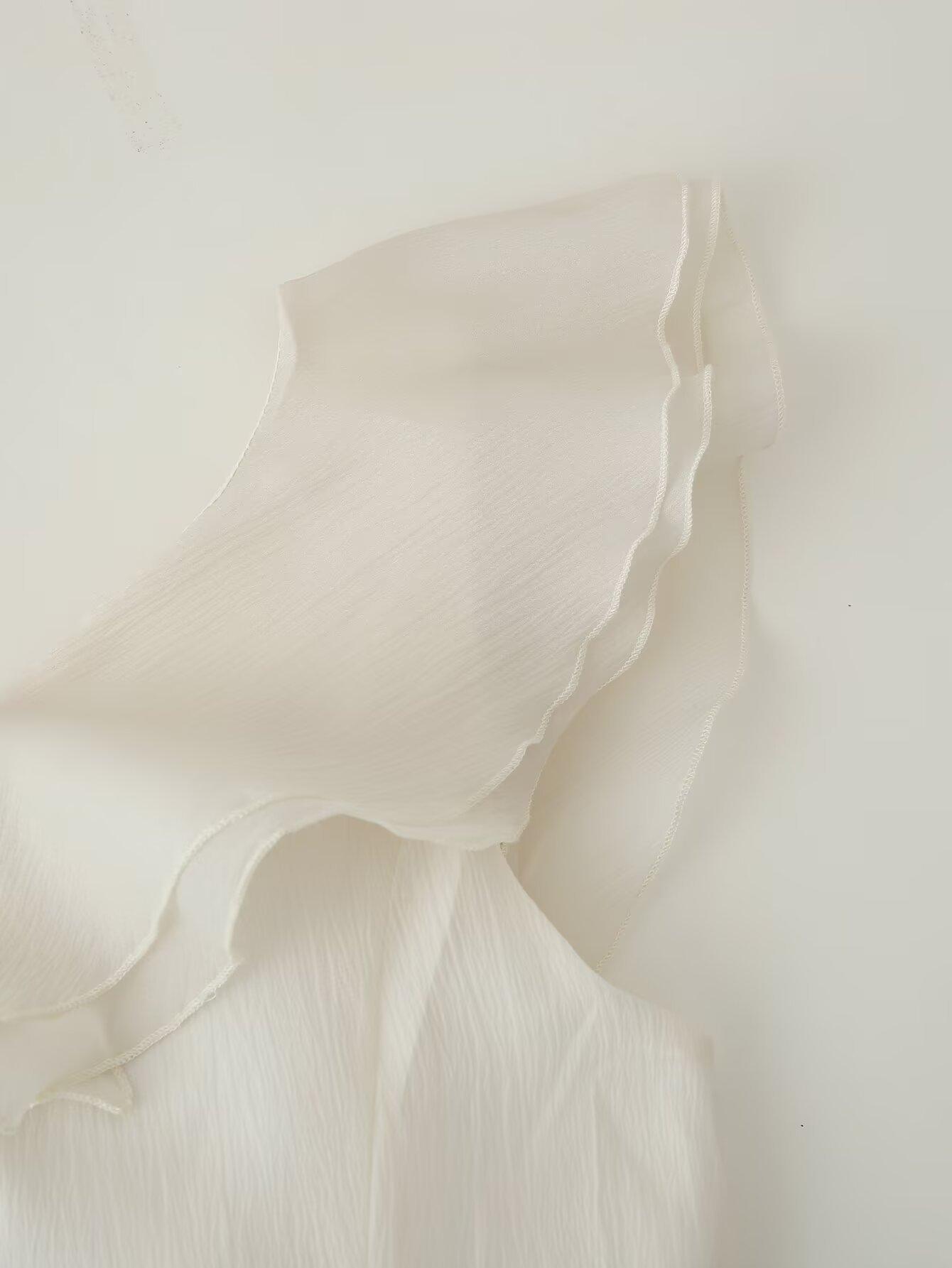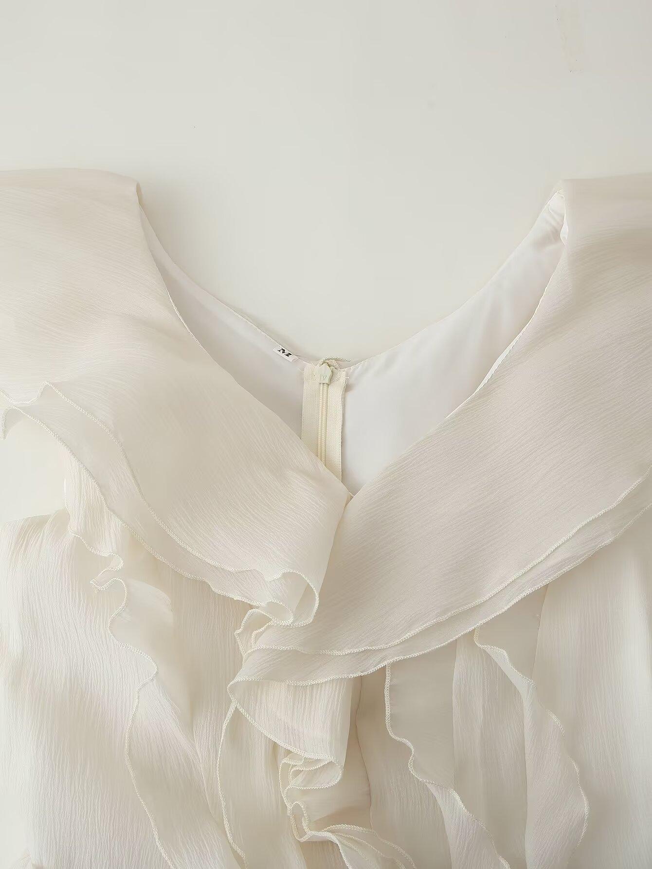 Ropa de Mujer de Comercio Exterior Otoño 2025 Estilo Europeo y Americano Cuello en V Sin Mangas Adorno de Volantes Ajustado a la Cintura Vestido Corto Mujer D16968F