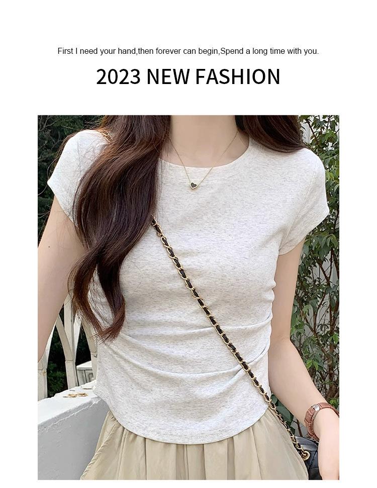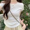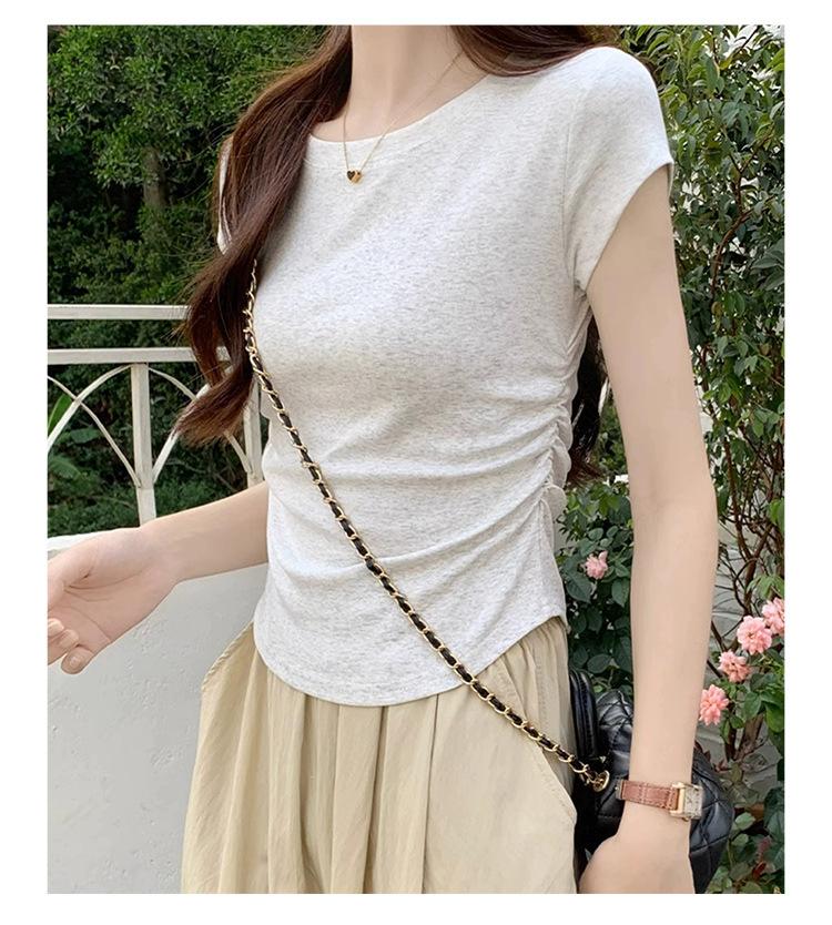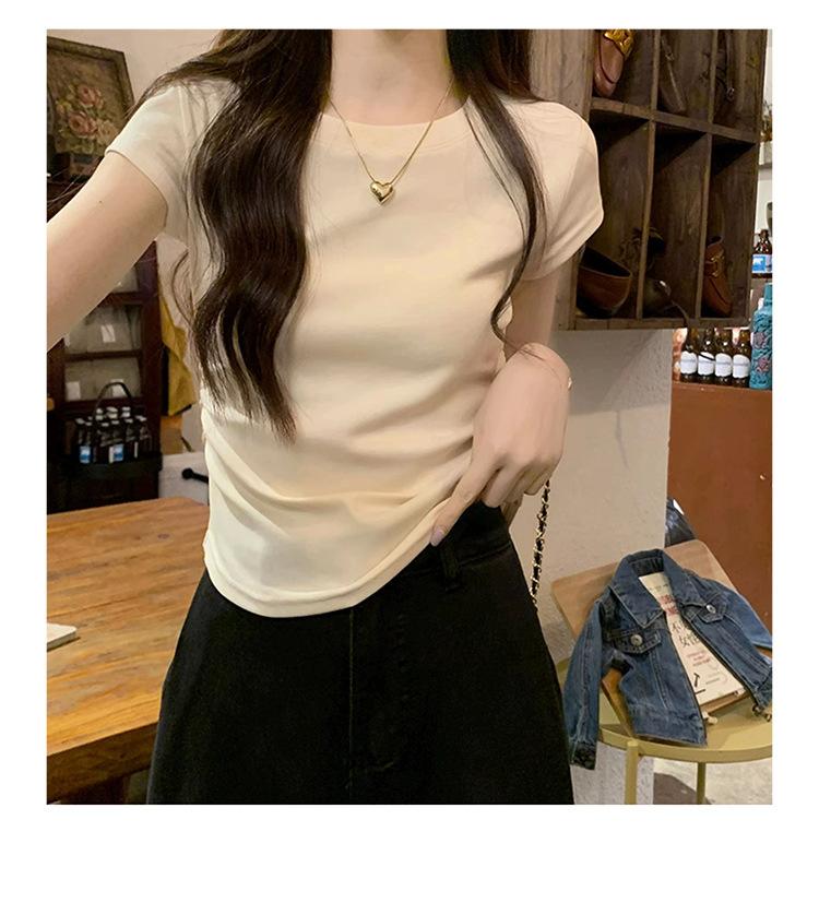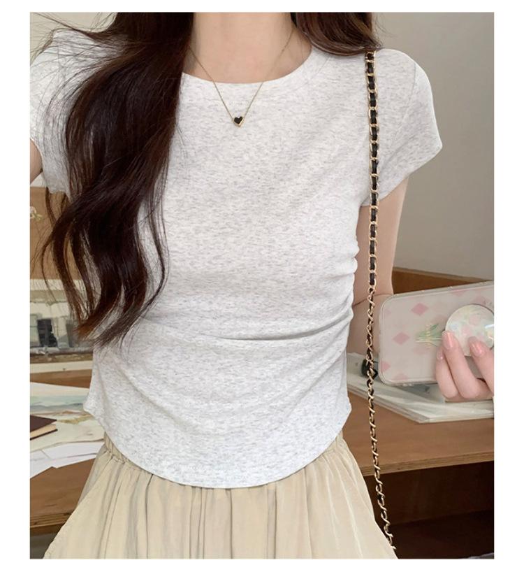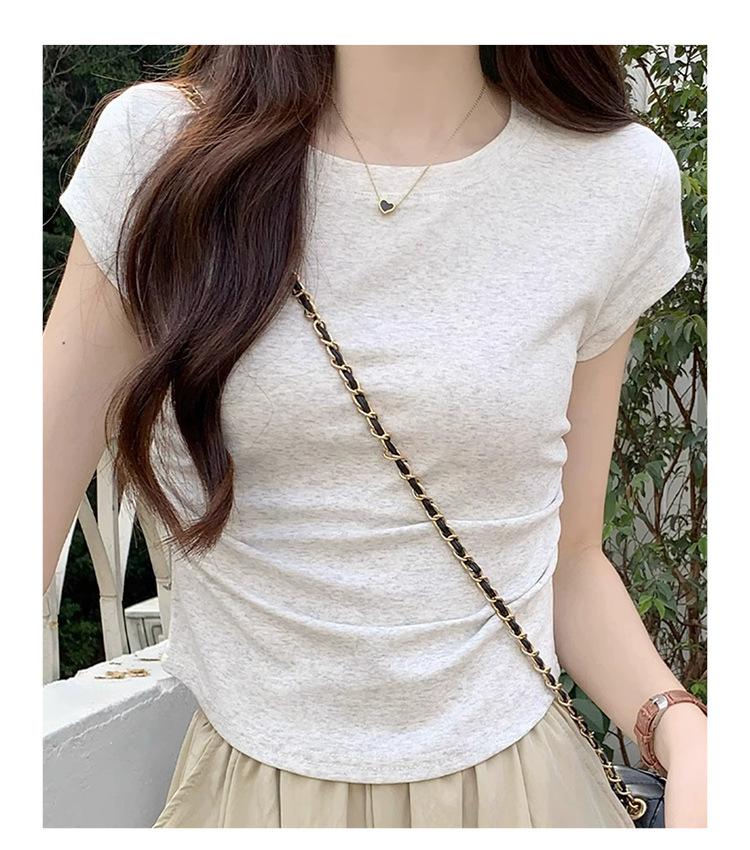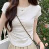Camiseta Blanca Mujer Cuello Redondo 2025 Verano Nuevo Cintura Alta Slim Sexy Algodón Puro Cordón Versátil Ins Súper Caliente Manga Corta