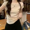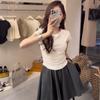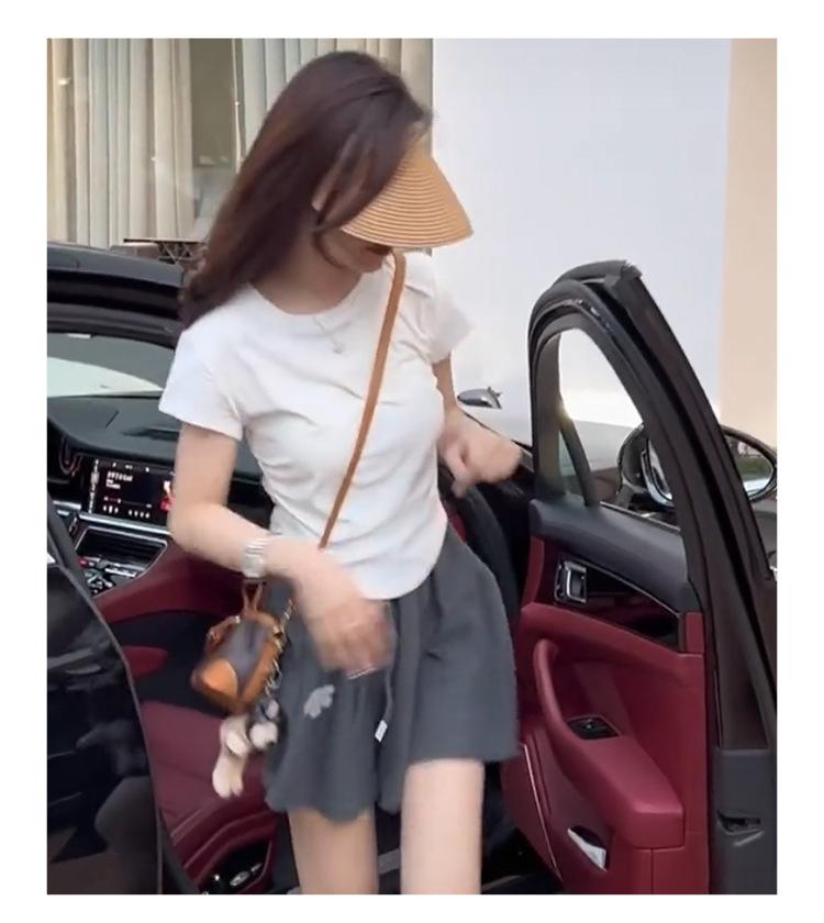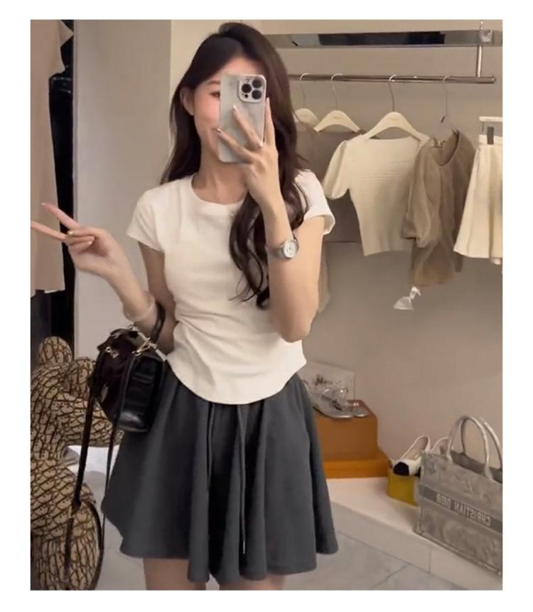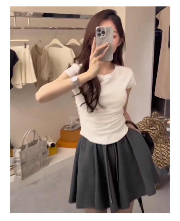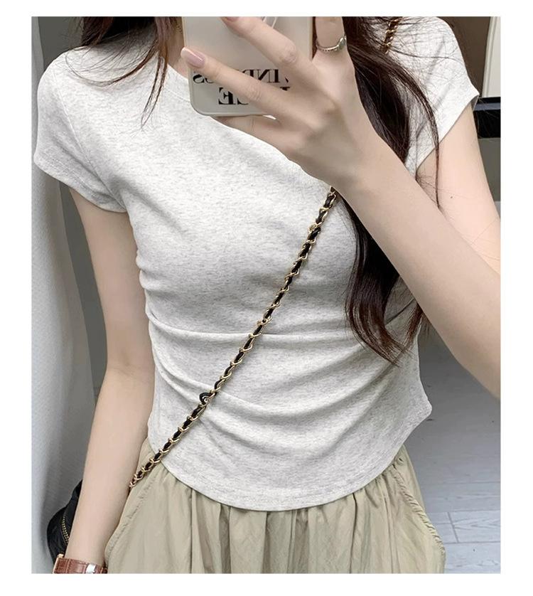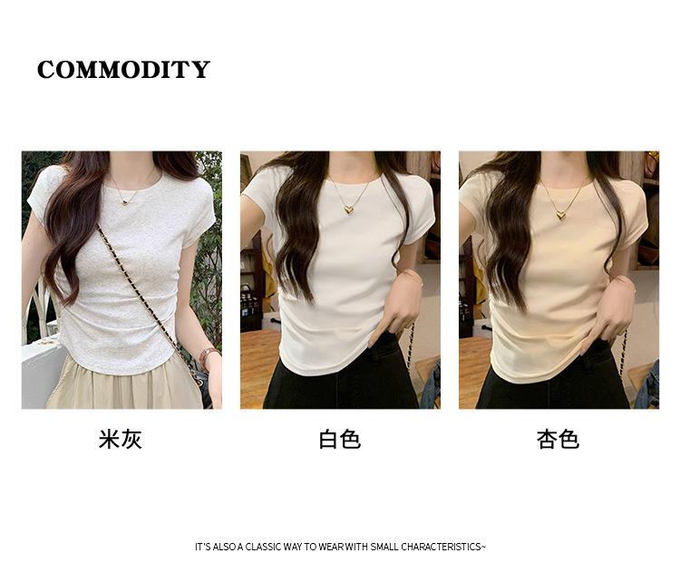 Camiseta Blanca Mujer Cuello Redondo 2025 Verano Nuevo Cintura Alta Slim Sexy Algodón Puro Cordón Versátil Ins Súper Caliente Manga Corta