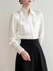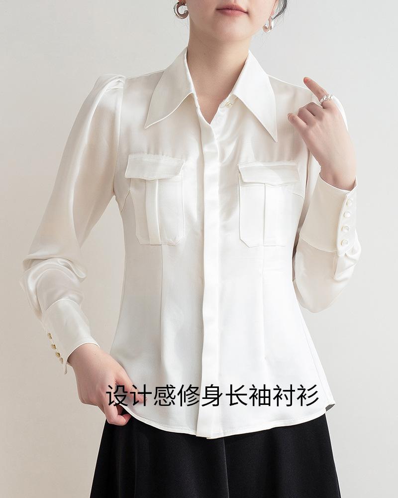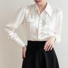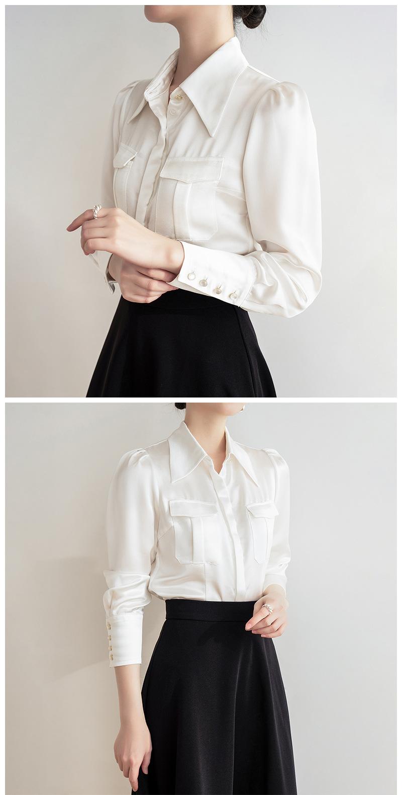 Camisa blanca de entrevista de otoño e invierno para mujer, moda, temperamento, diseño francés de alta gama, manga larga, satén, para ir al trabajo, profesional