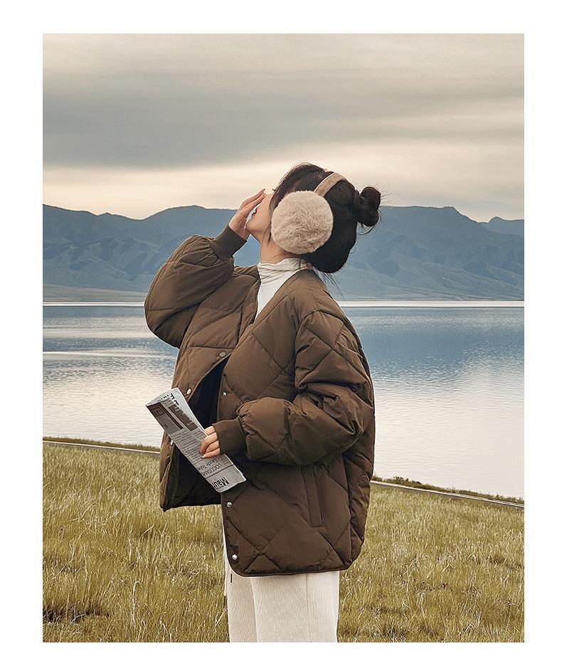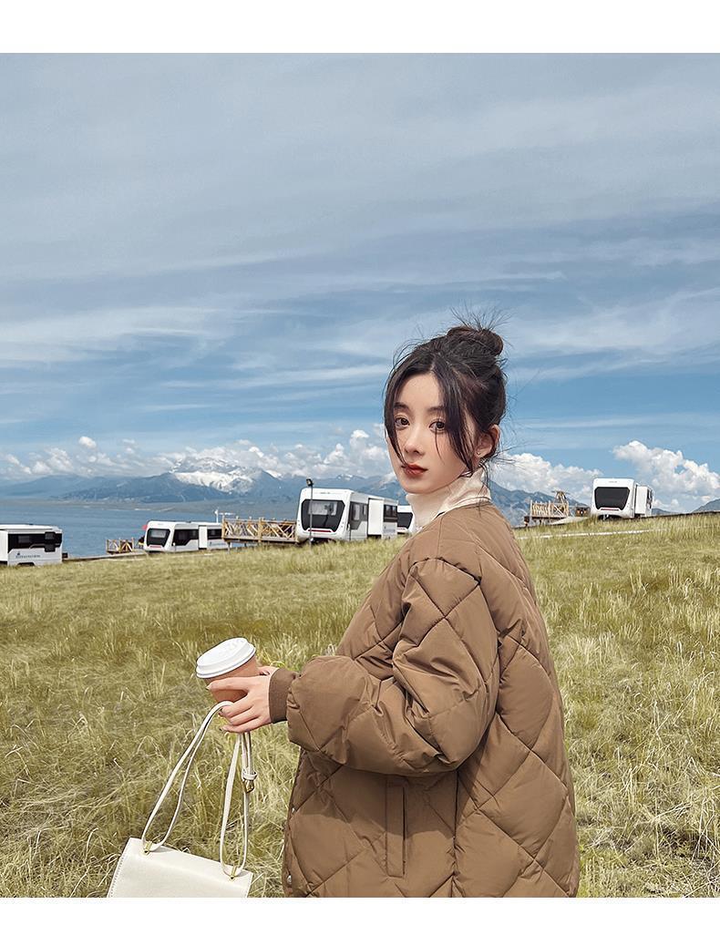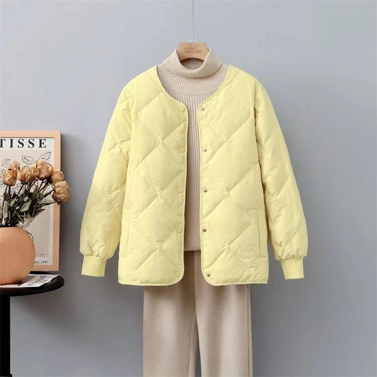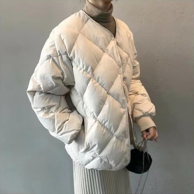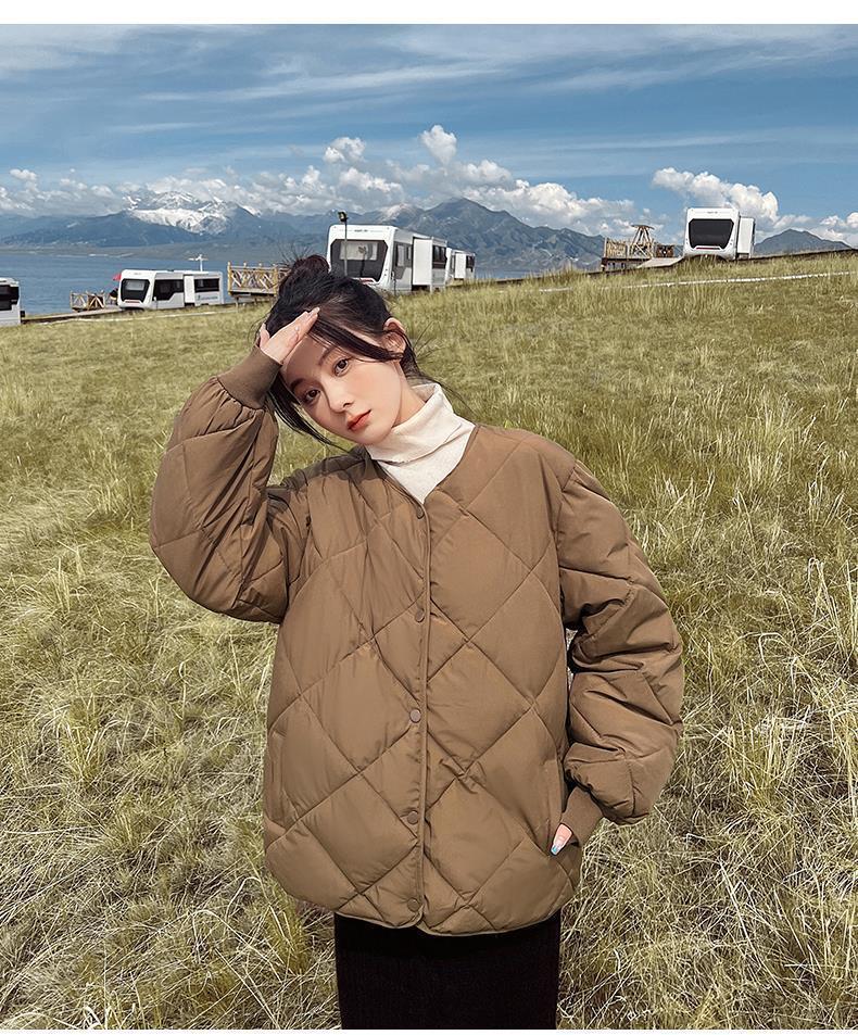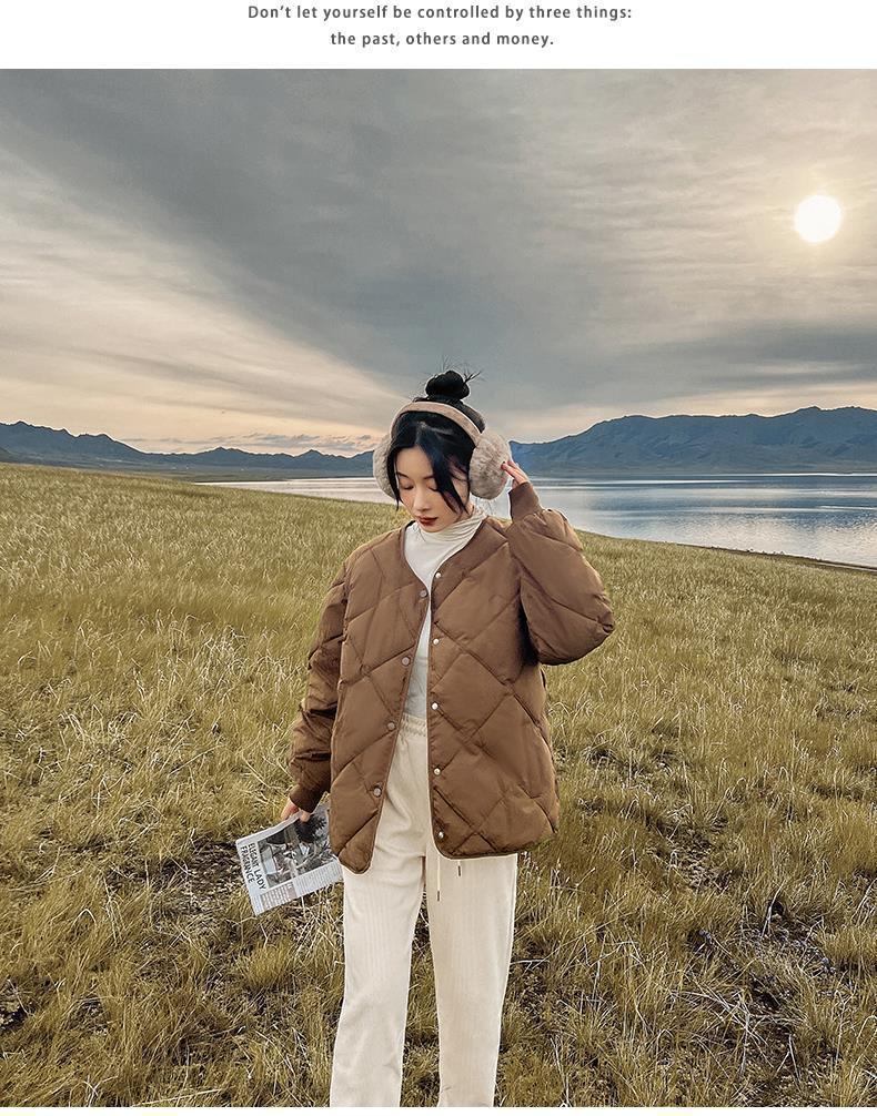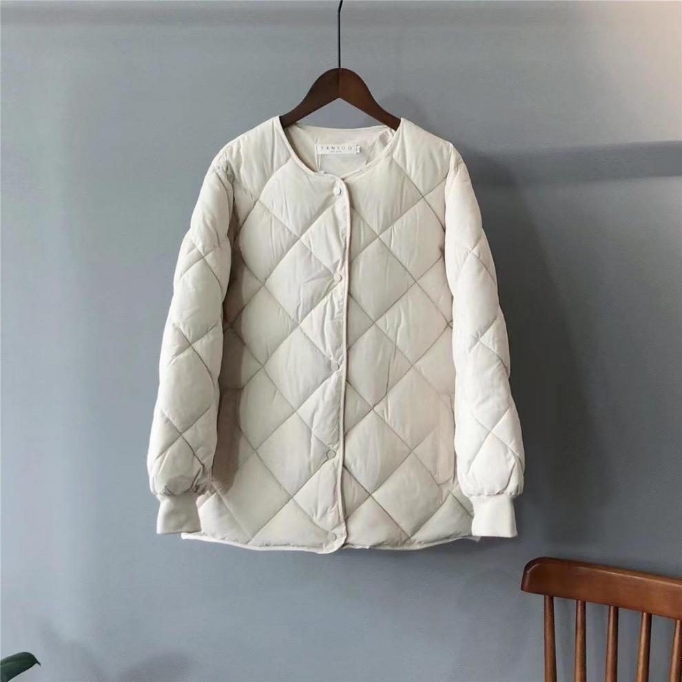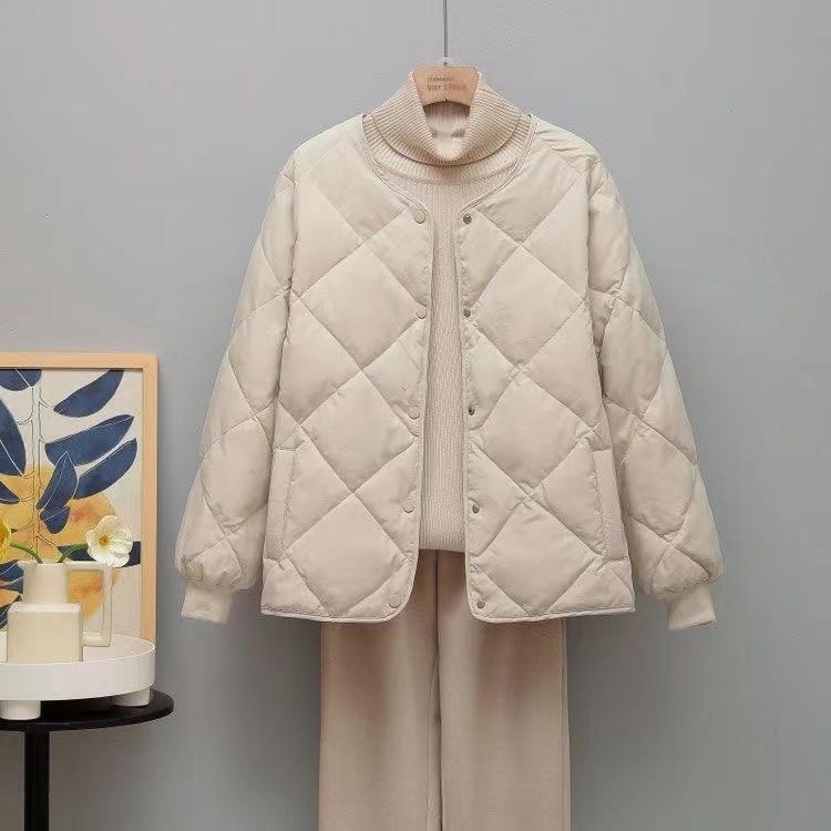 2024 Otoño e Invierno Nueva Chaqueta Acolchada de Algodón para Mujer Corta Estilo Hong Kong Acolchada de Algodón Ligera con Forma de Diamante Chaqueta Acolchada de Algodón Holgada