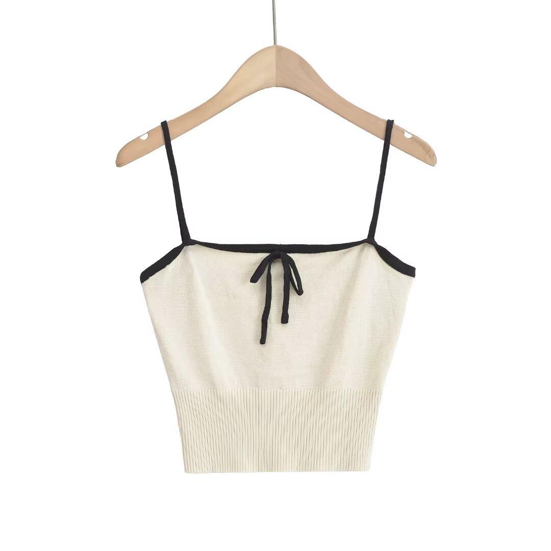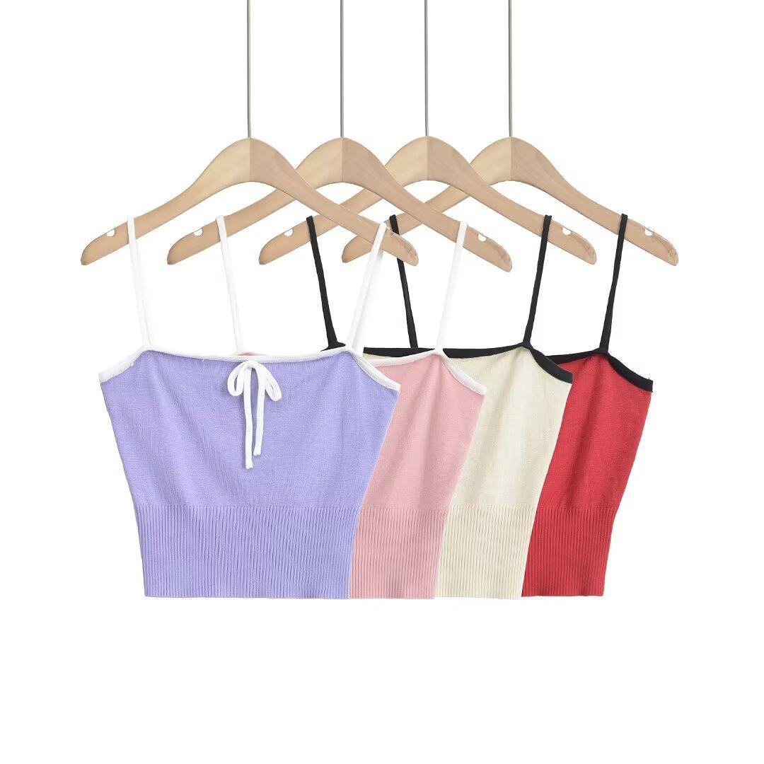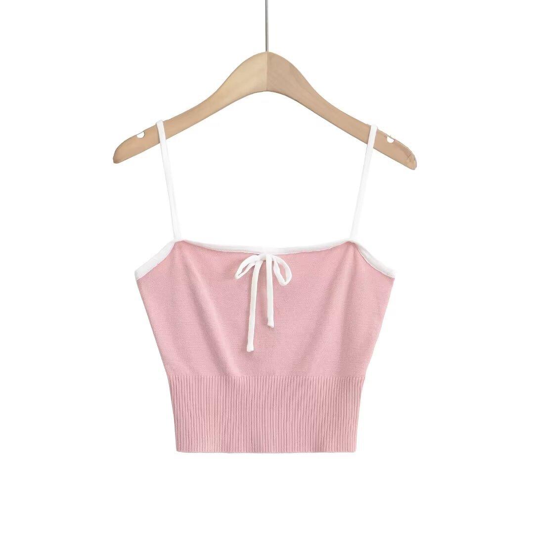 Lazo de Niña Dulce Francés Color Contraste Tejido Pequeño Sling Dulce Caliente Sexy Ropa Exterior Chaleco Ombliguera Corto Interior para Mujer