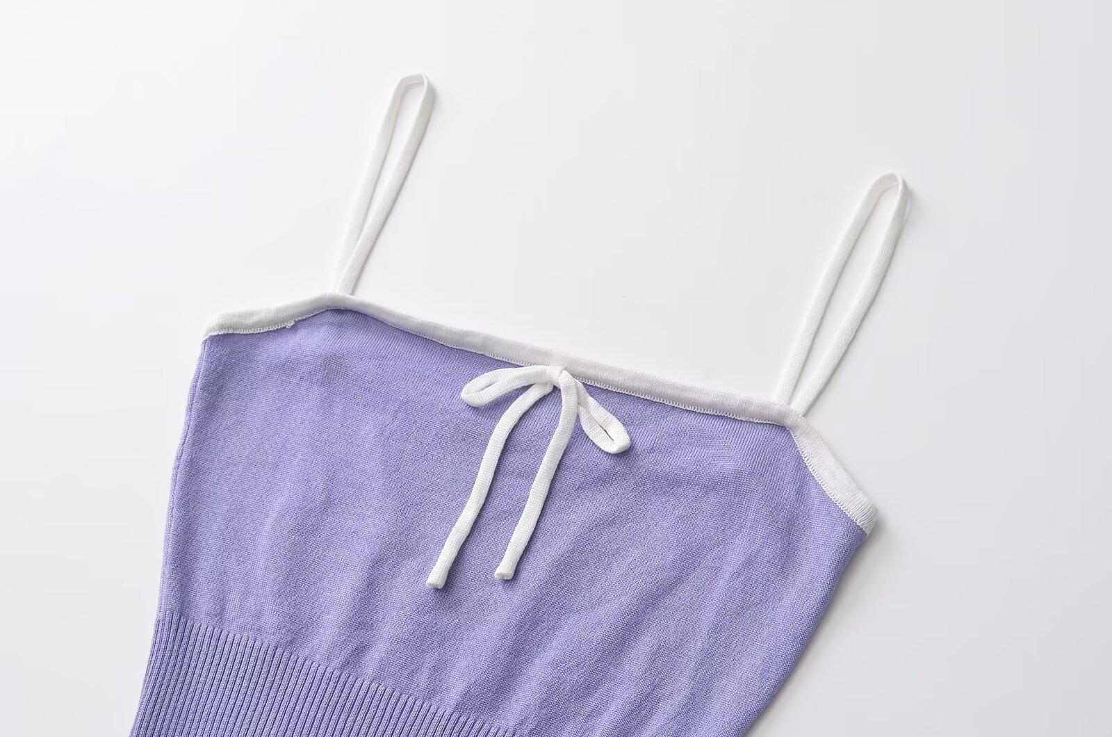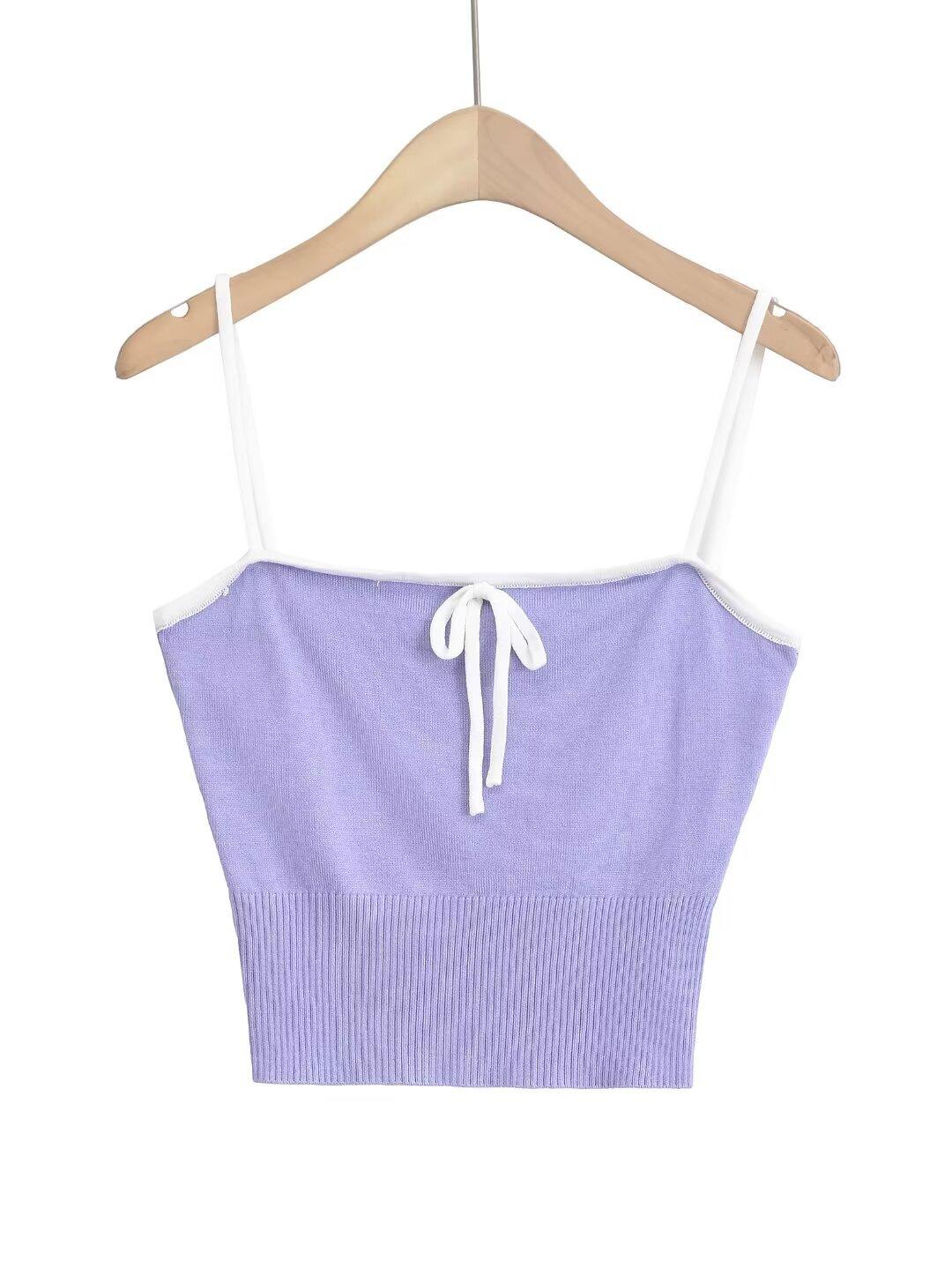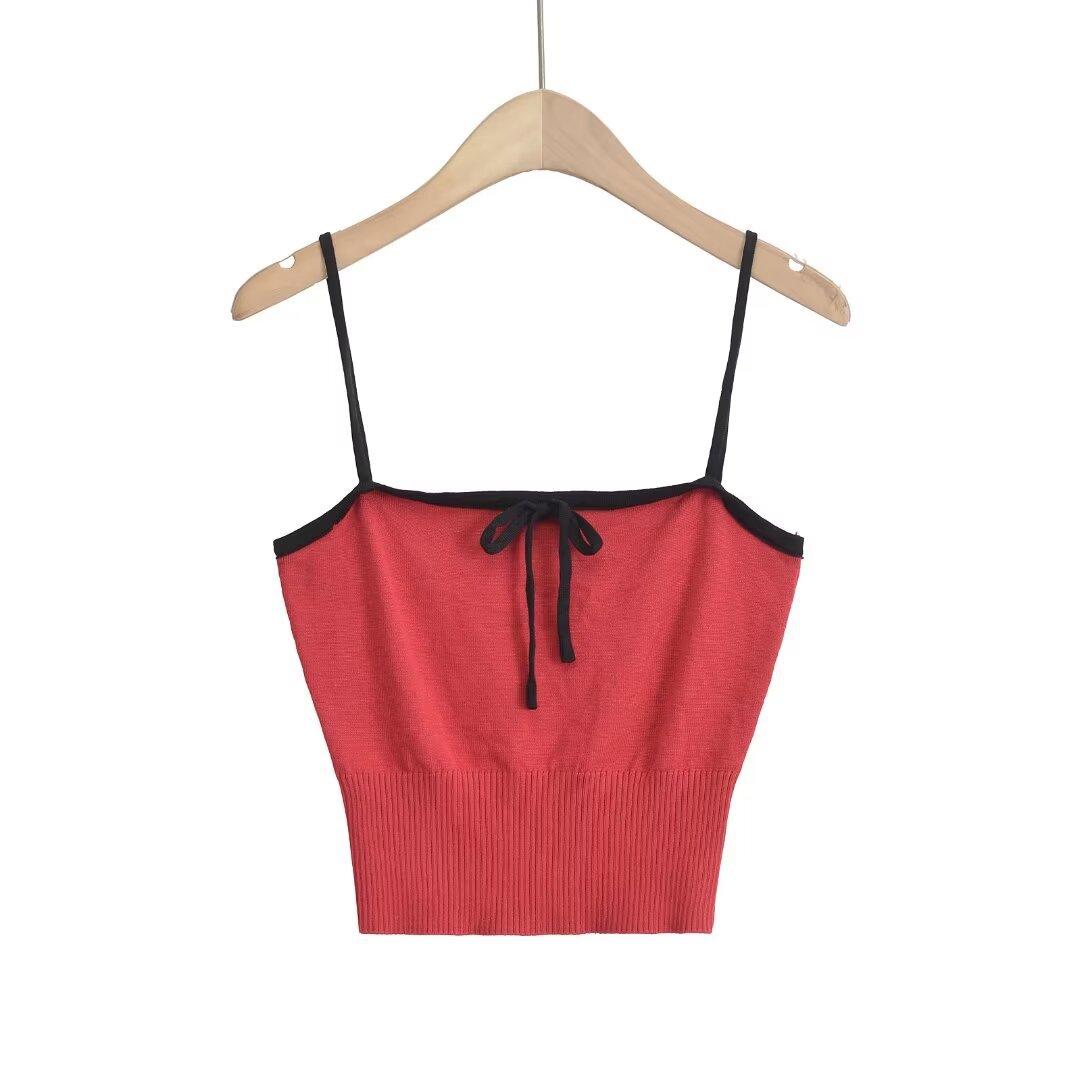 Lazo de Niña Dulce Francés Color Contraste Tejido Pequeño Sling Dulce Caliente Sexy Ropa Exterior Chaleco Ombliguera Corto Interior para Mujer