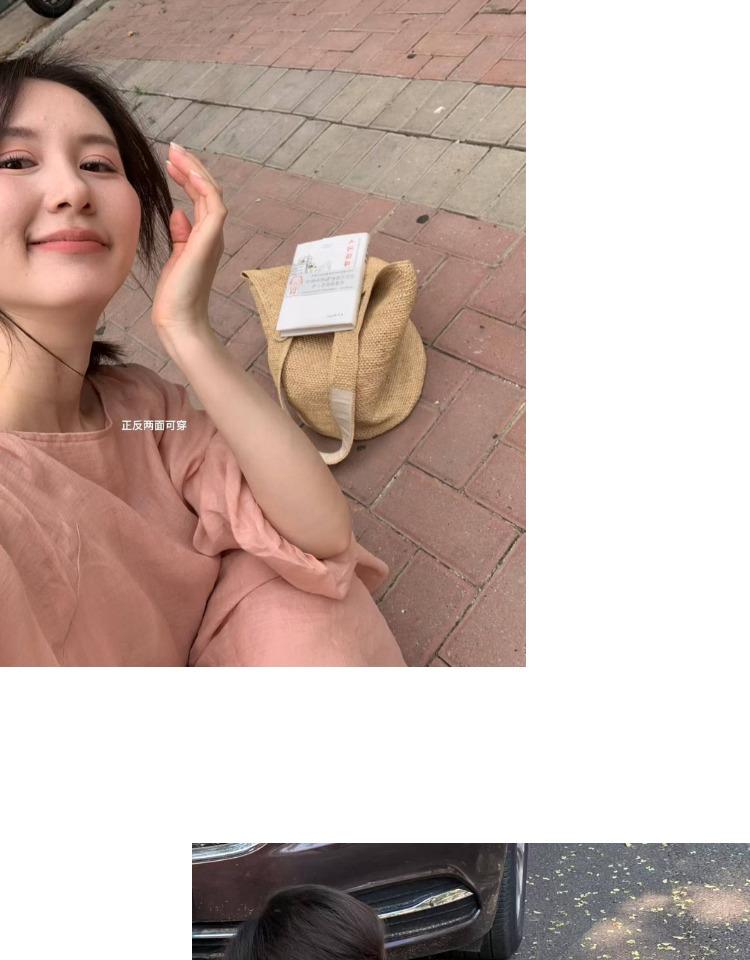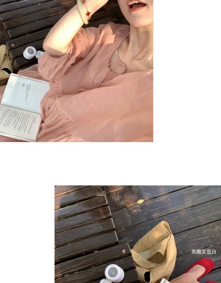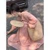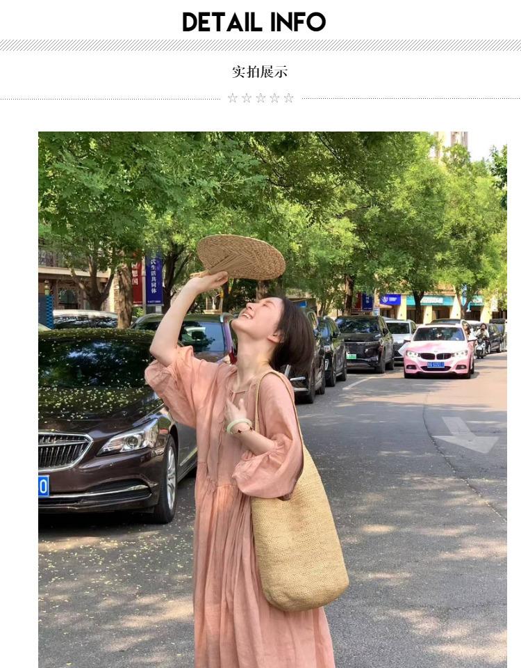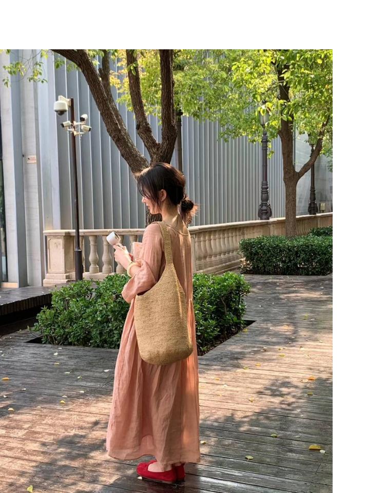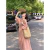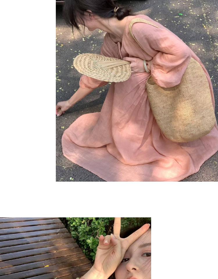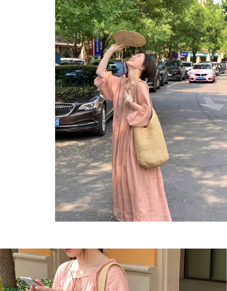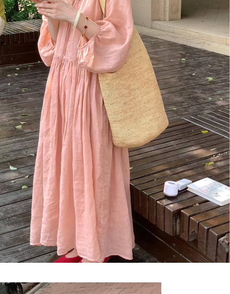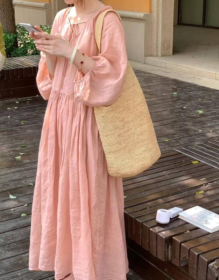 Vestido Suelto de Otoño Temprano Nuevo Rosa Color Sólido Talla Grande Cuello en V Lazo en la Cintura Vestido de Mujer