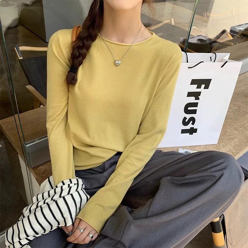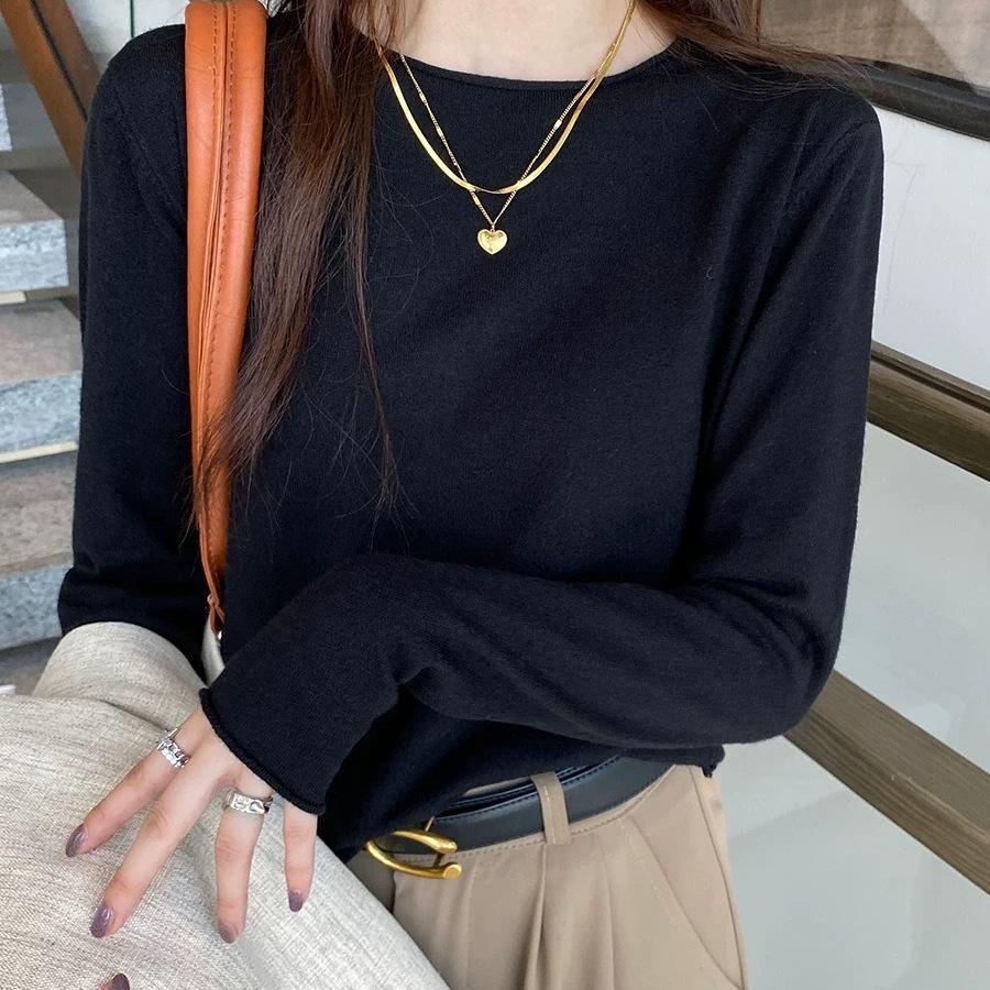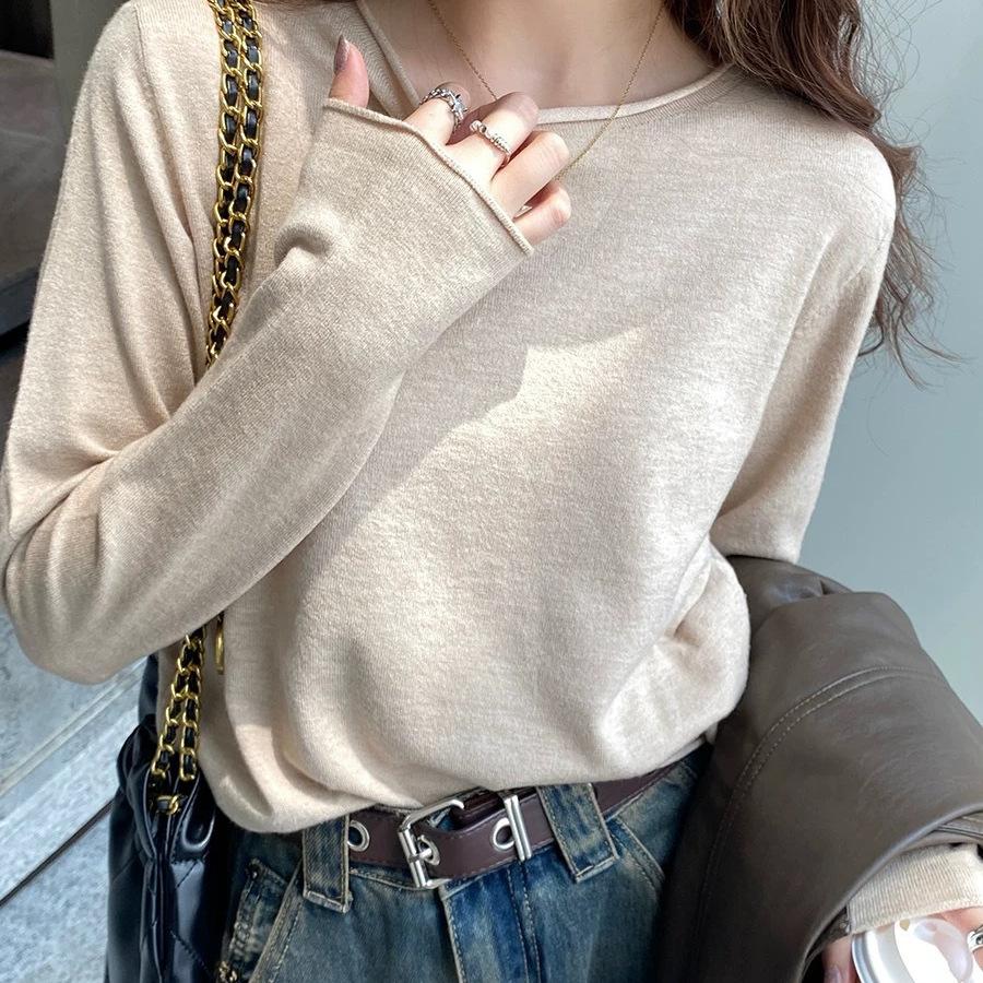 Top de capa base de punto para mujer otoño 2025 nuevo suéter interior de manga larga cuello redondo sentido de alta gama atuendo top de otoño e invierno